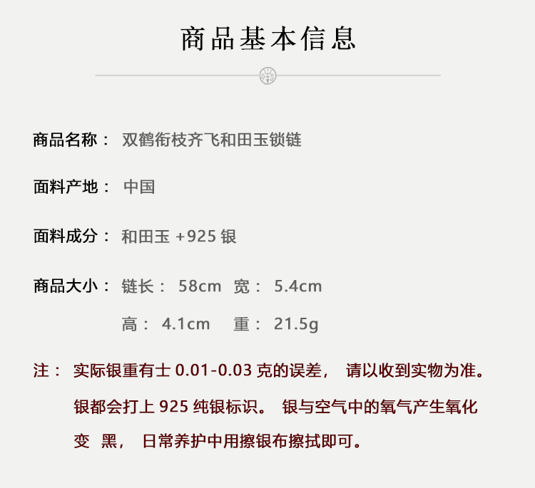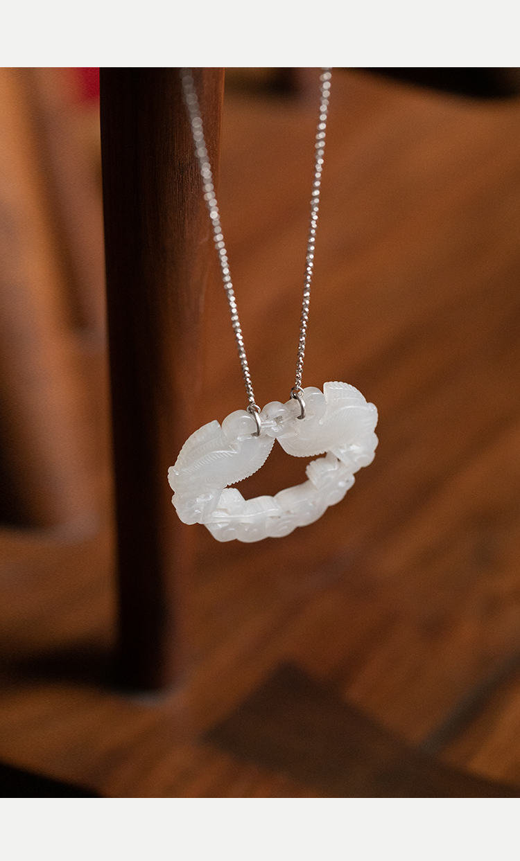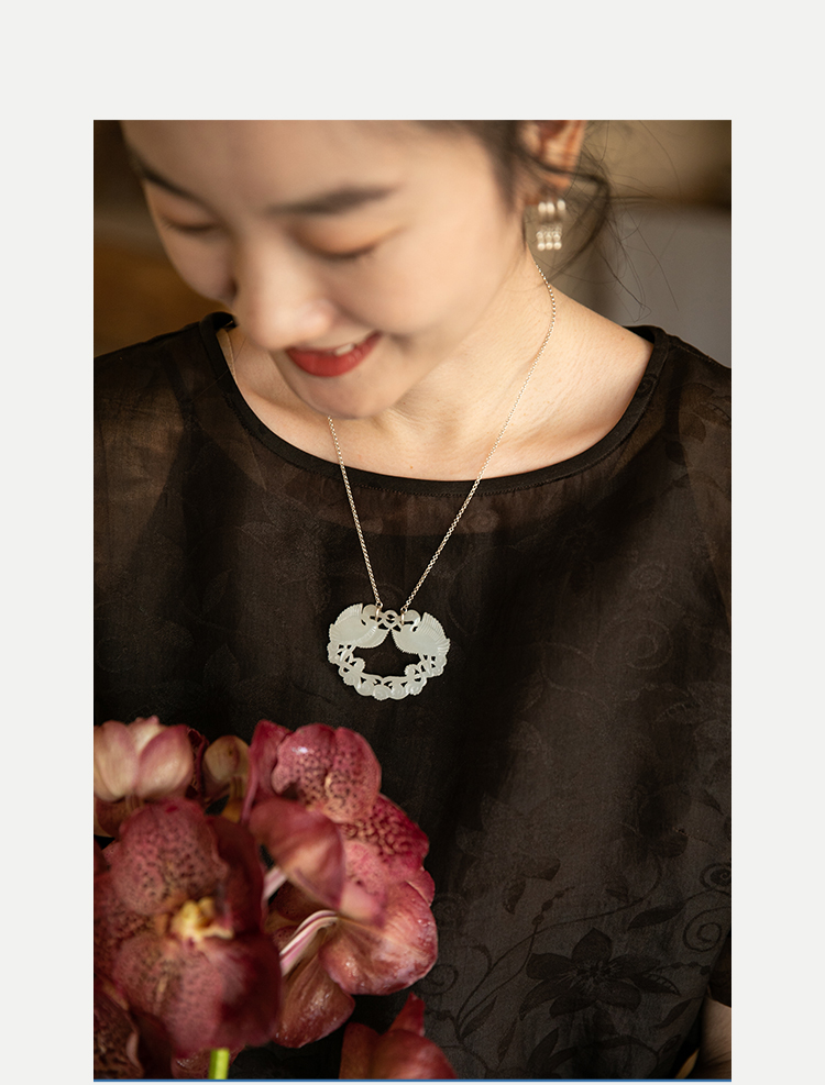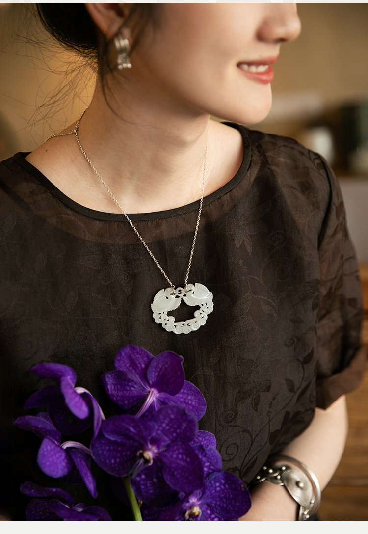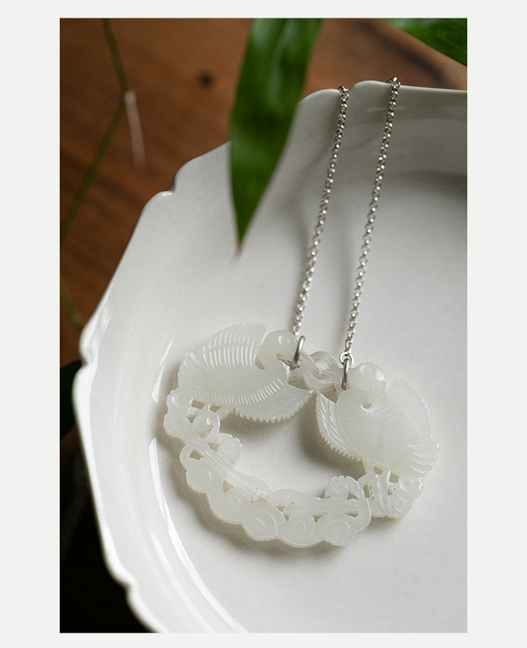 牧衣游 双鹤衔枝齐飞和田玉锁链天然吊坠---- 倾阳【不支持会员折】