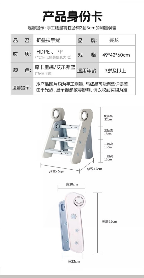 【秒杀】曼龙mloong踩脚凳洗漱可折叠防滑梯子踏脚增高凳
