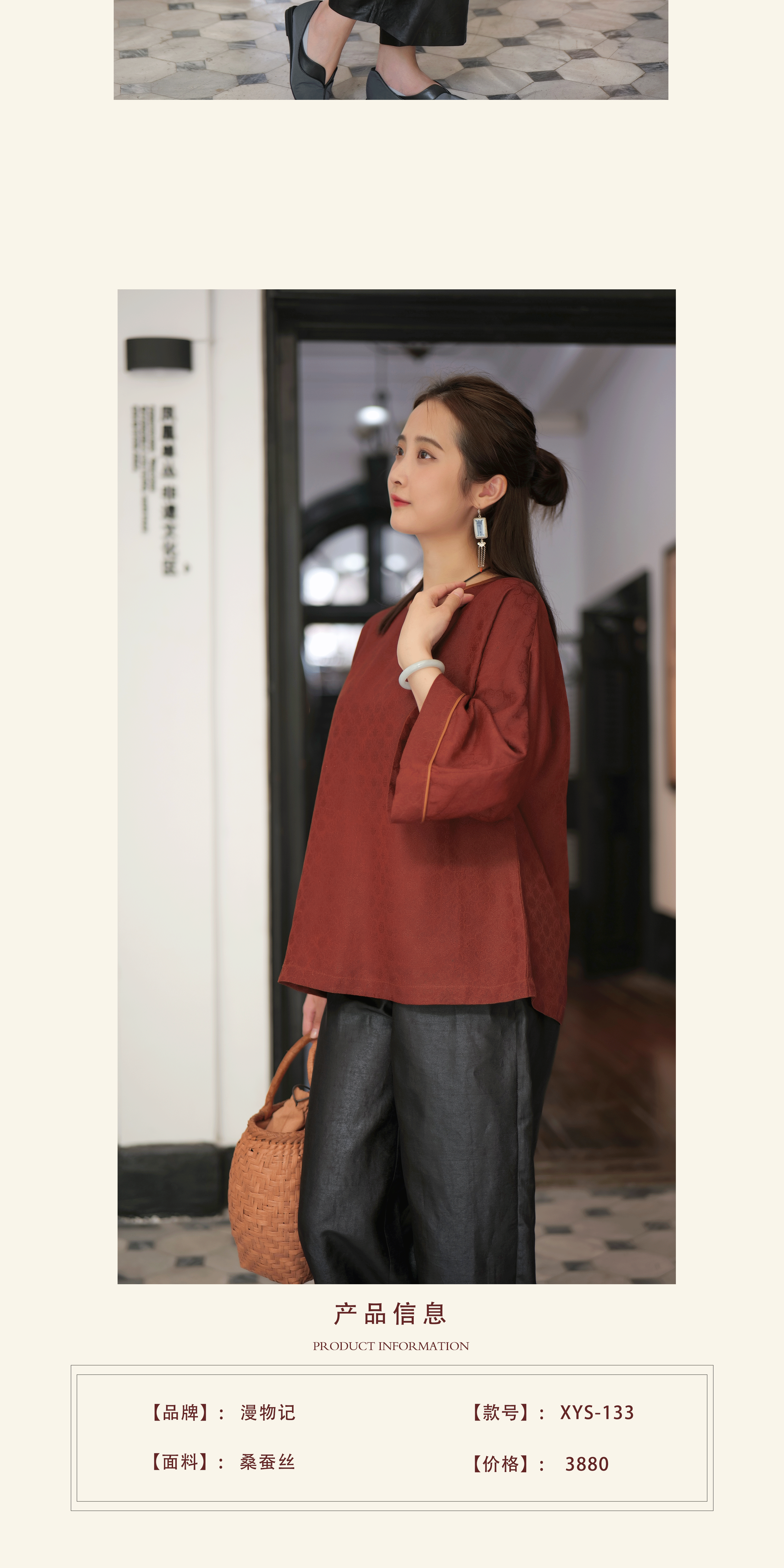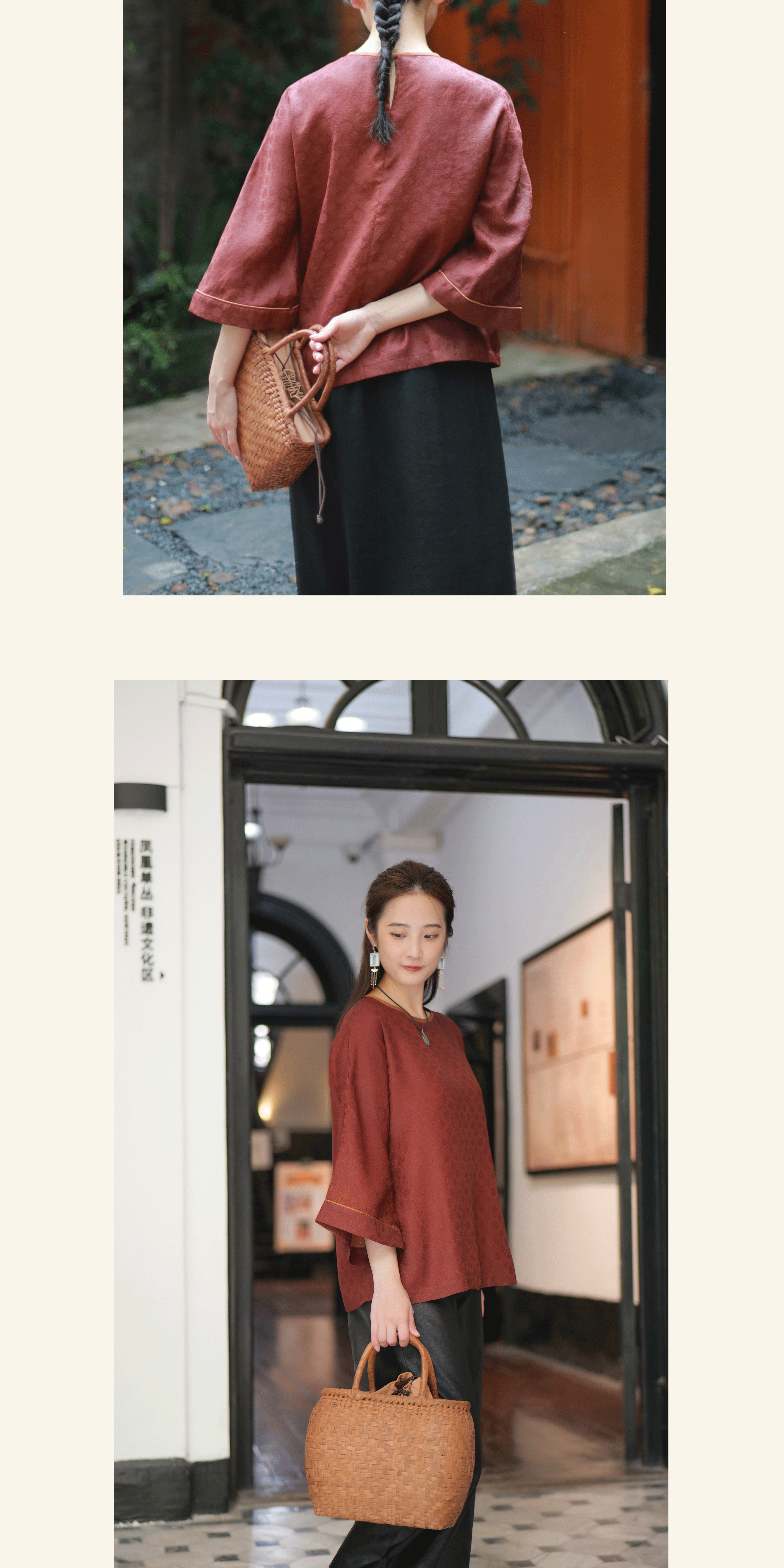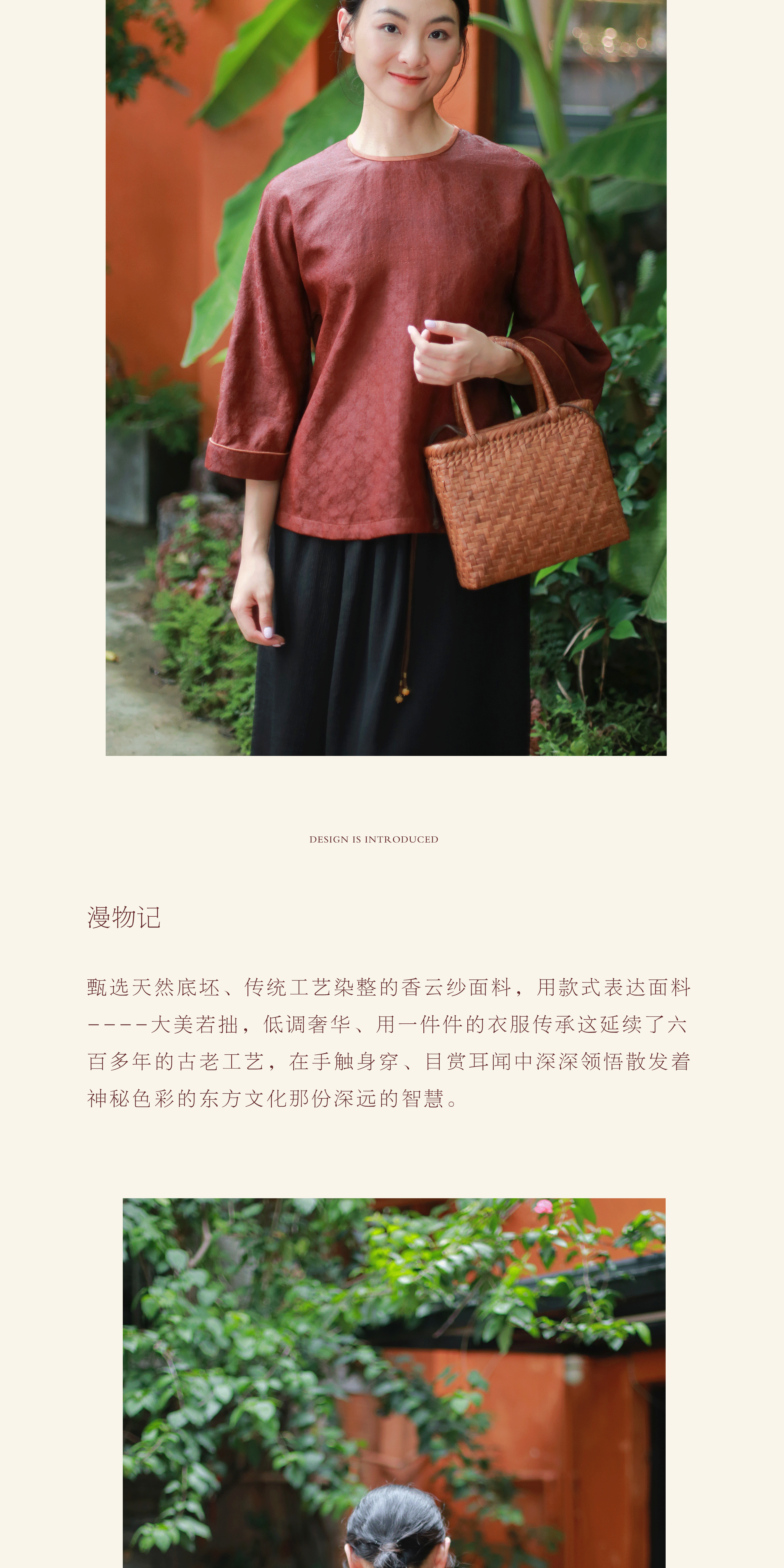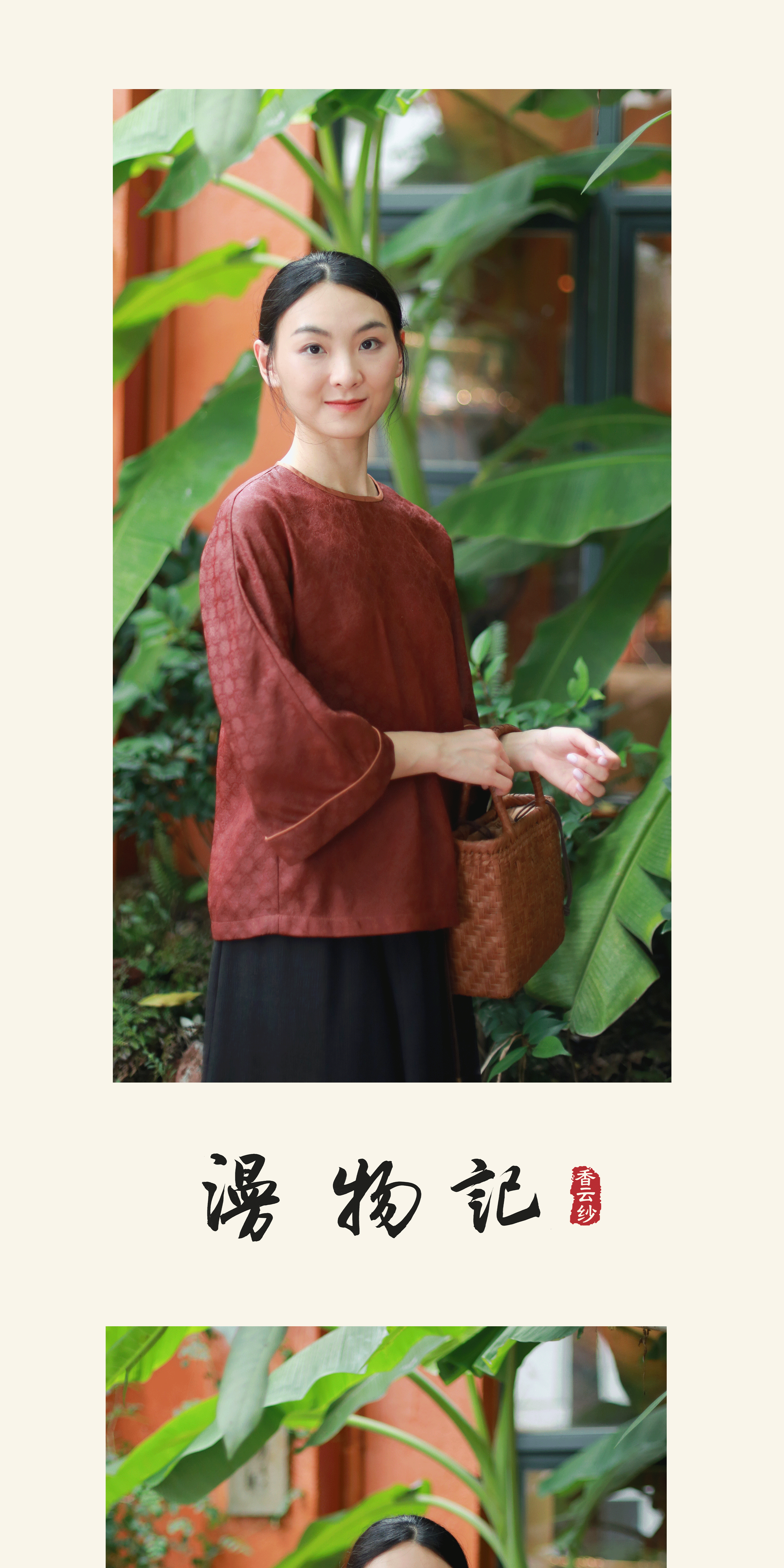 漫物记四经绞罗红云纱圆领长袖上衣XYS-W133