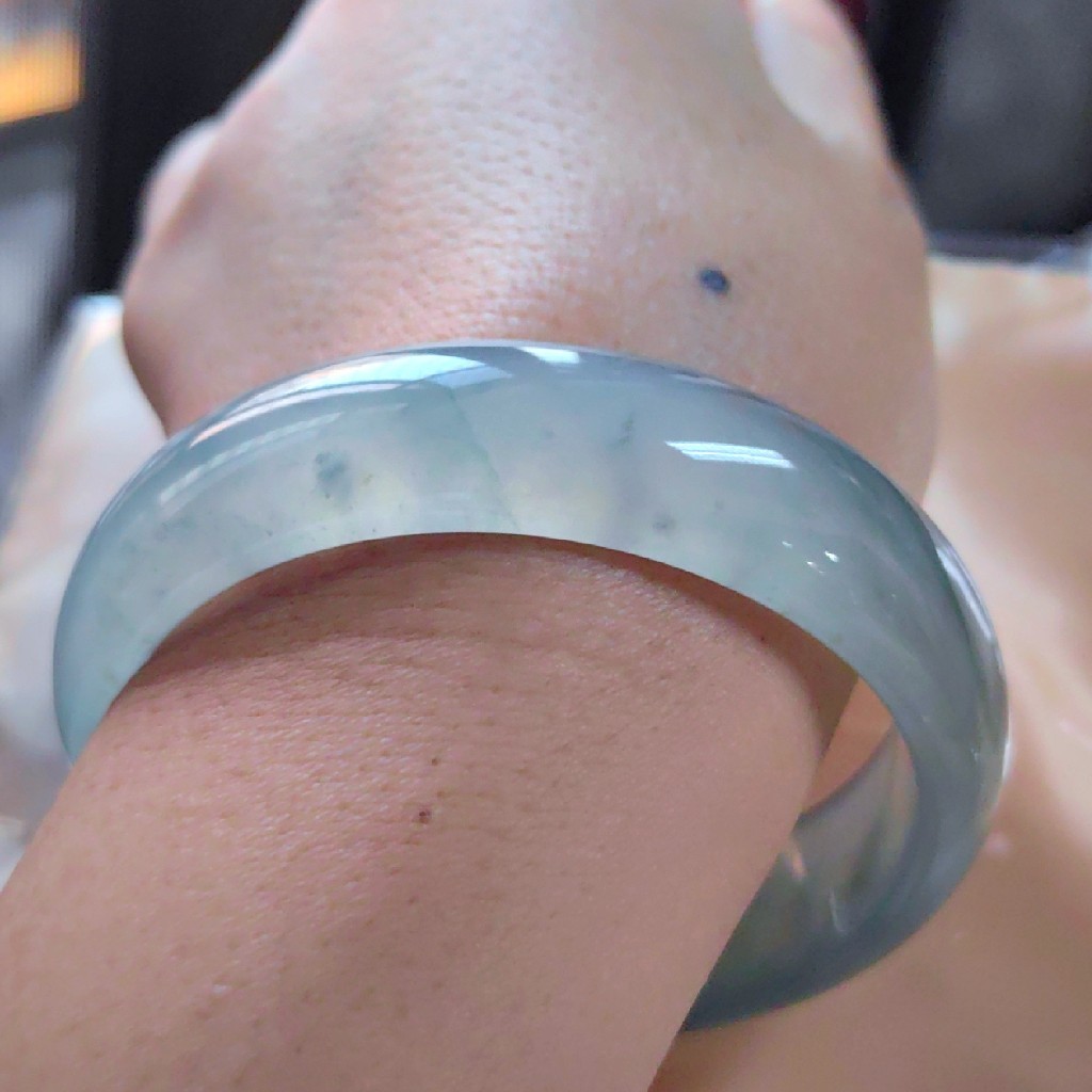 宽版飘花高冰种翡翠手镯,飘花起光。