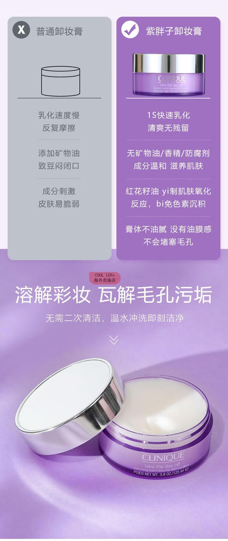 【海豚美购】美国Clinique倩碧面眼唇部温和卸妆霜125ml(紫胖子)