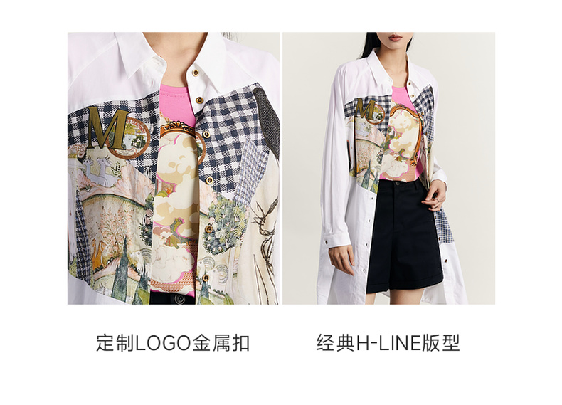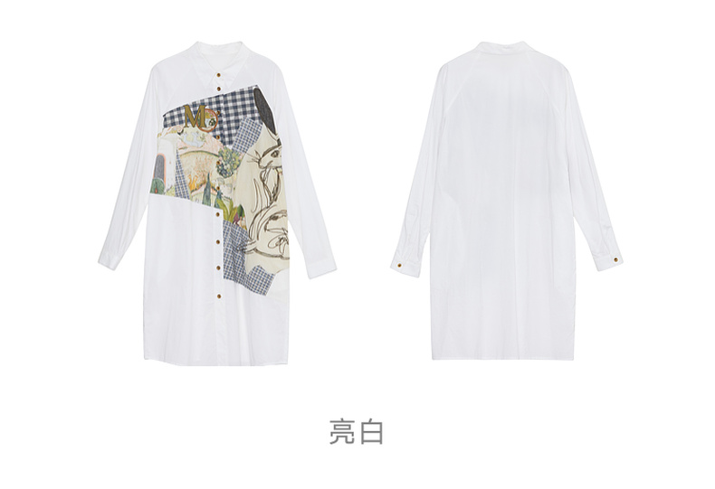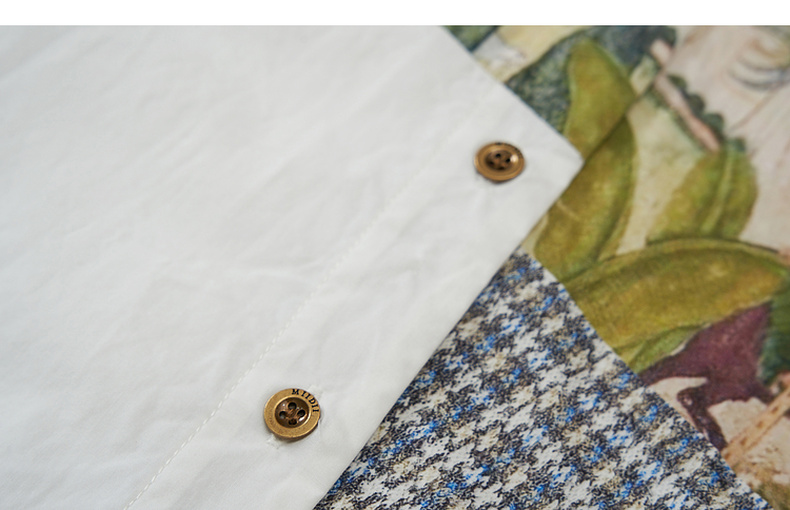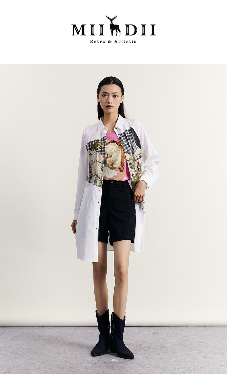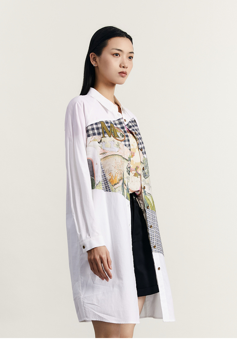 谜底宽松拼接连衣裙长袖2023秋新款复古文艺印花中长裙233ML1107