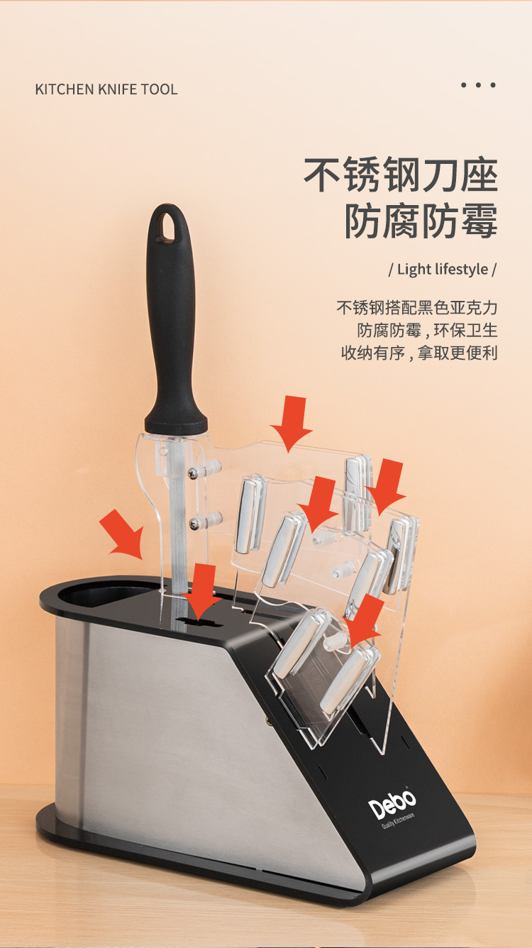 Debo德铂迪克森厨房刀具套装优质不锈钢家用菜刀切片刀砍骨刀亚克力刀座