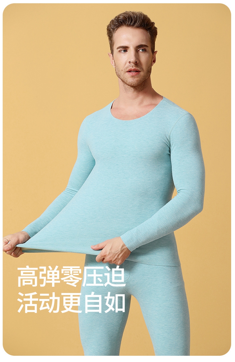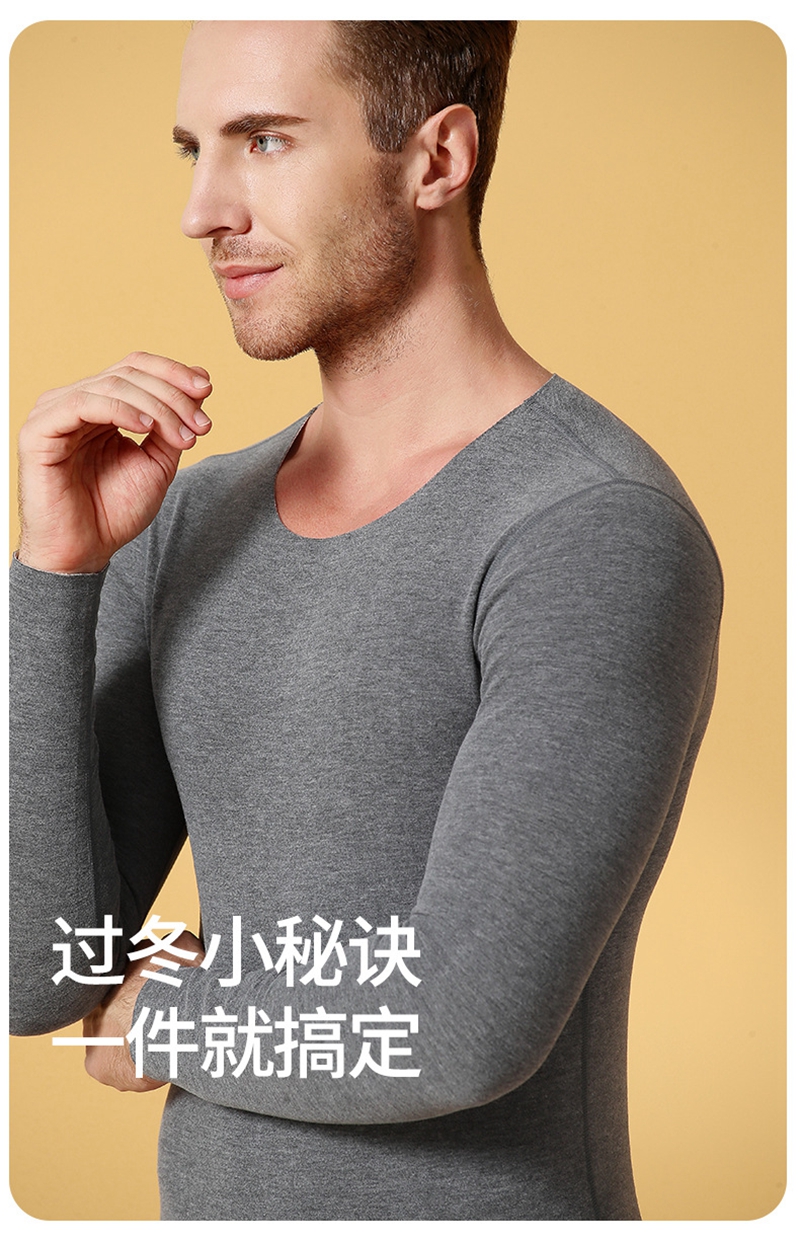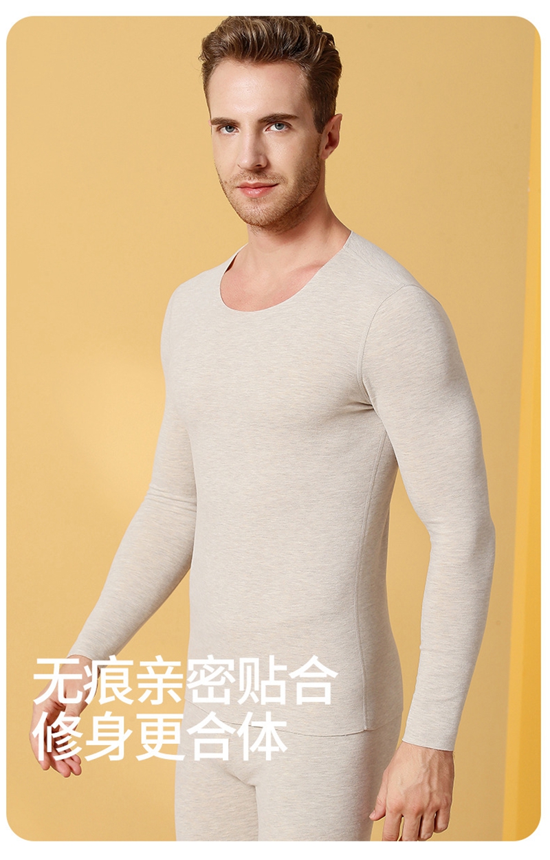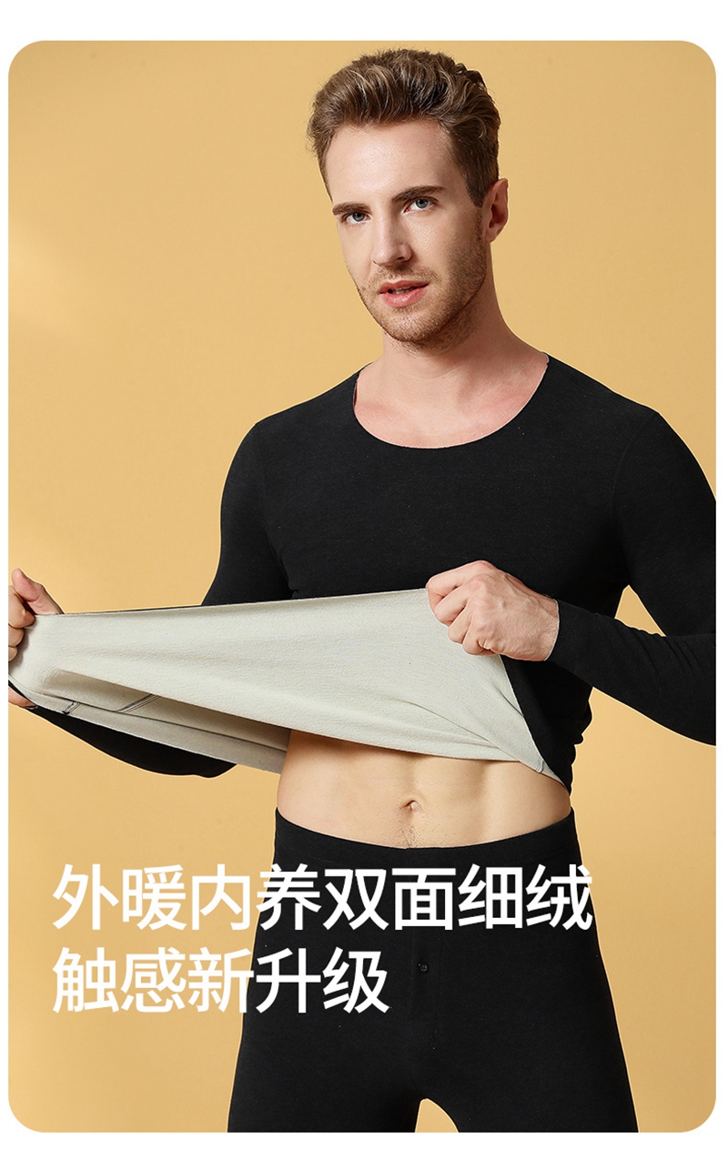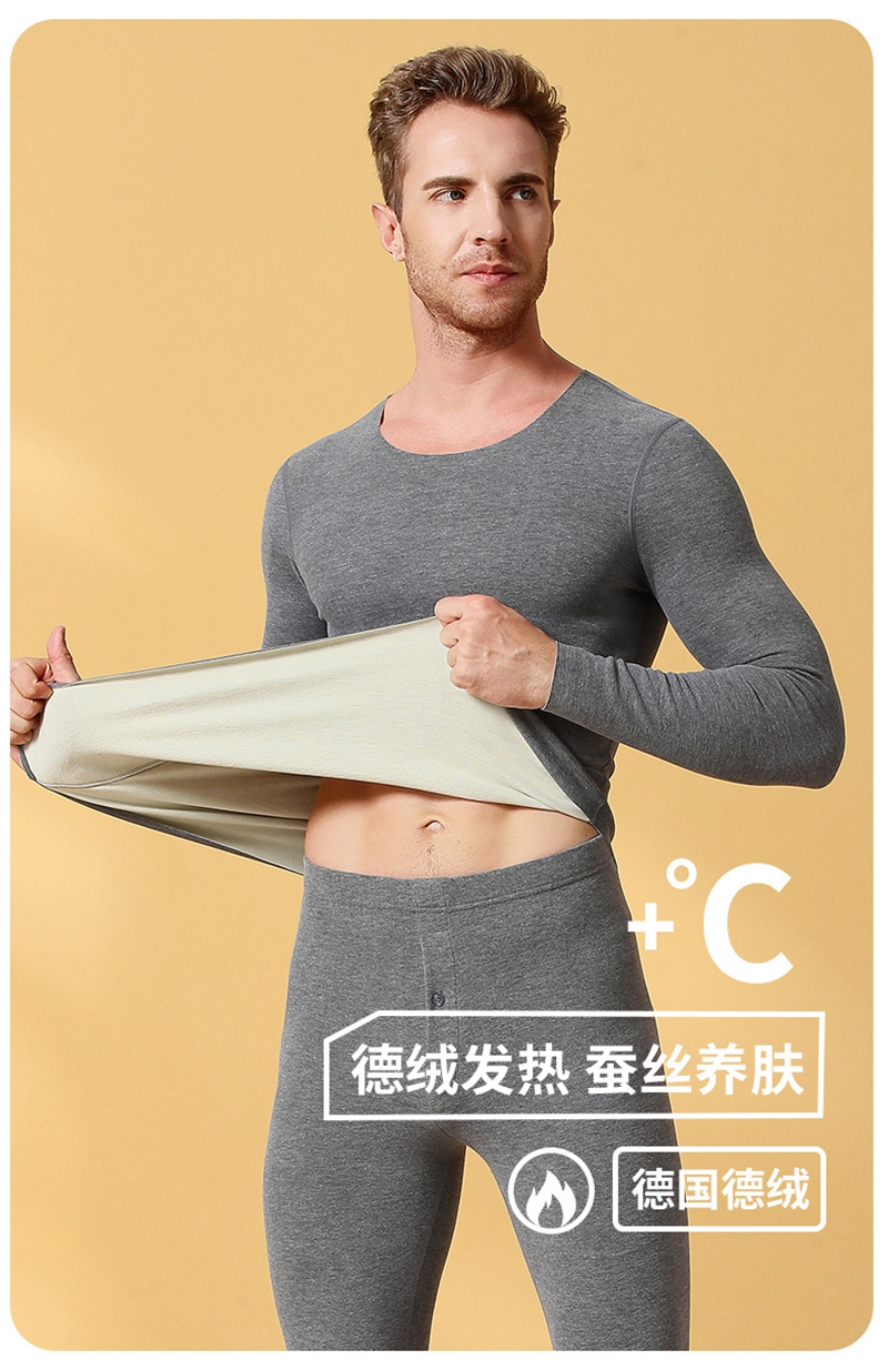 男士保暖套装蚕丝德绒双面打底无痕圆领/V领保暖套装