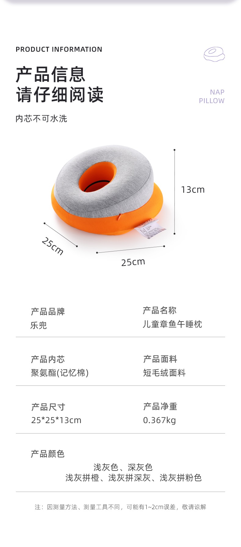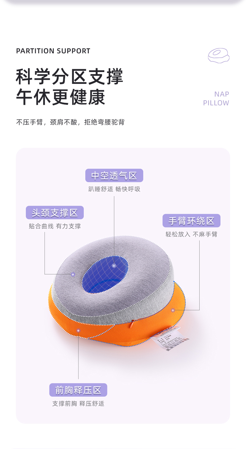 【推荐】乐兜 学生章鱼记忆回弹亲肤午睡枕(五色可选) 人体工学设计 科学分区 柔软舒适 不易变形