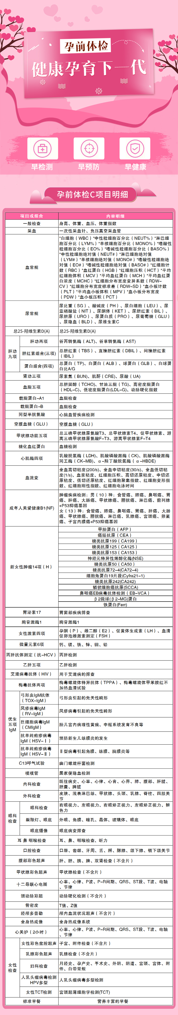【孕前套餐C】深入孕前检查项目 优生优育 准爸妈孕前体检套餐