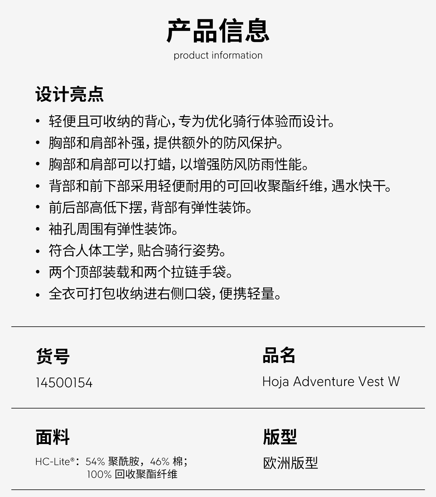 北极狐 女士骑行马甲 轻量 2025春夏户外防风骑行服14500154