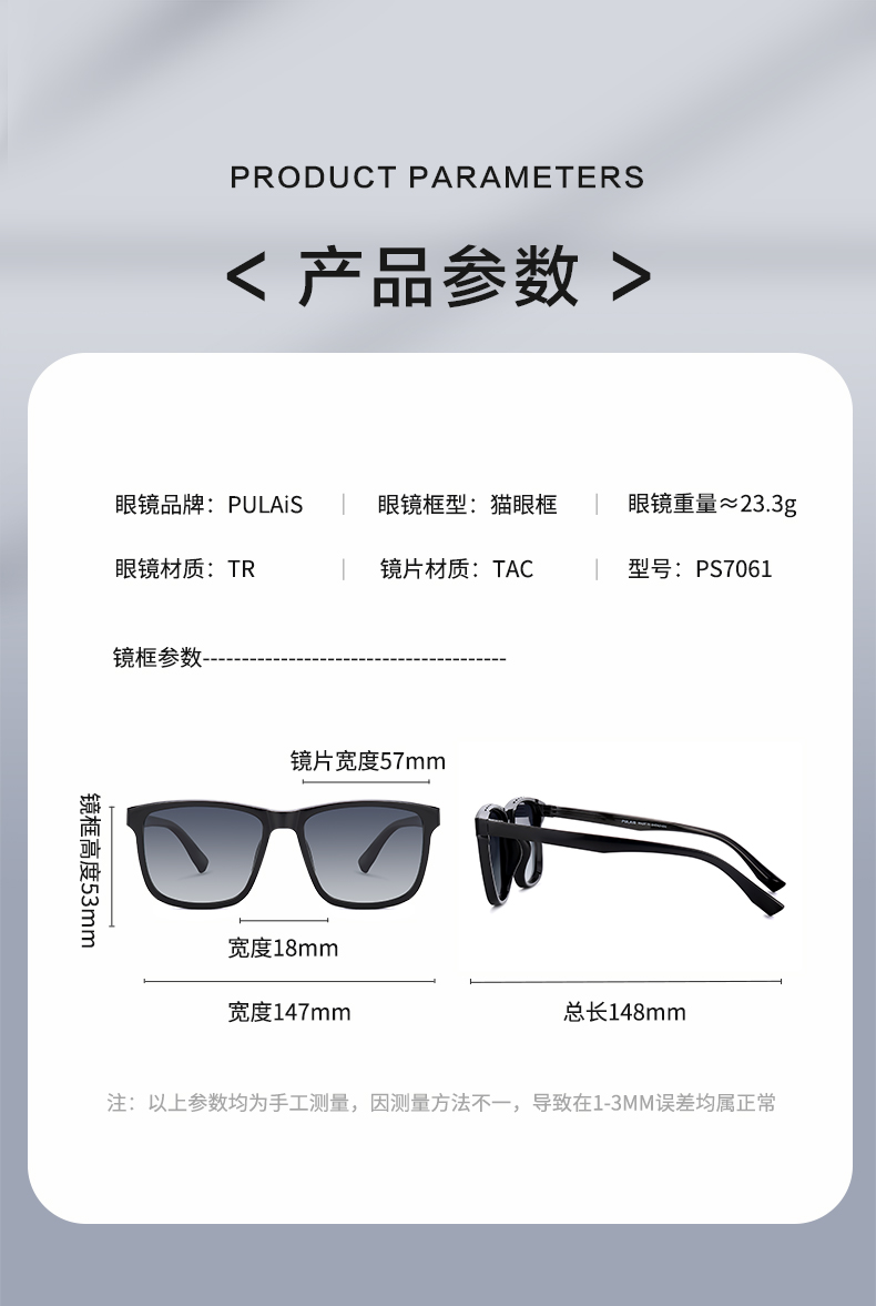 普莱斯太阳镜PS7061 抢镜复古方框 TAC偏光进口板材 五色可选