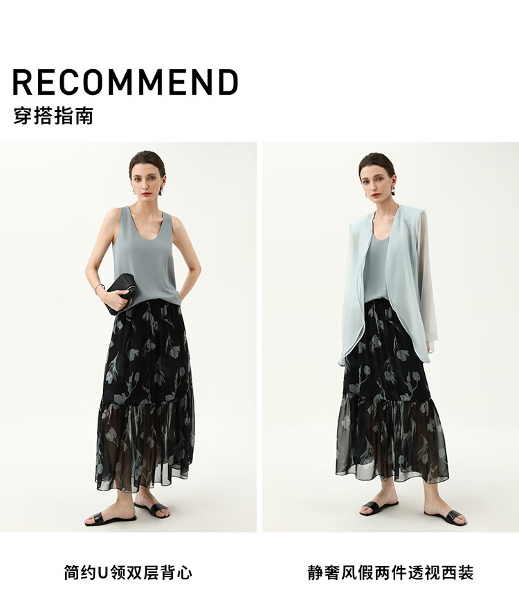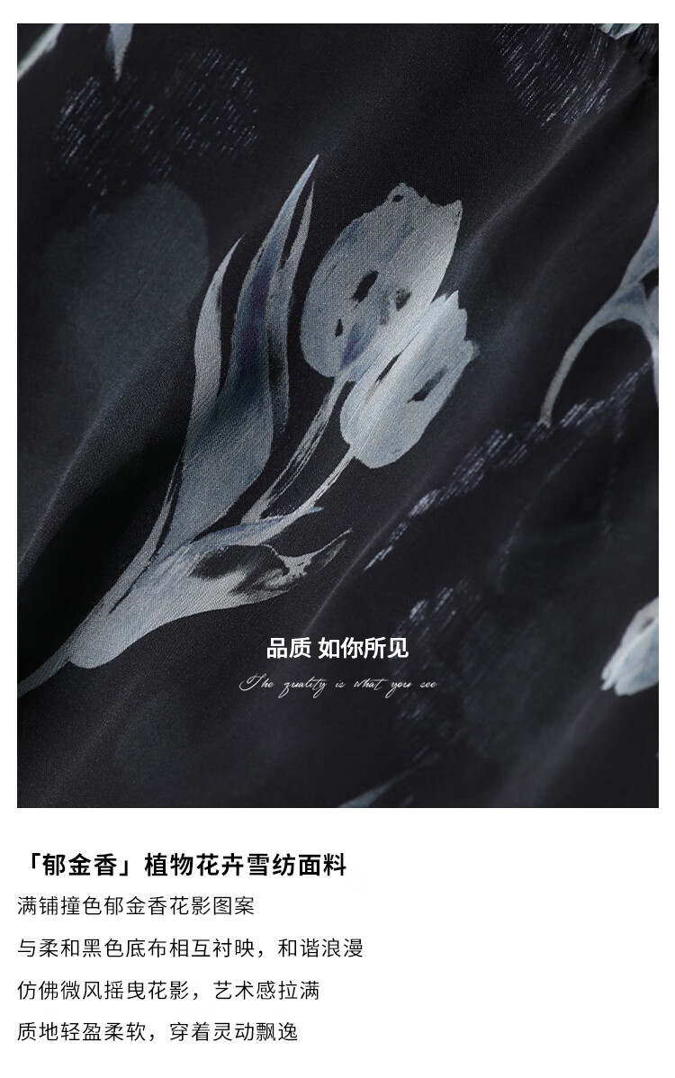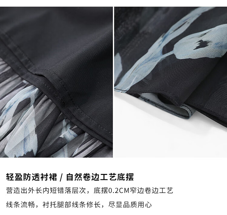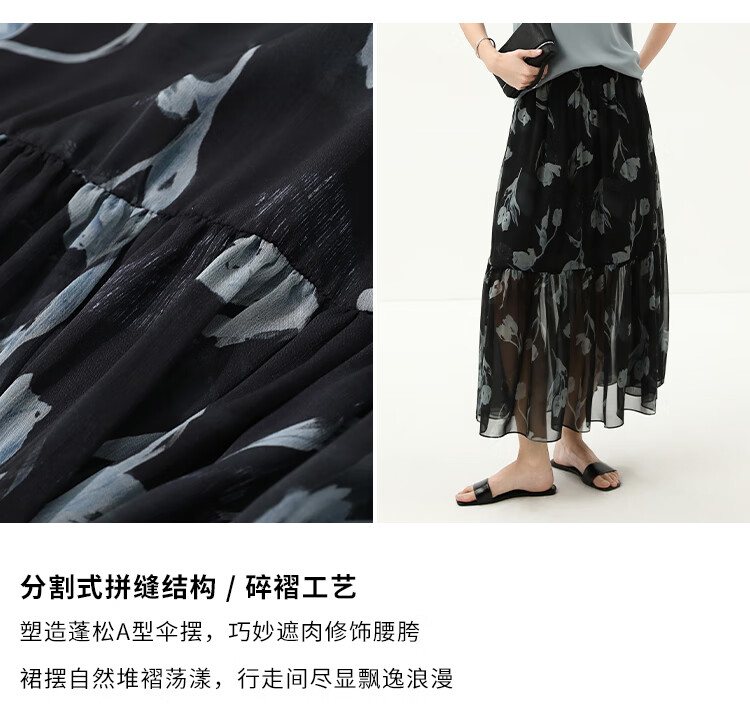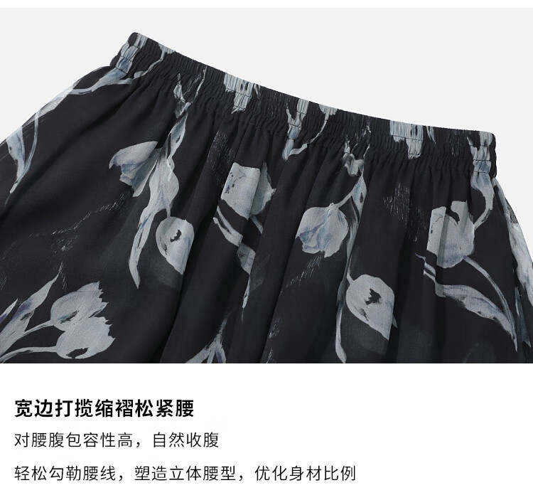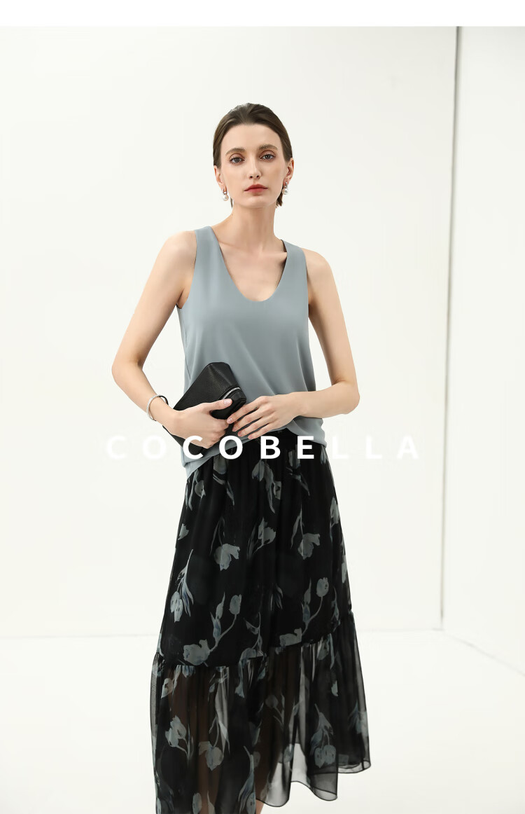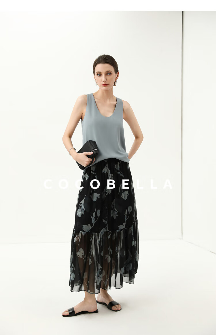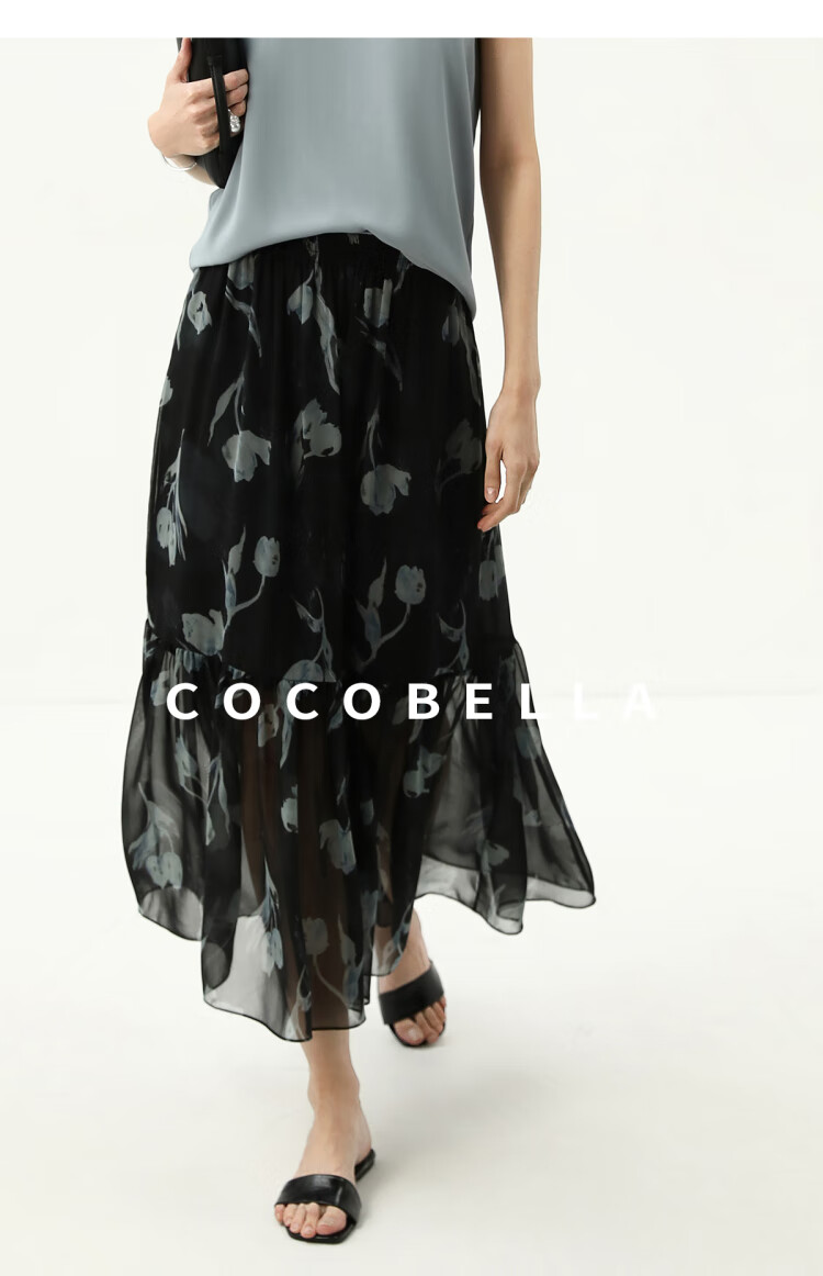 COCOBELLA清雅植物花卉捏褶半身裙女夏度假风气质长裙HS7080