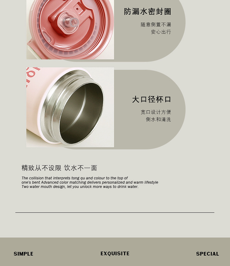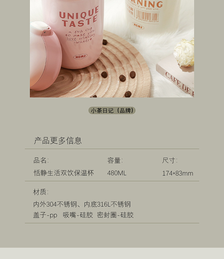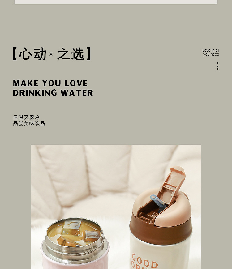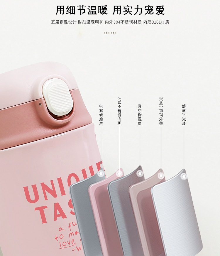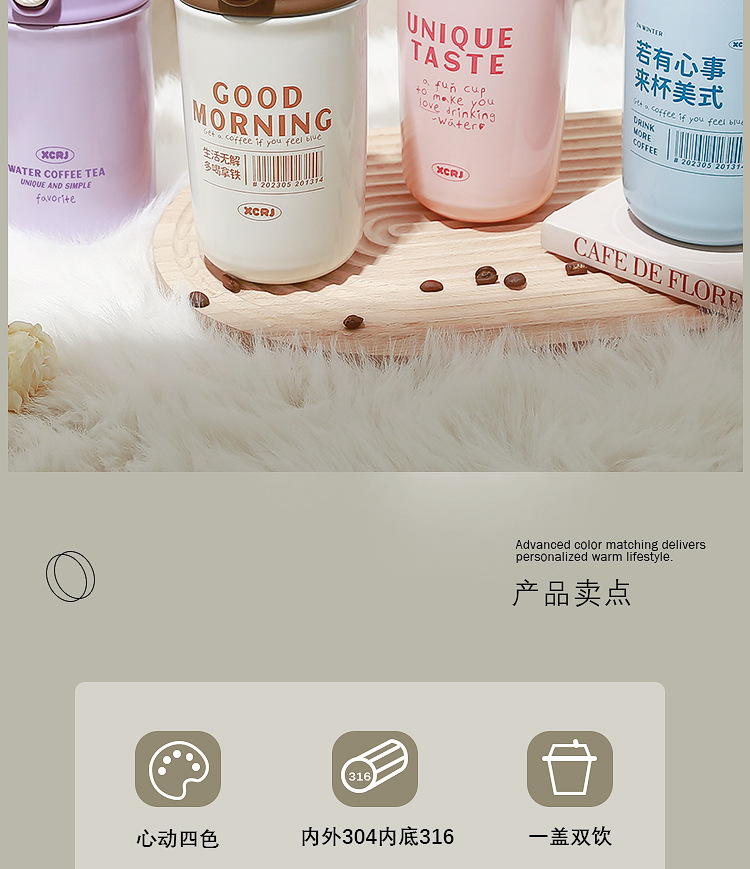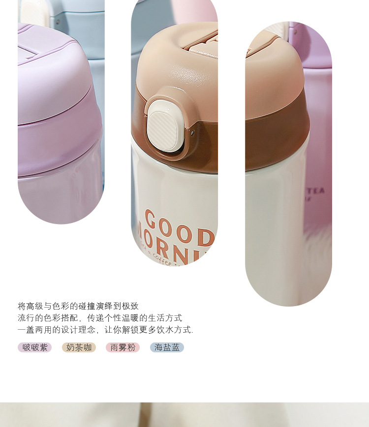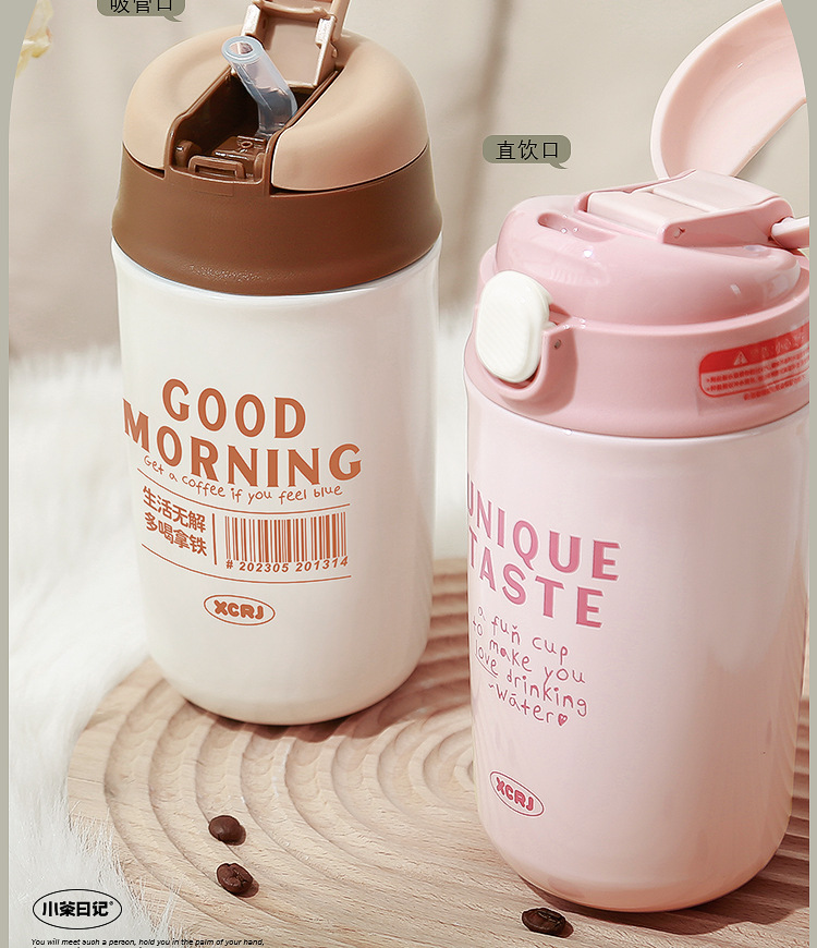 「四色可选!颜值派」学生保温杯水杯女生颜值随行咖啡杯便携式吸管杯子女新款2023男餐饮用具