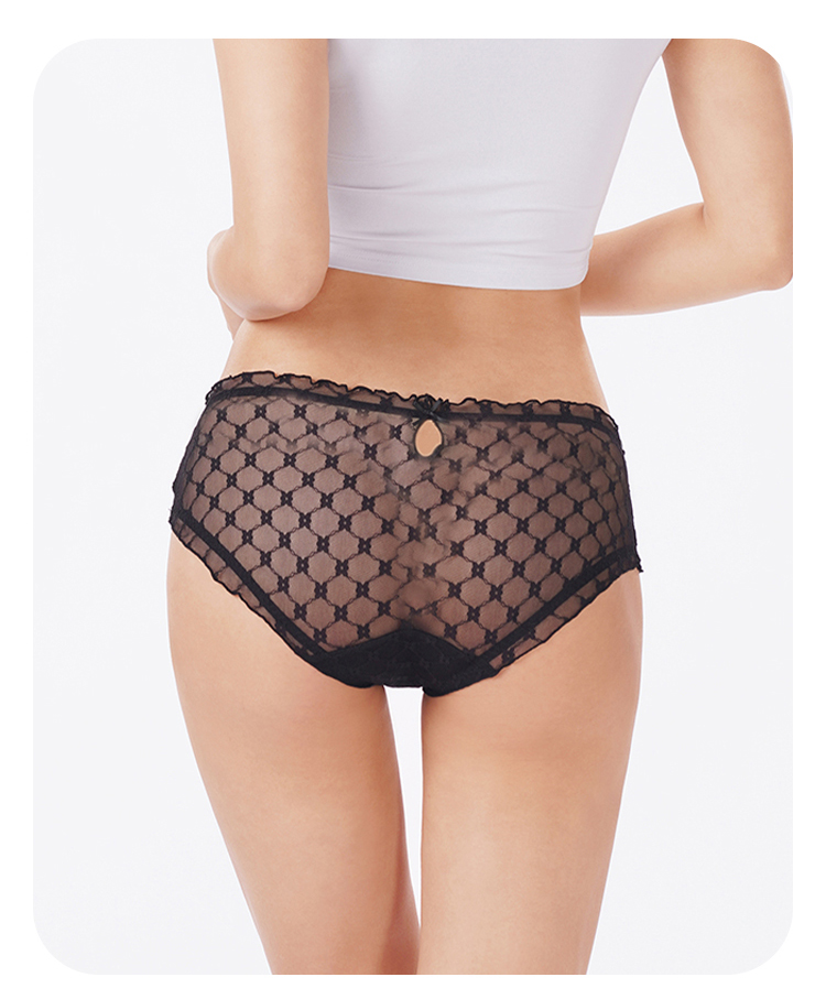 都市丽人薄透丝滑蕾丝网布系列蕾丝平角裤LKH5K2