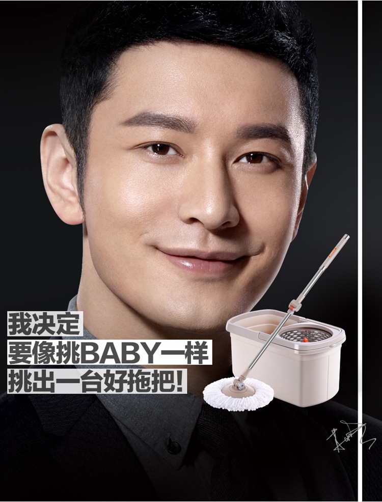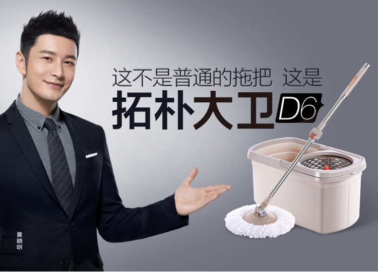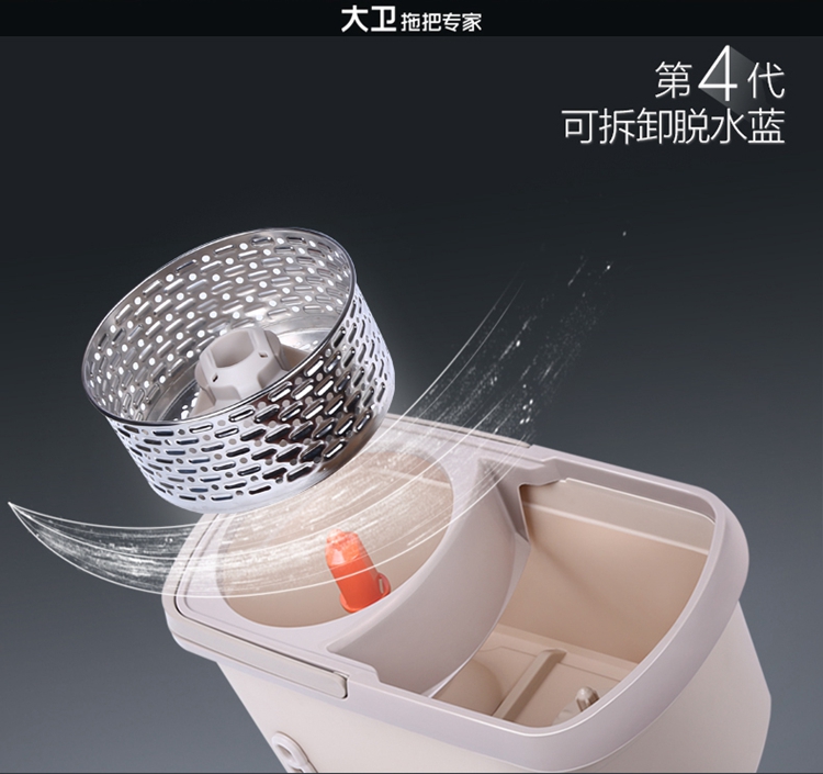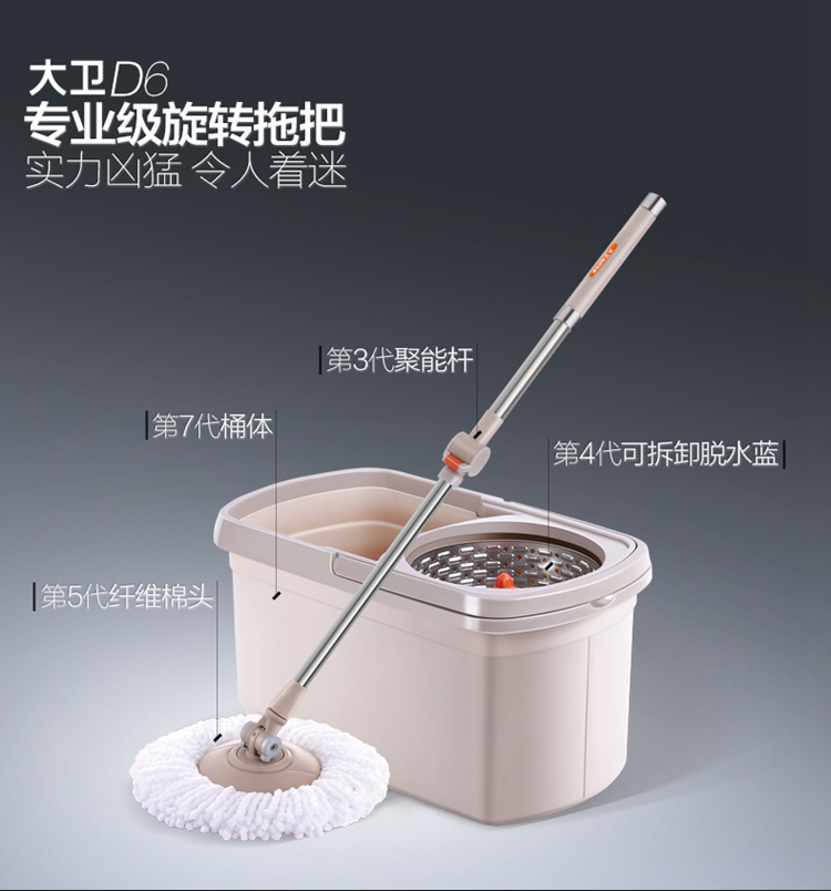 【自营】大卫明星款D6双驱动免手洗旋转拖把(1杆+2头)