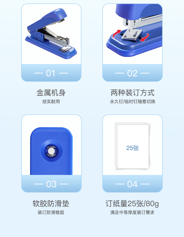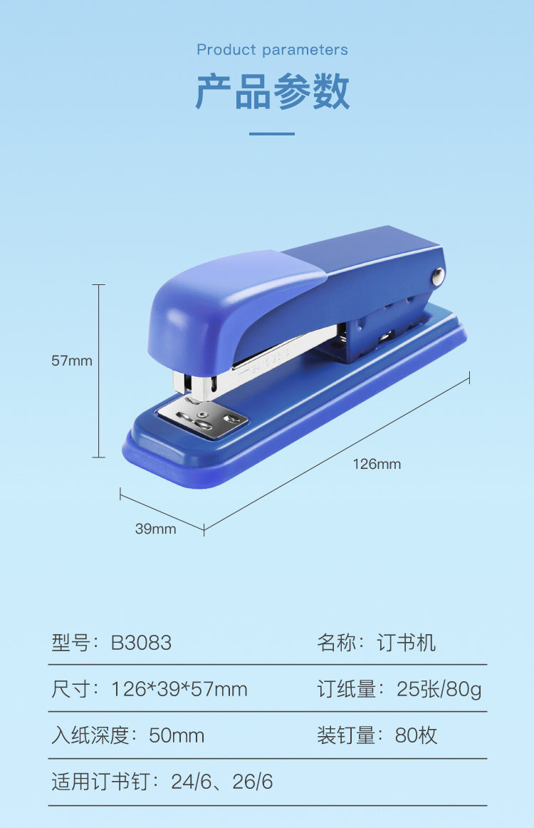 齐心订书机B3083耐用金钢(蓝)
