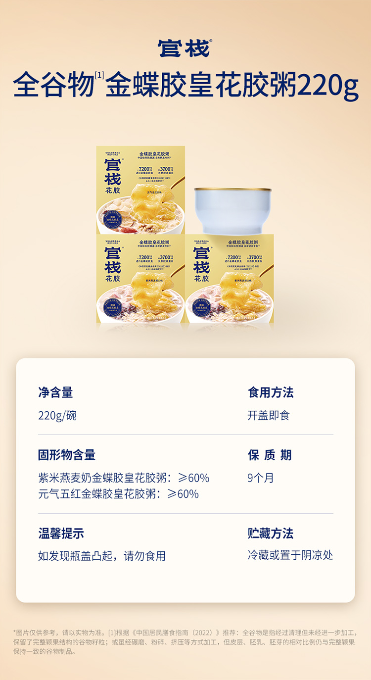 【疯狂星期四 | 金蝶胶皇粥】金蝶胶-官栈养肤金蝶胶皇即食花胶粥全谷物220g*6碗