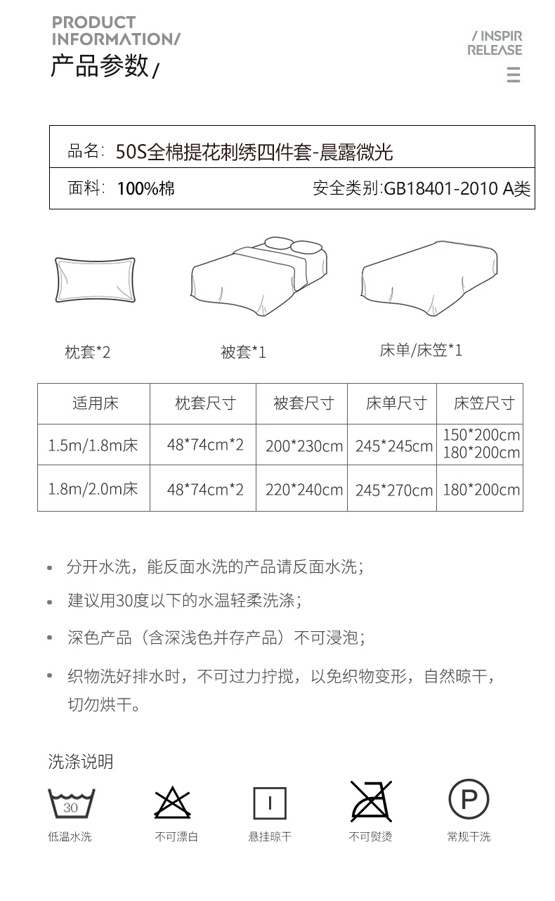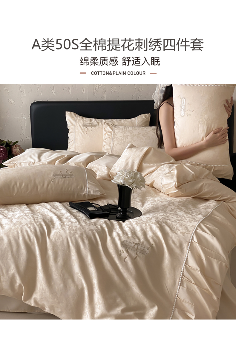 【热卖推荐】自然醒50支全棉提花四件套-晨露微光AN