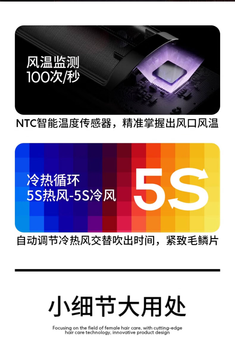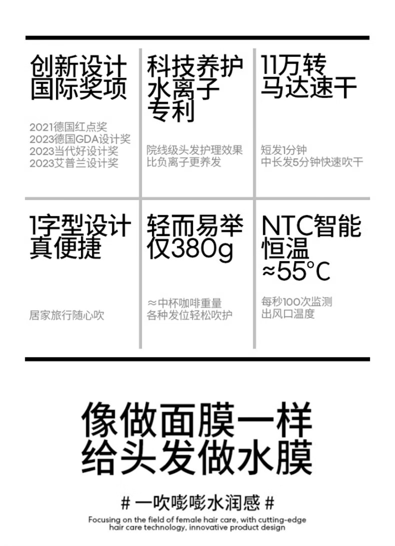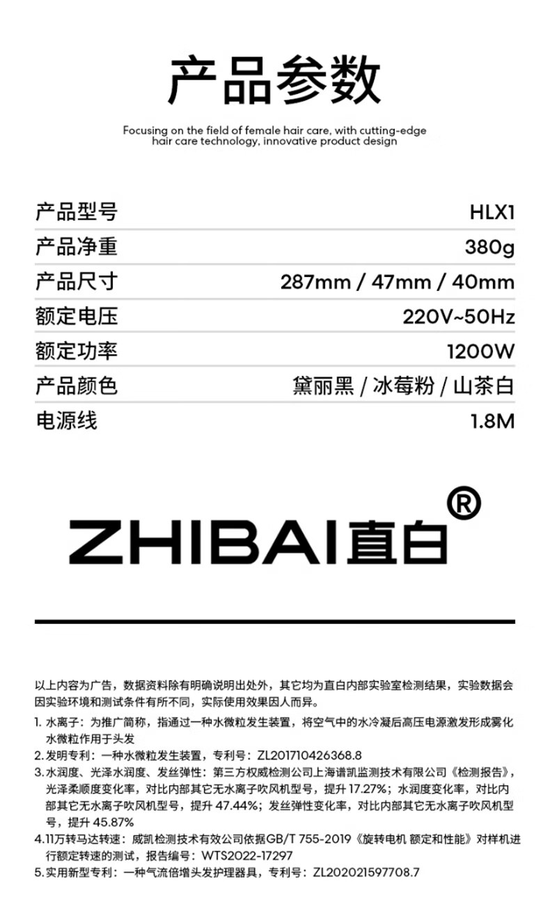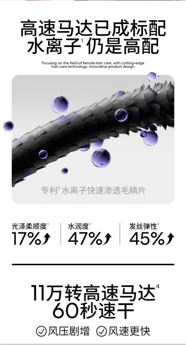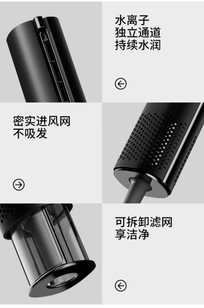 【自营】直白便携吹风机家用电吹风筒水离子护发大风力高速干静音生日礼物女礼盒 高速水离子吹风机HLX1 黑色