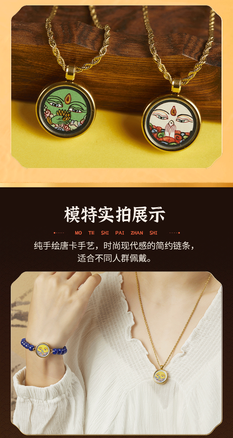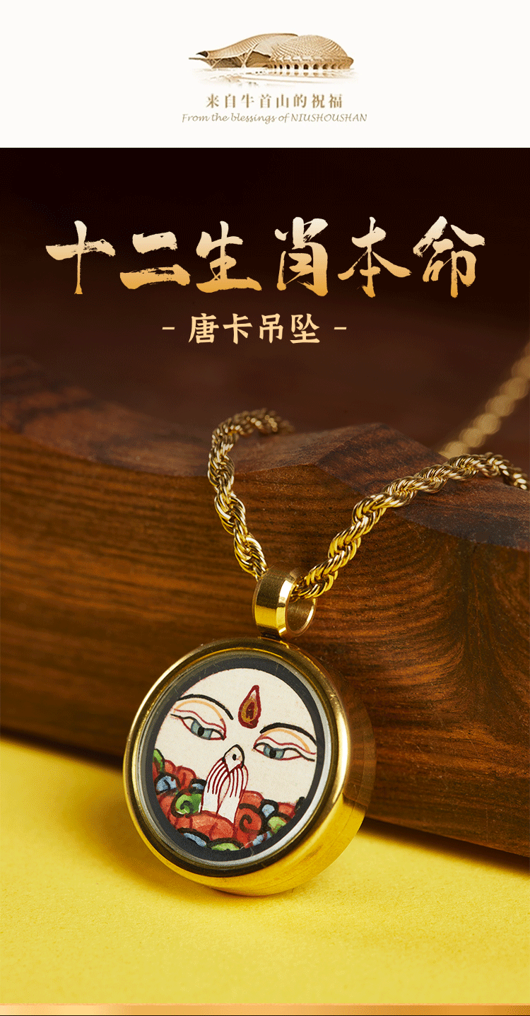 牛首山文创十二生肖本命唐卡吊坠项链简约手绘饰品祝福礼物送闺蜜
