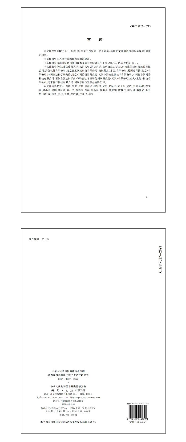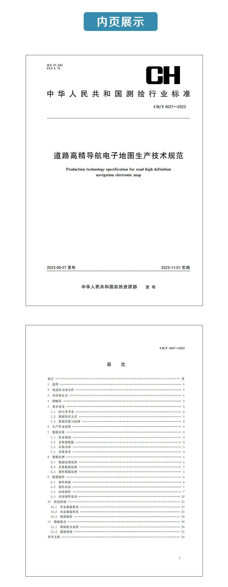测绘行业标准·道路高精导航电子地图生产技术规范——CHT 4027—2023