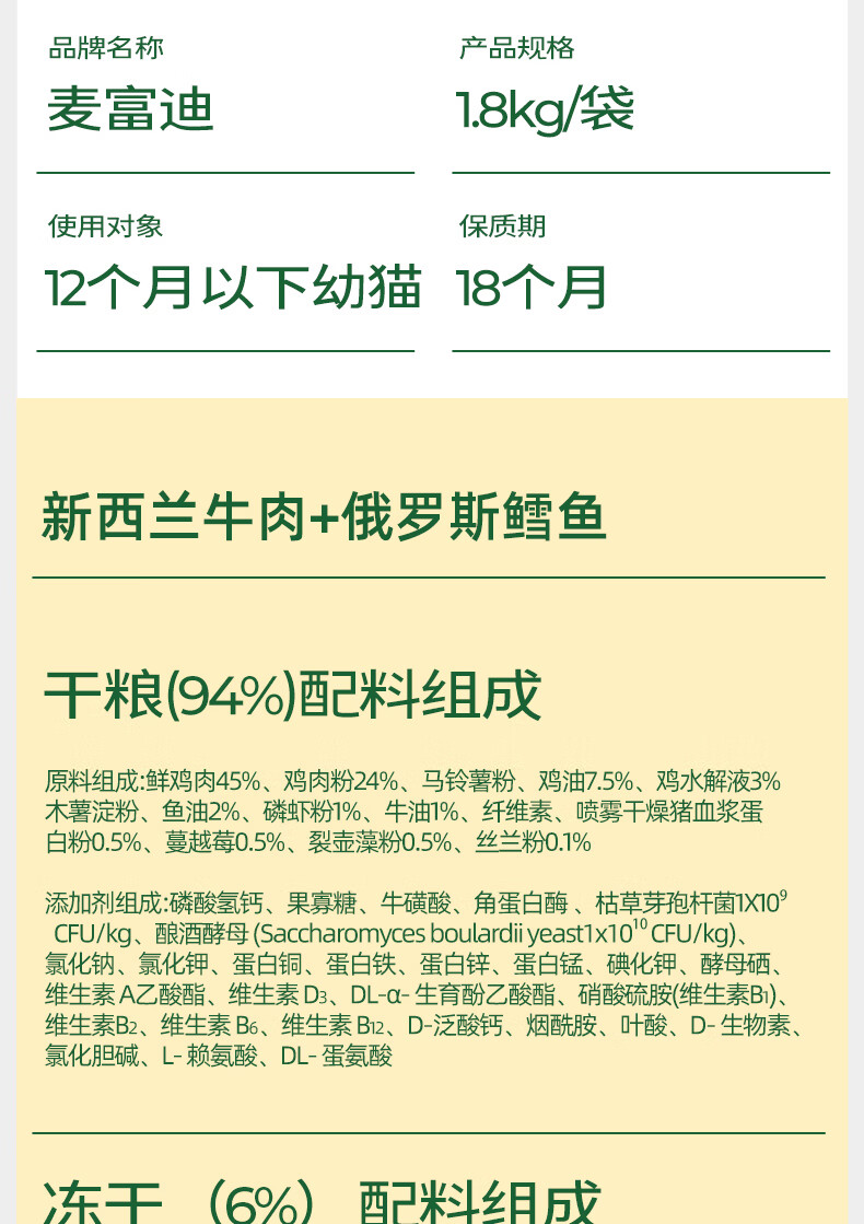 麦富迪barf霸弗猫粮鸡肉口味1.8kg/袋