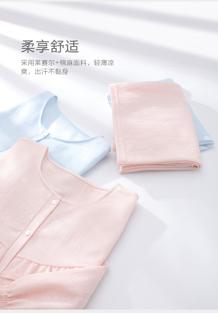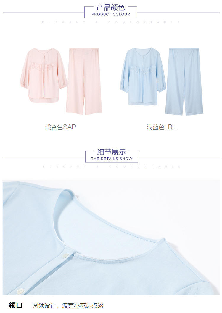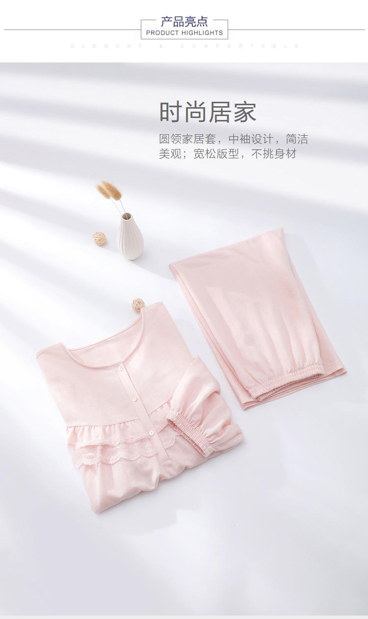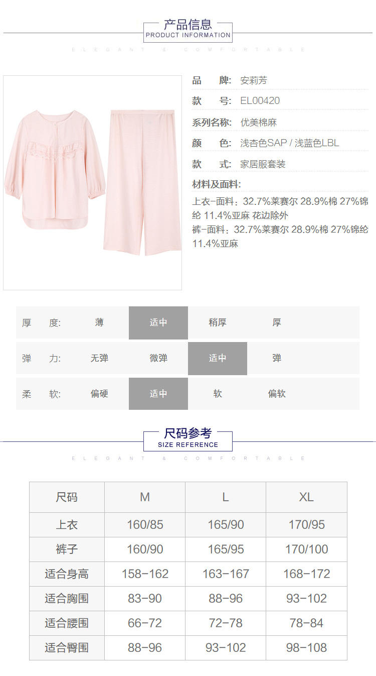 安莉芳棉质圆领睡衣睡裤女休闲家居服套装EL00420