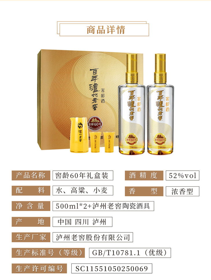 【泸州老窖官方形象店】百年泸州老窖窖龄酒60年 52度500ml*2 礼盒装 浓香型白酒