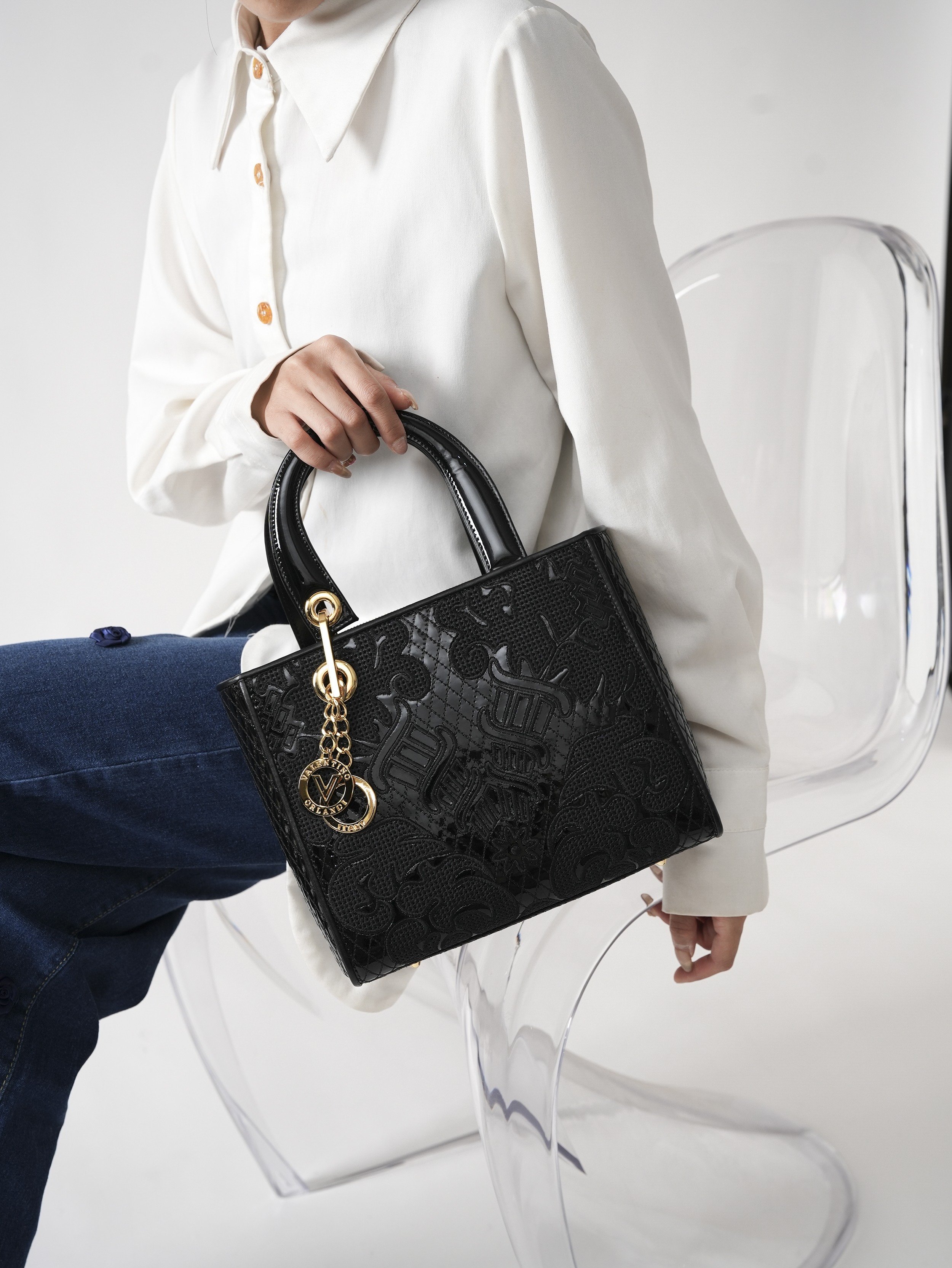 豪麟名鞋VALENTINO ORLANDI 女包手袋牛移膜革7267A黑色