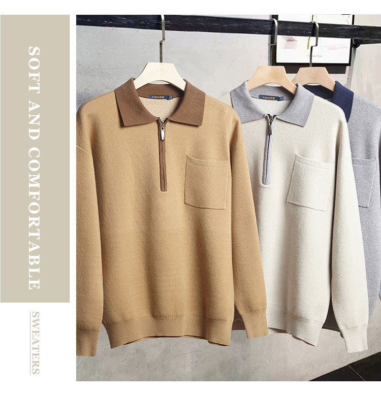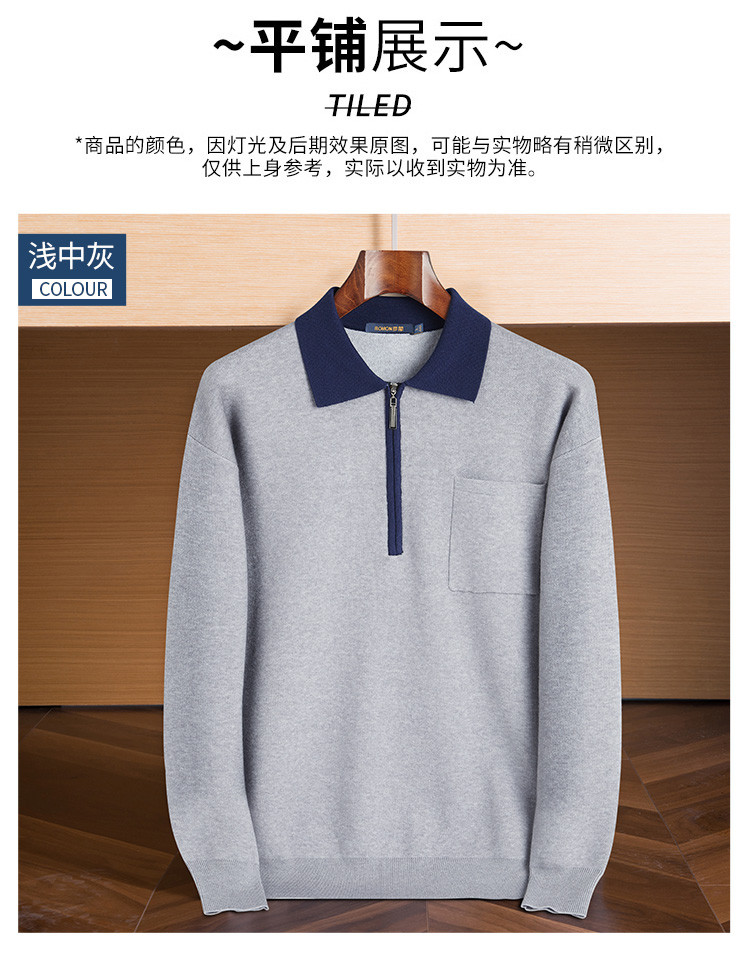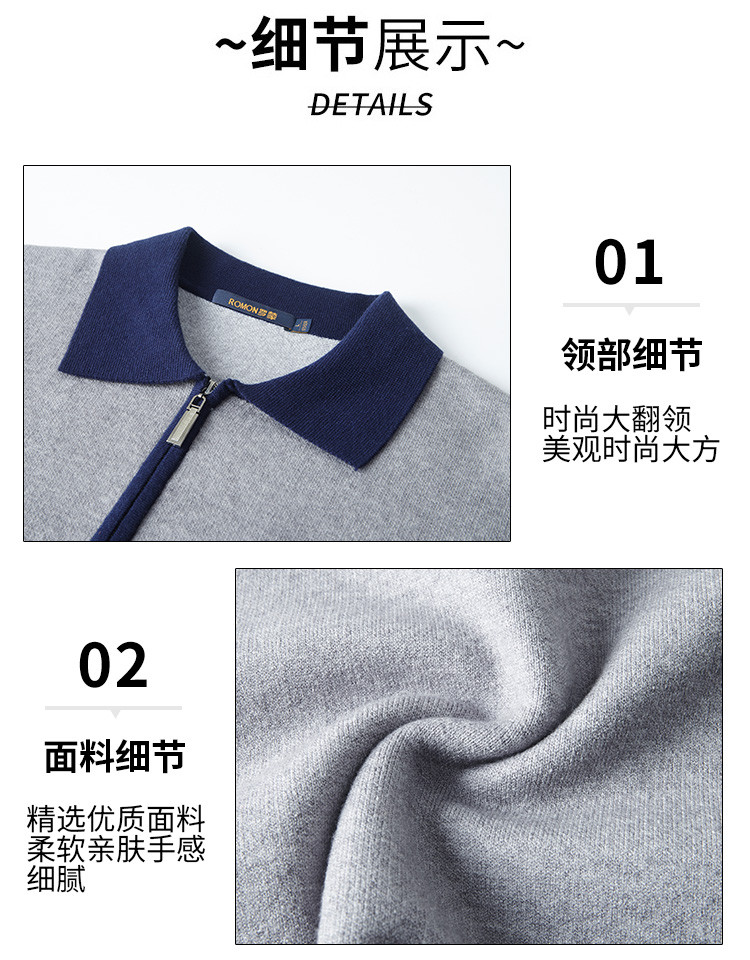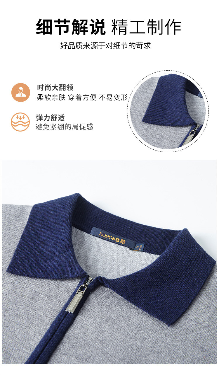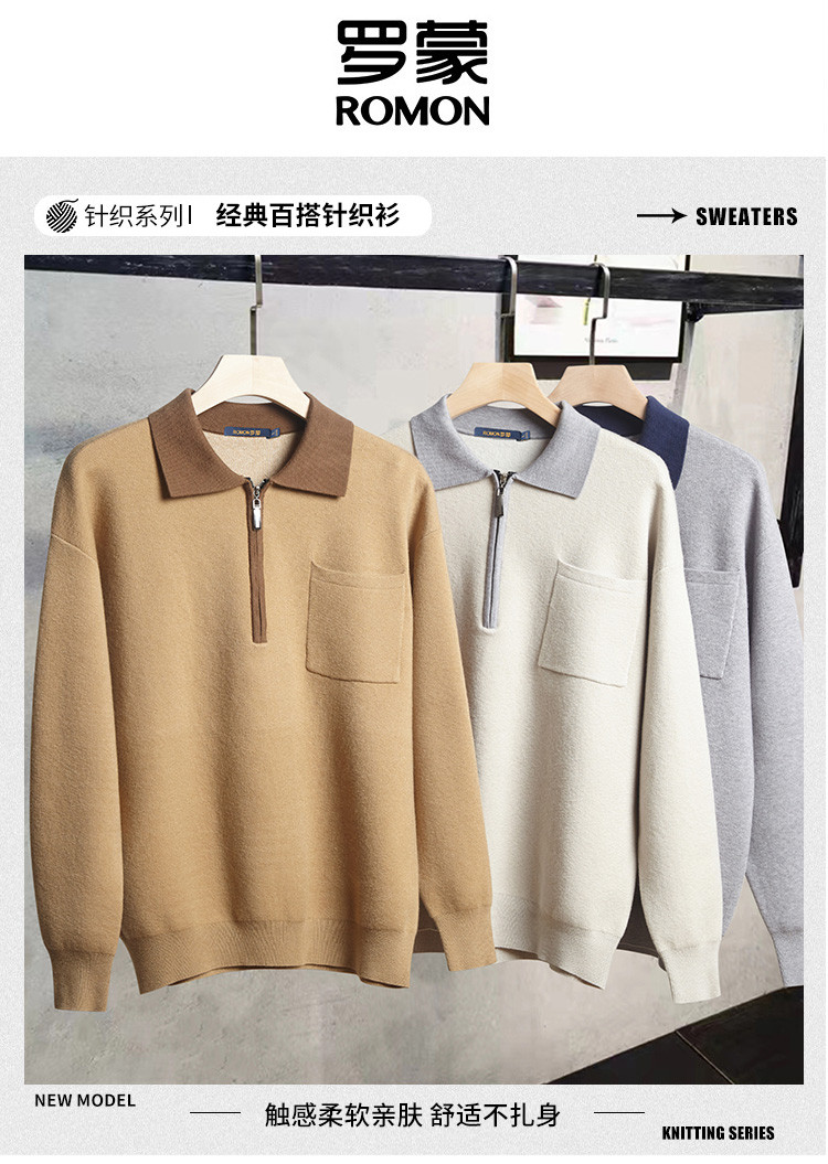 【膨体速暖仿羊绒】罗蒙男士秋冬撞色领polo衫男长袖毛衫男针织衫男卫衣