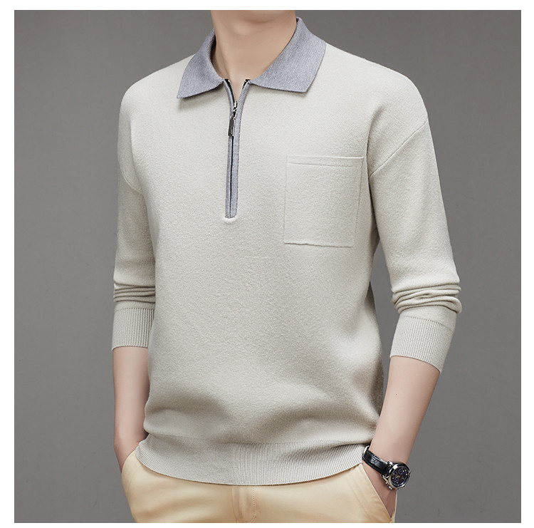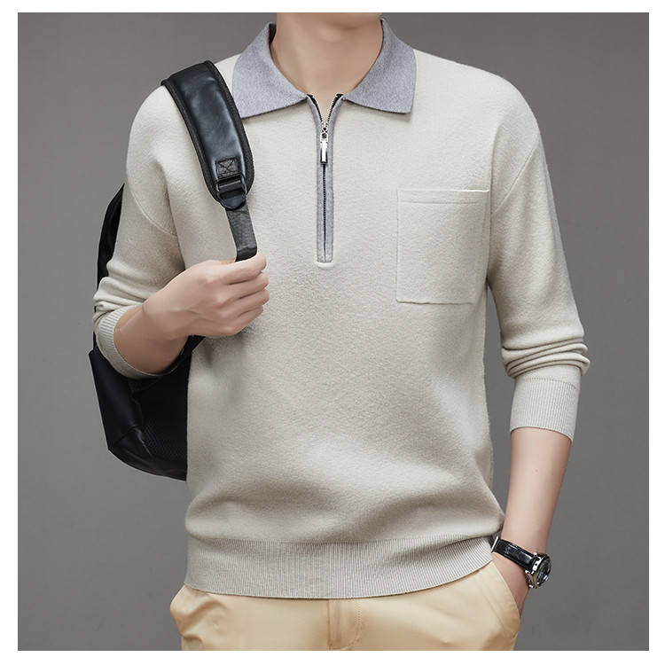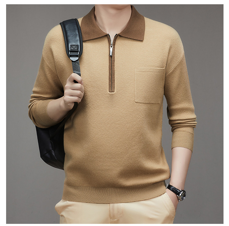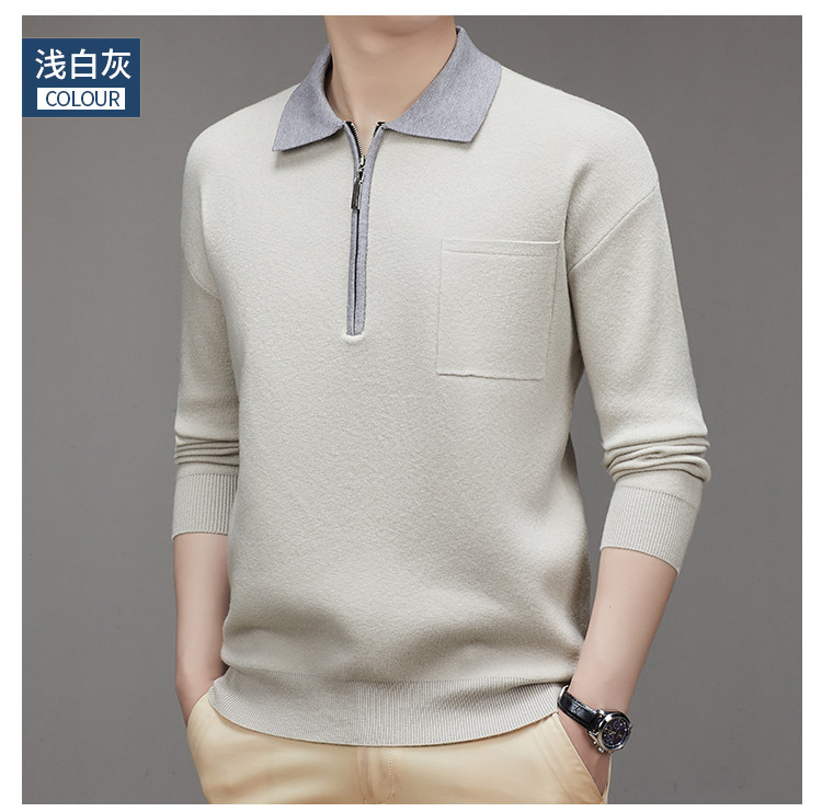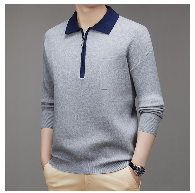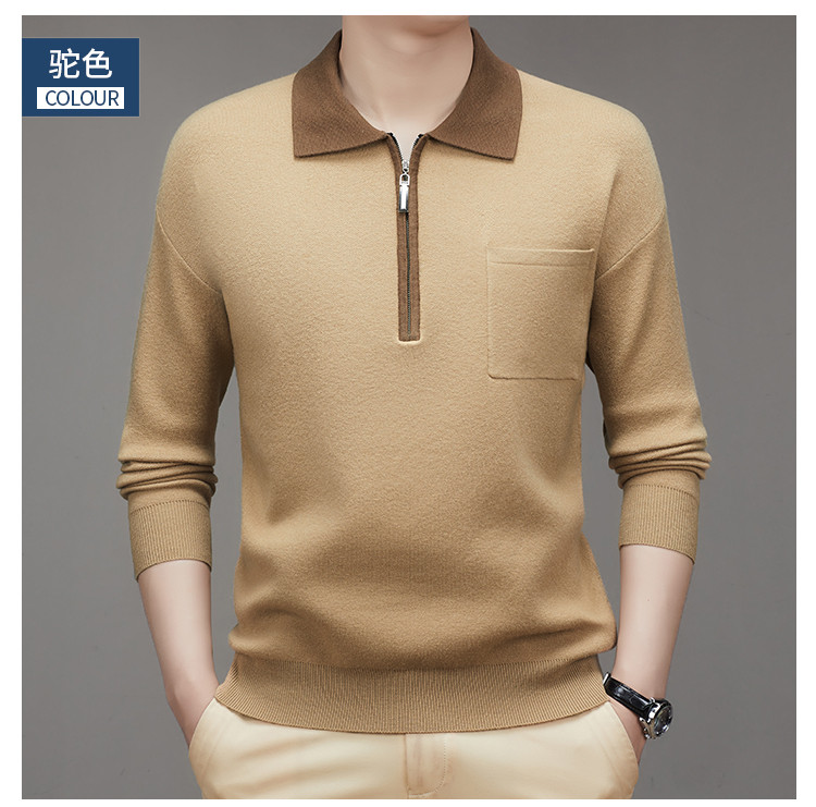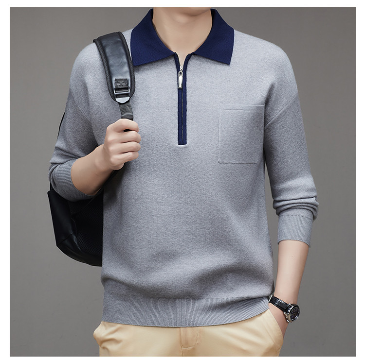 【膨体速暖仿羊绒】罗蒙男士秋冬撞色领polo衫男长袖毛衫男针织衫男卫衣