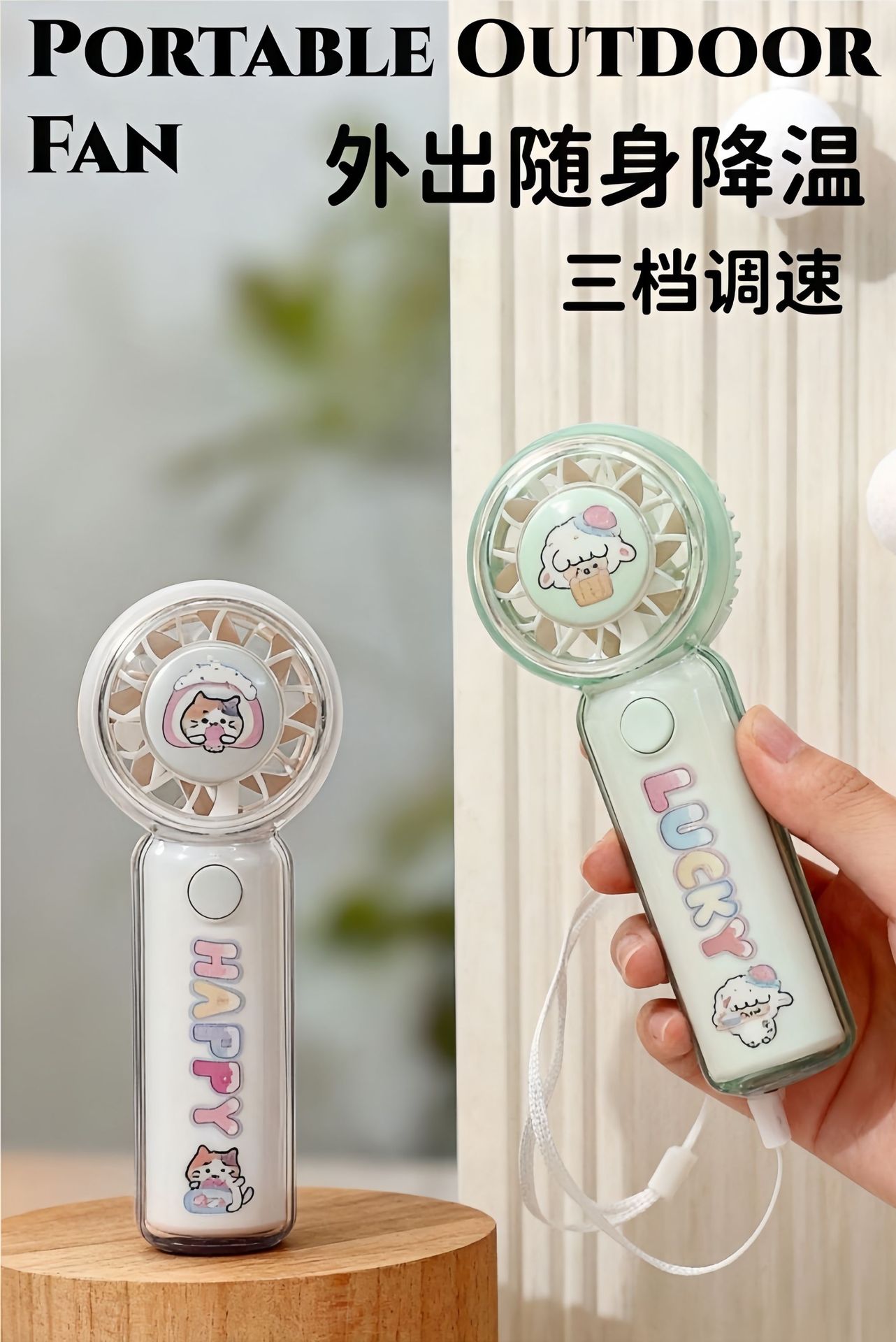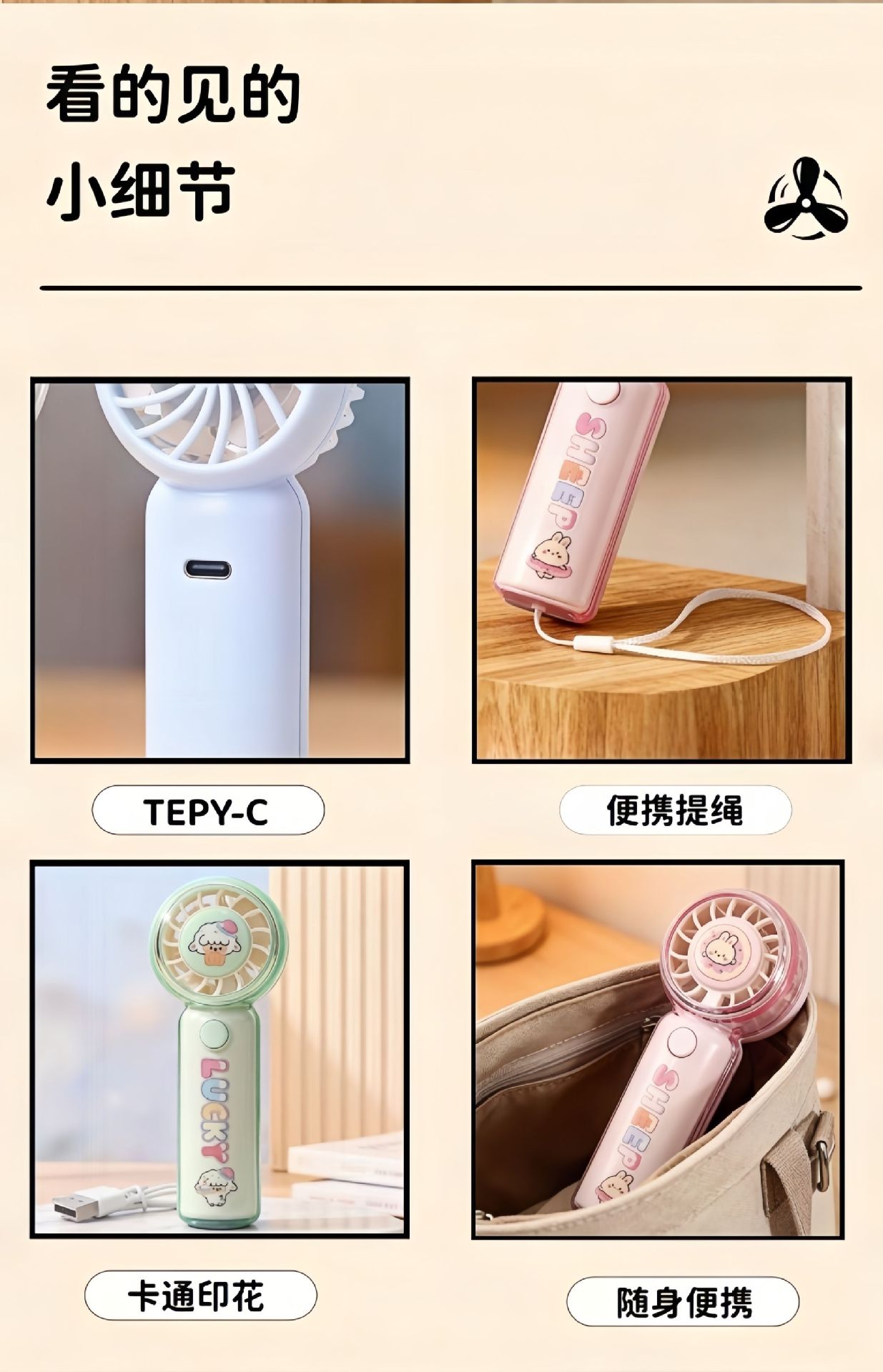 【随时随地 !风享夏日】 卡通印花 手持便携小风扇 USB 充电便携大风力户外电扇 2026 夏季新款