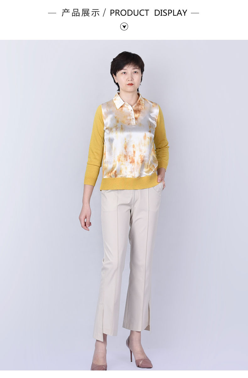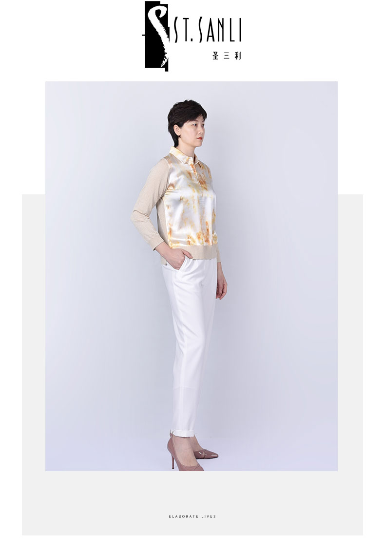 圣三利女装拼接款长袖针织衫SL121M04