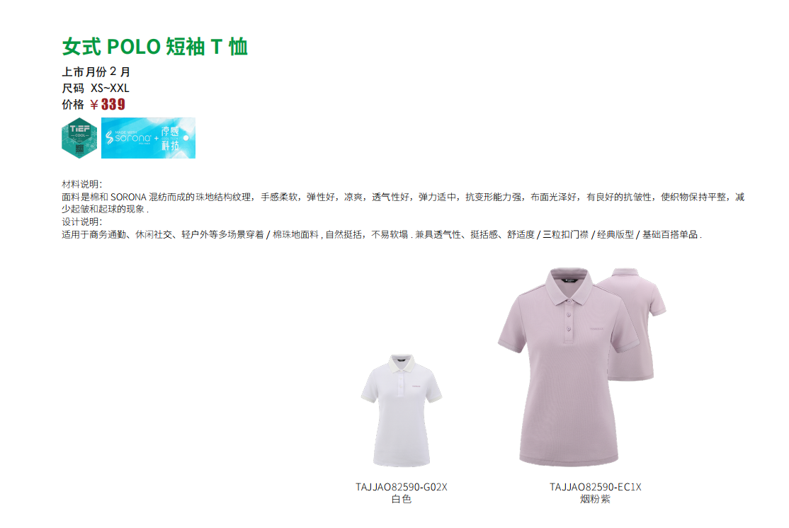 探路者女式POLO短袖T恤TAJJAO82590