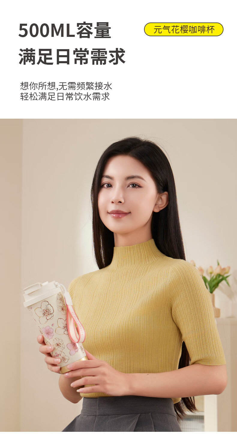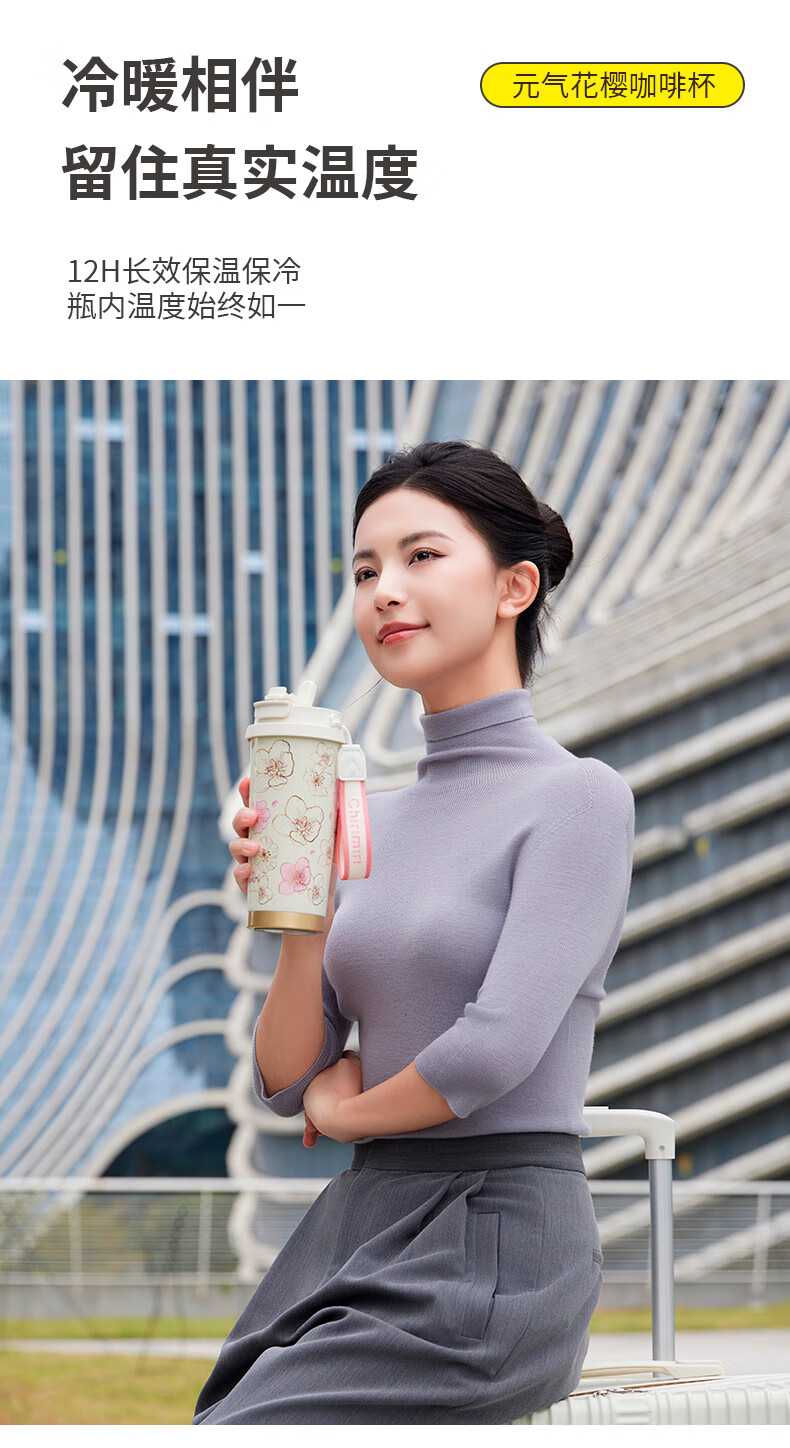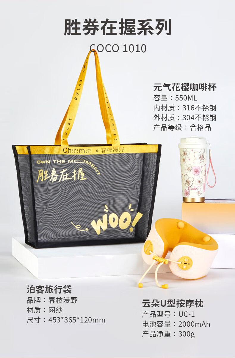 Chirimiri春枝漫野胜券在握系列CoCo1010按摩U型枕热敷振动按摩+樱花系列316不锈钢水杯双饮杯吸管杯500ml礼盒