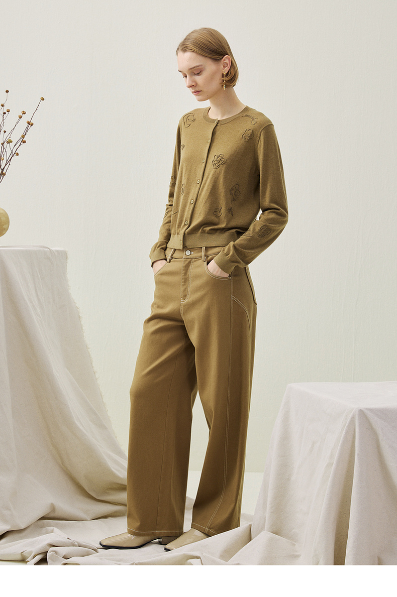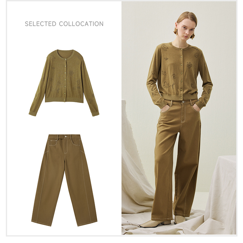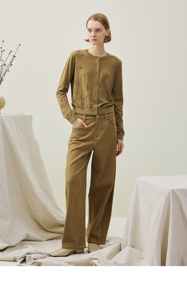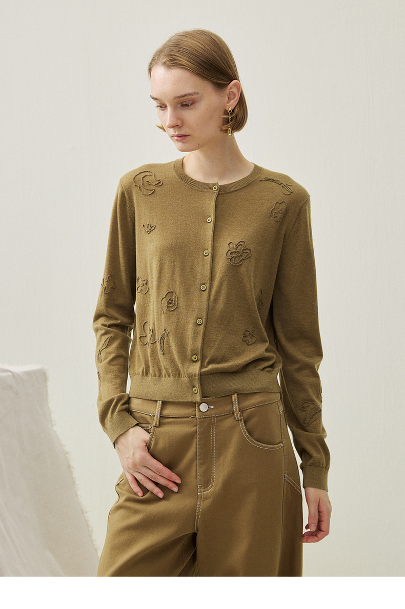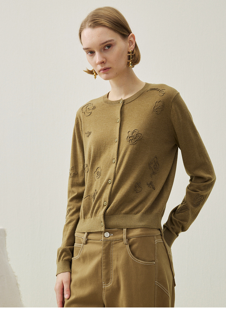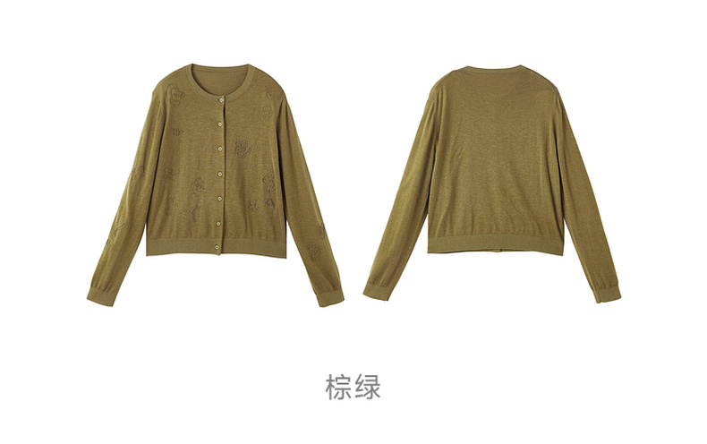 谜底针织开衫长袖2025冬季新品圆领复古绣花百搭短款女254MZ1910