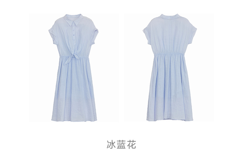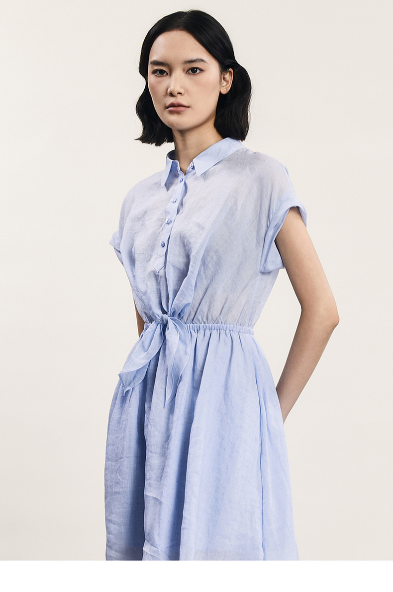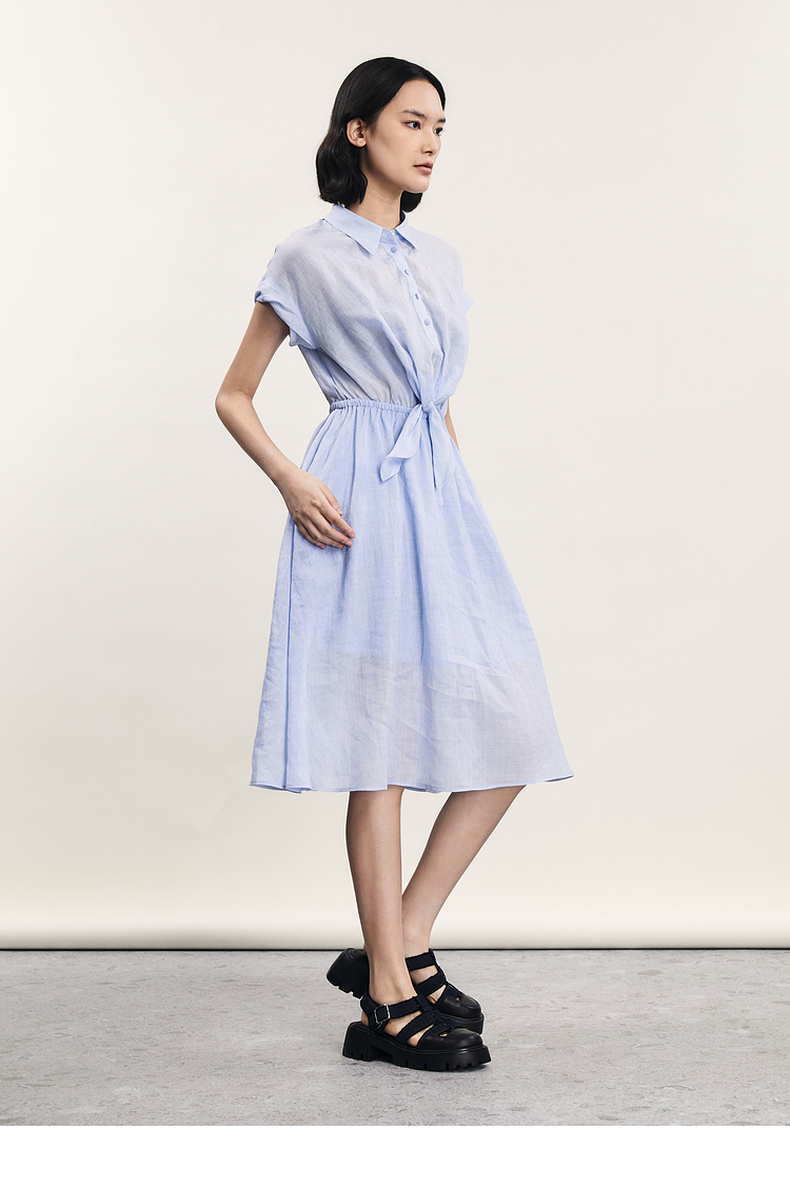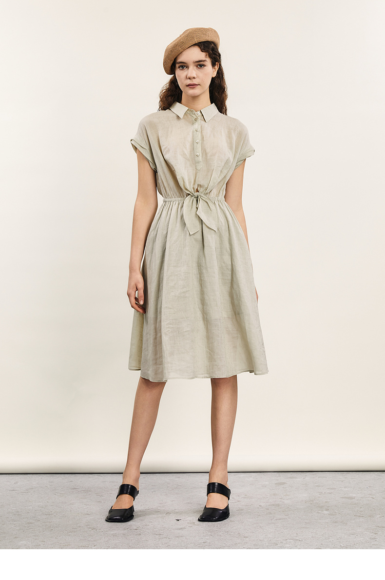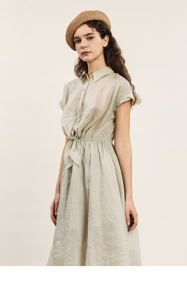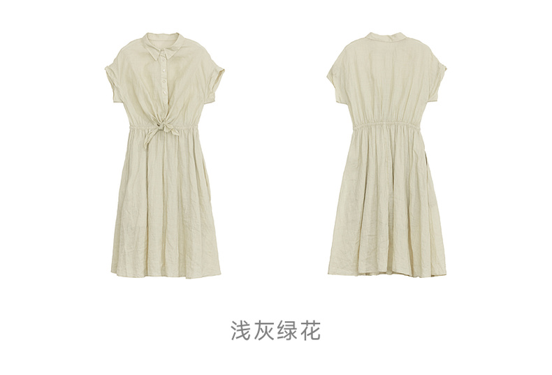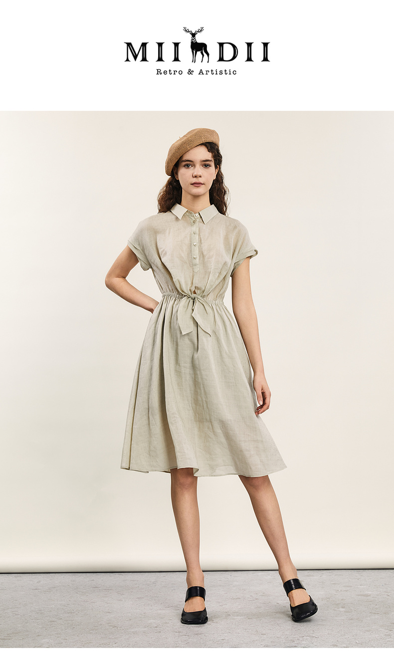 谜底连衣裙短袖2024年夏款通勤风简约苎麻收腰中长裙子242ML0620
