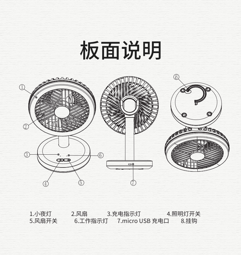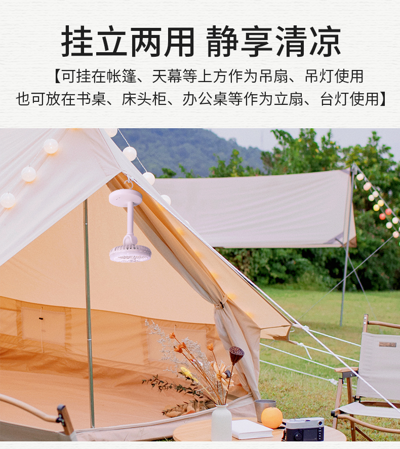 户外露营小风扇帐篷灯便携充电静音LED灯悬挂营地灯学生宿舍照明 1J32350504