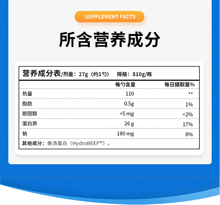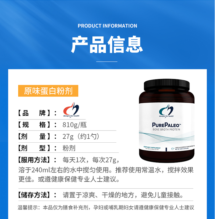 美国DFH 牛肉蛋白粉 原味蛋白粉剂design for health PurePaleo Unflavored 810克/瓶