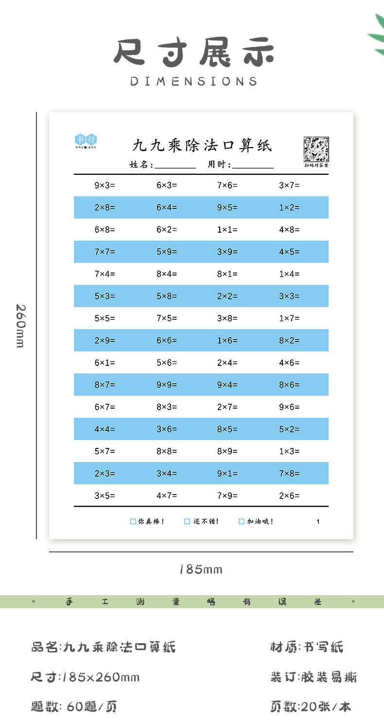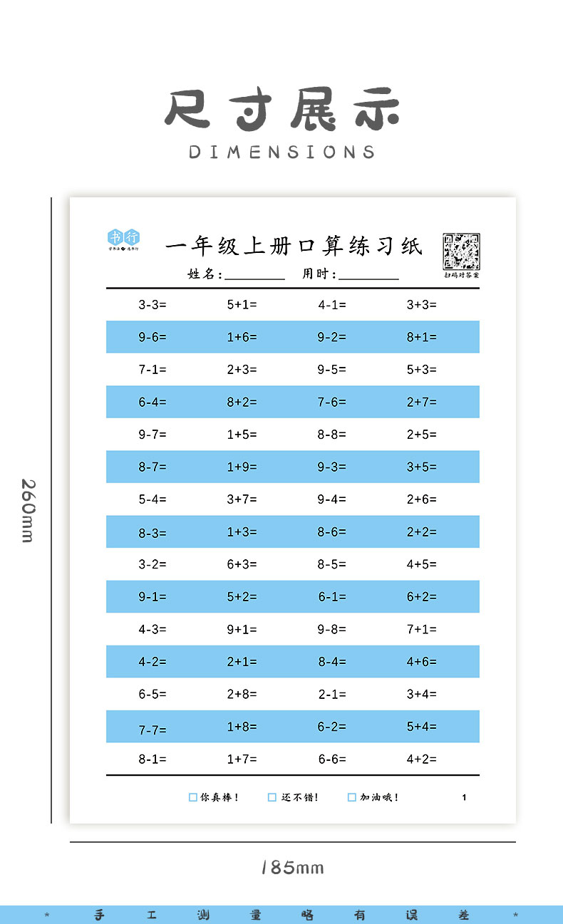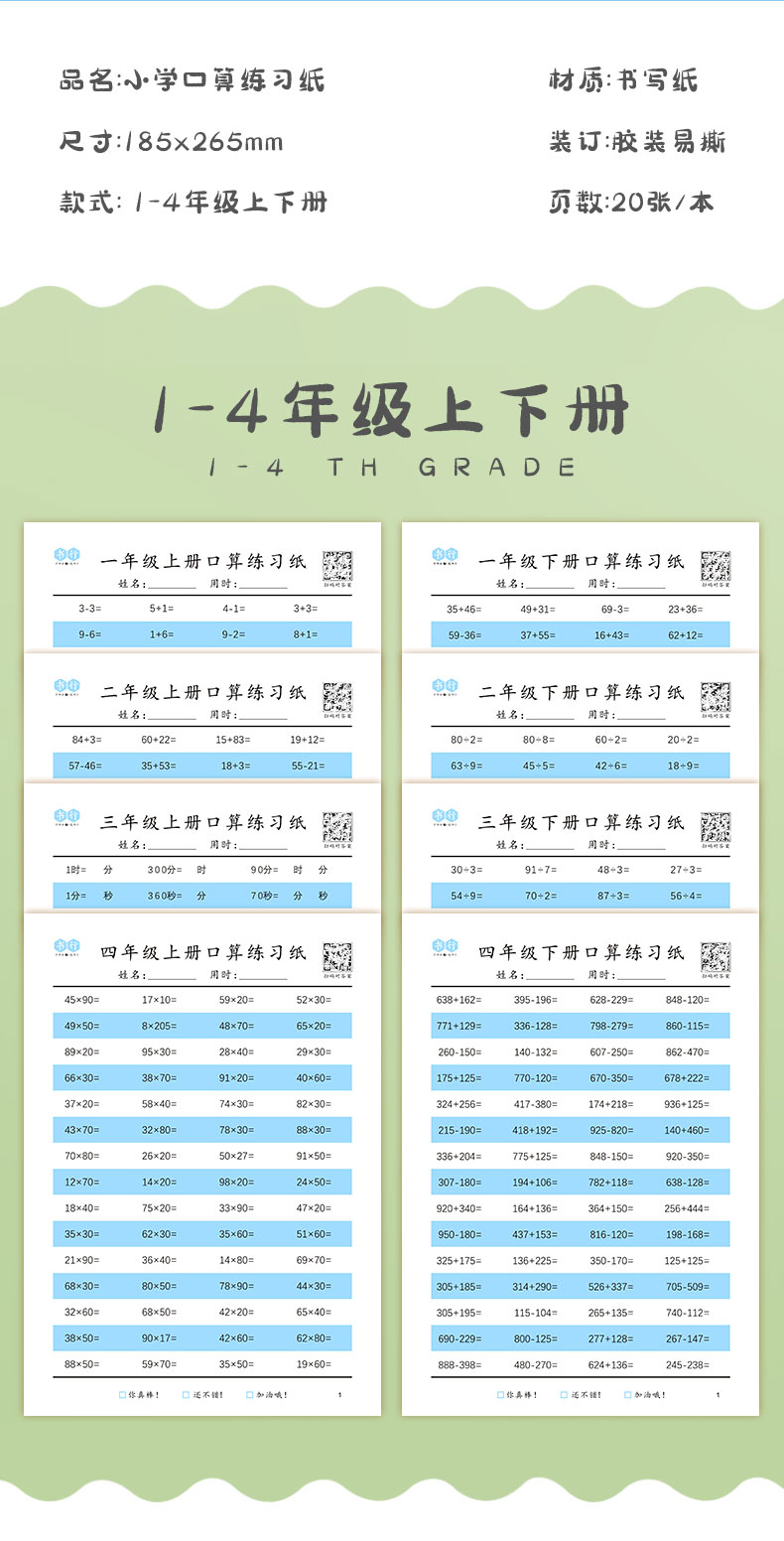 小学一到四年级口算练习纸,数学打基础题目练习每天练一页