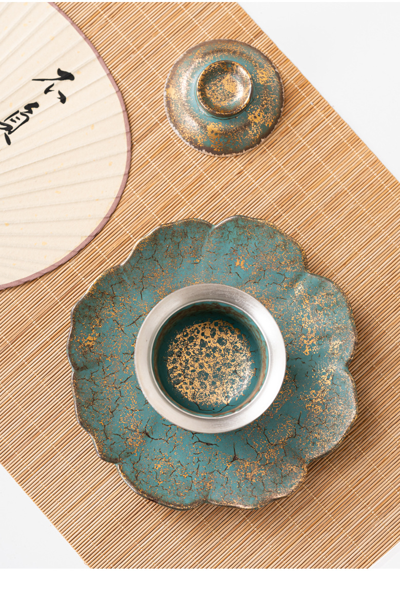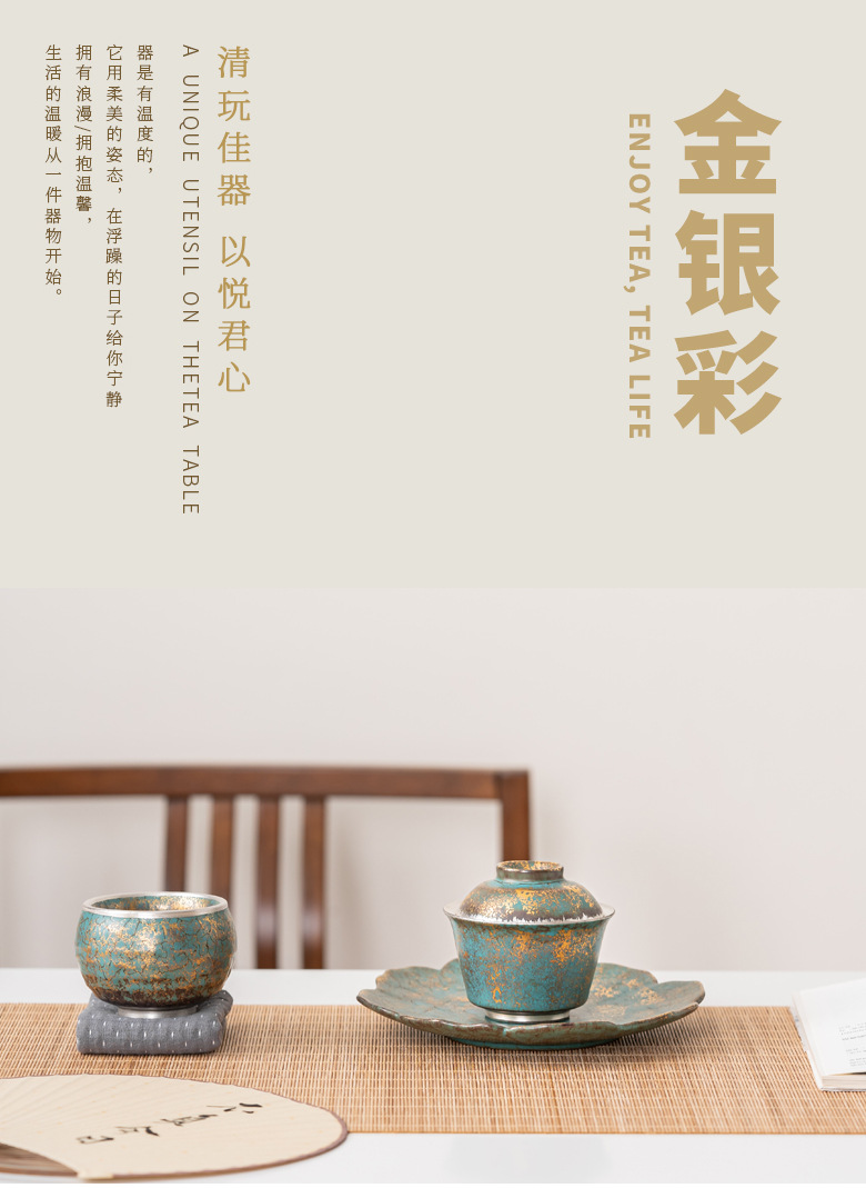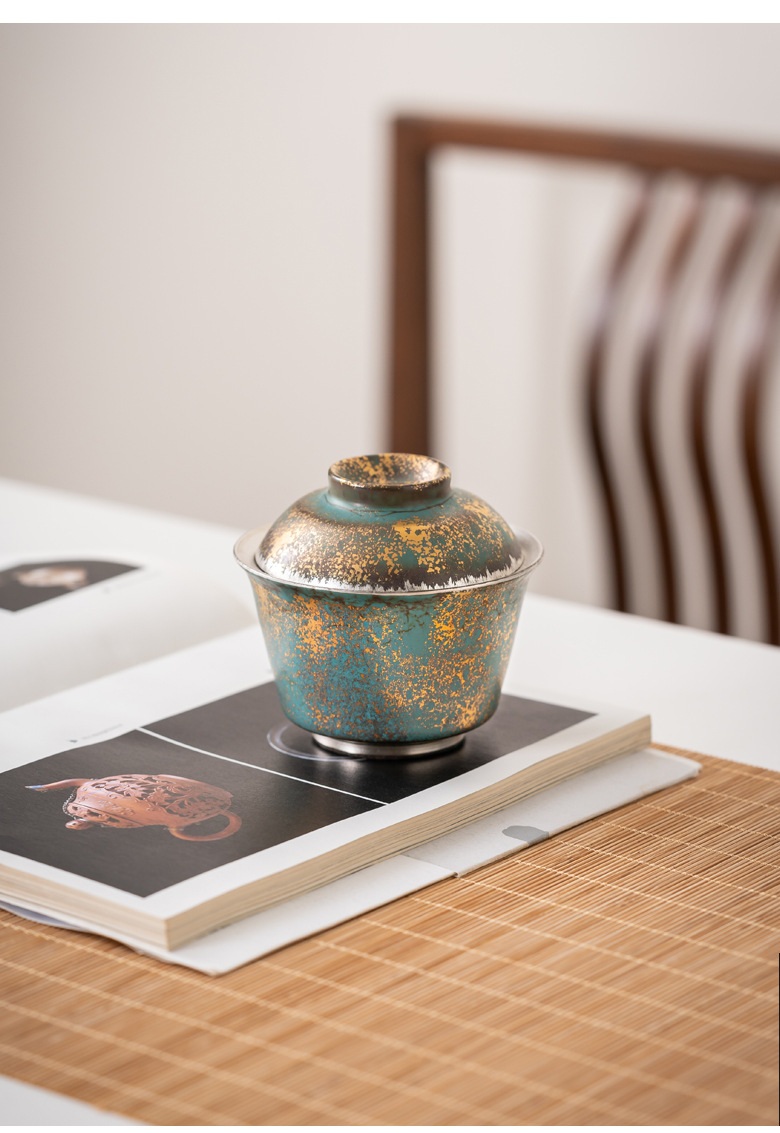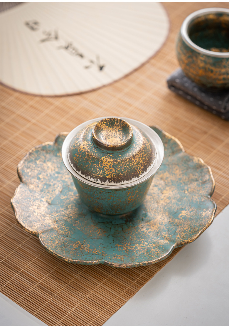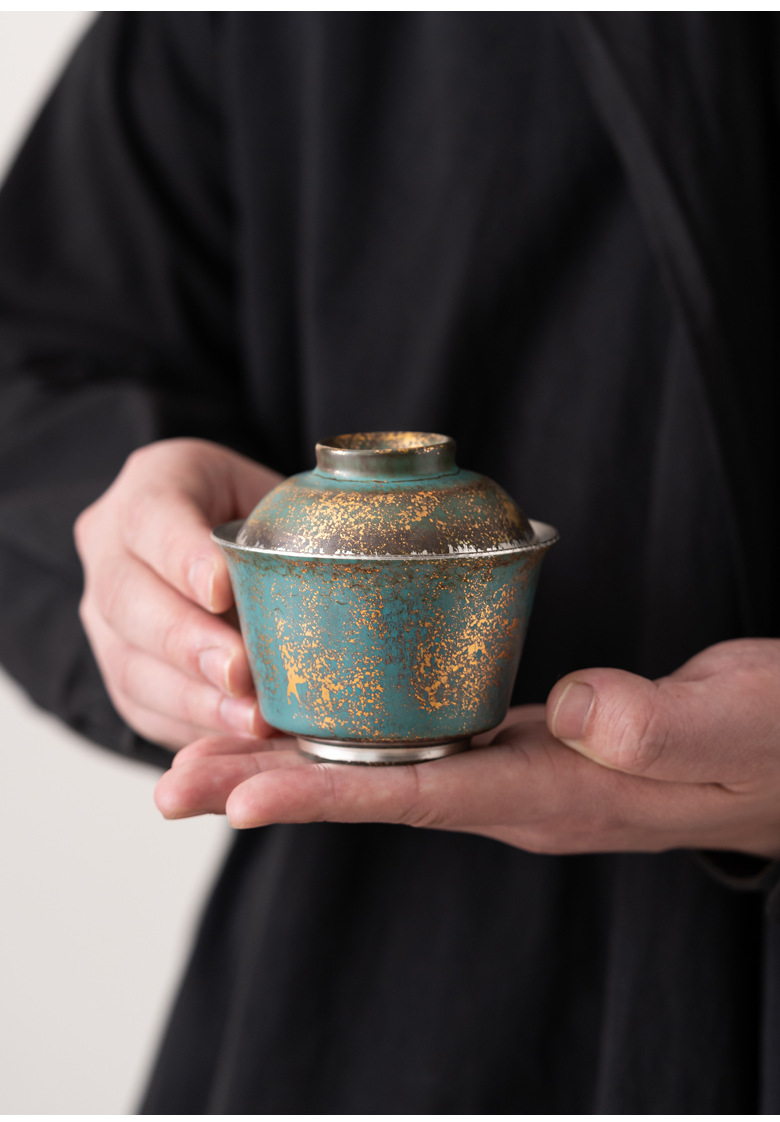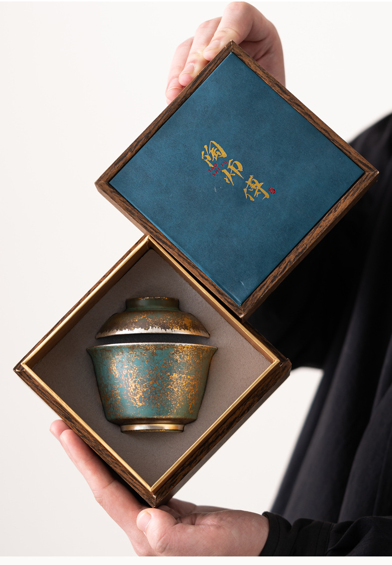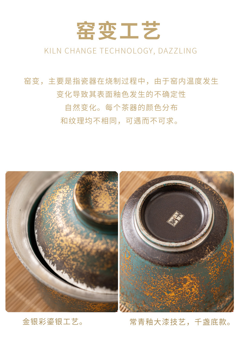 常青釉金银彩盖碗日式复古陶瓷茶具功夫茶家用泡茶器茶碗套装礼盒