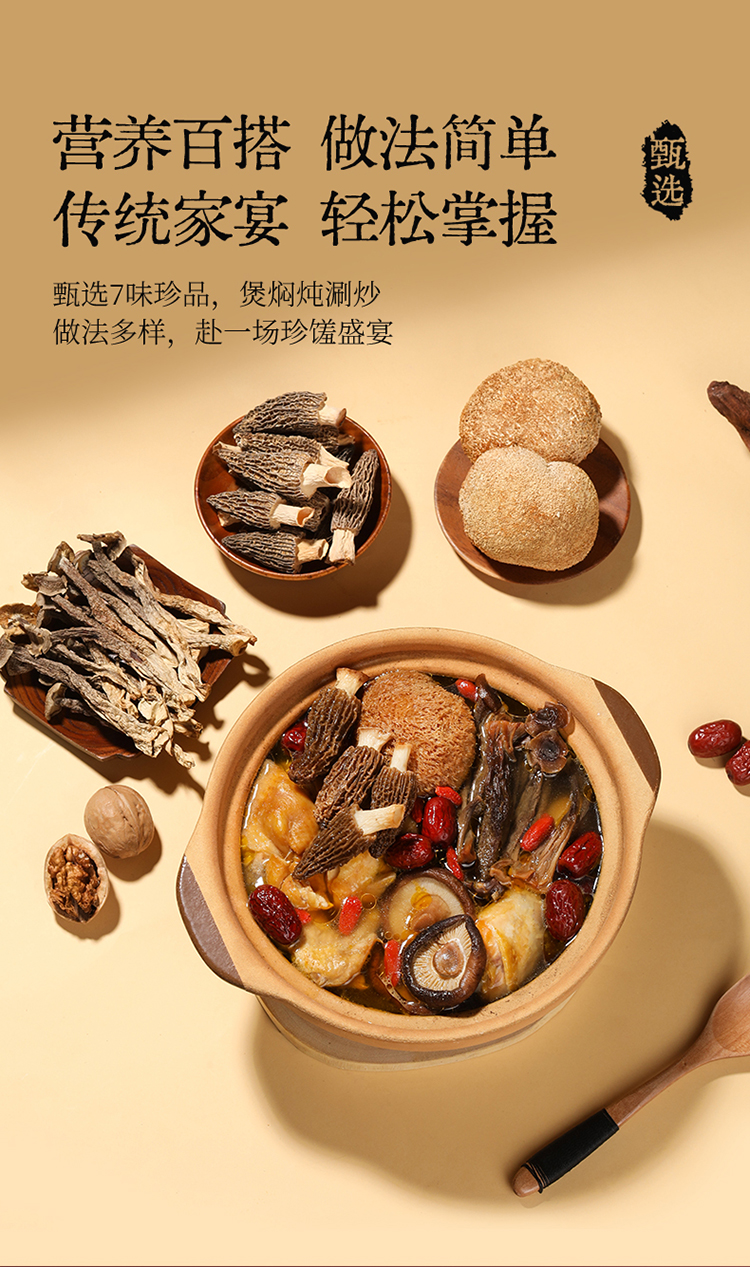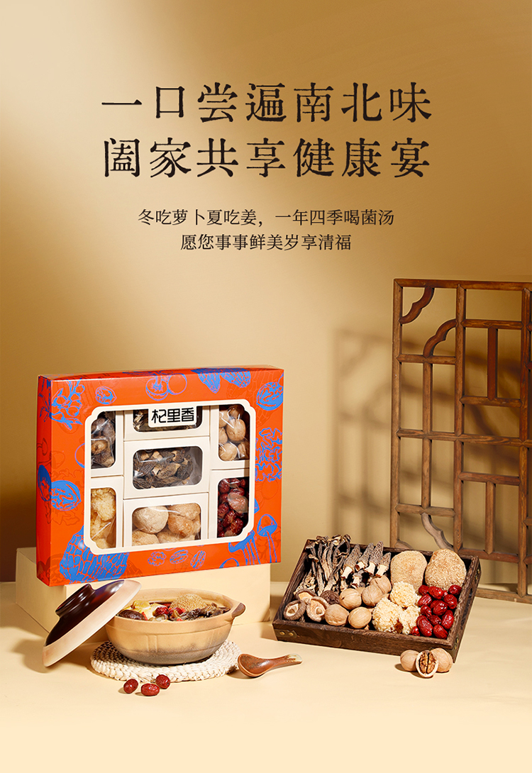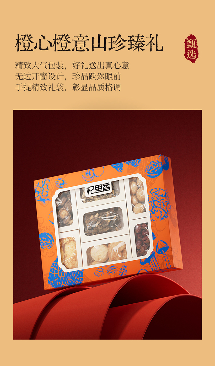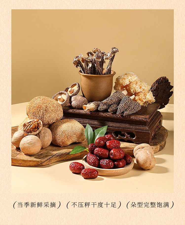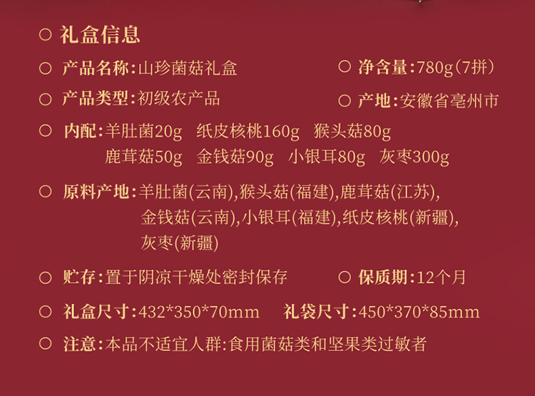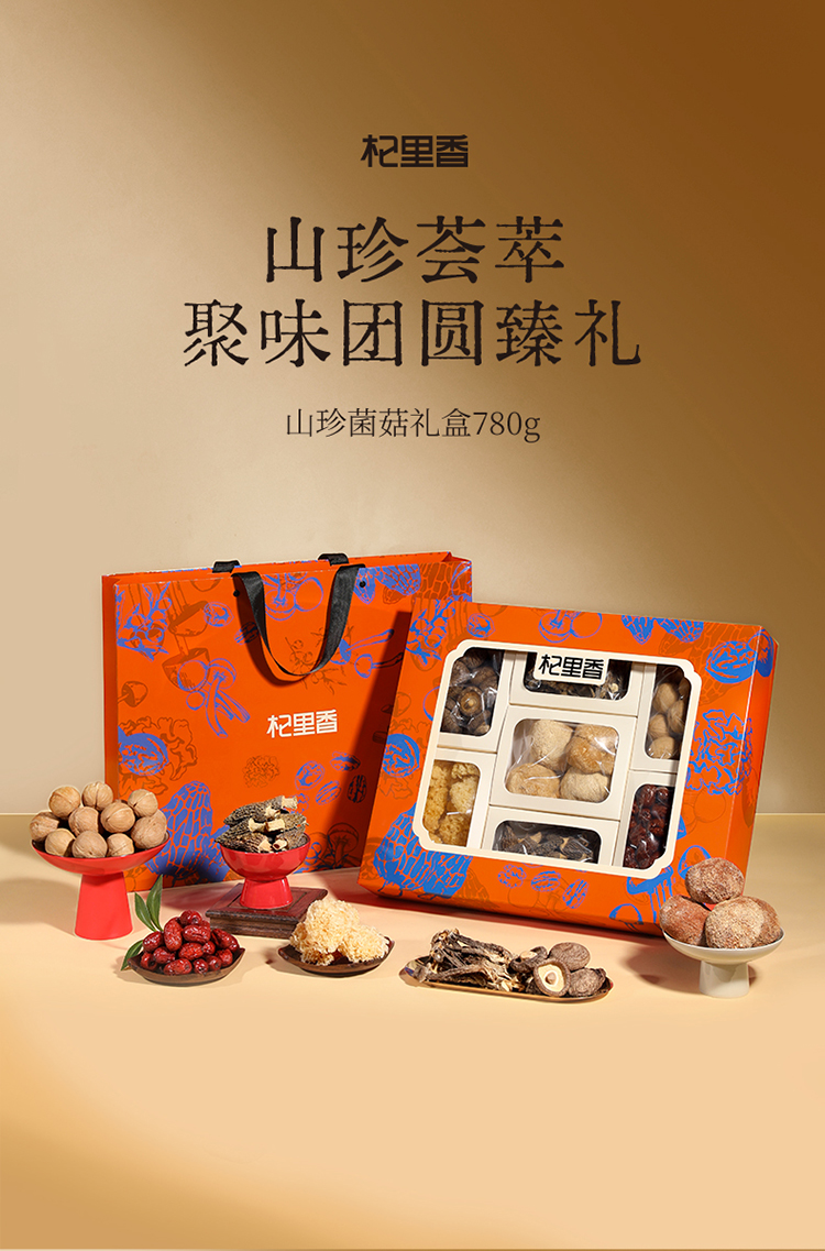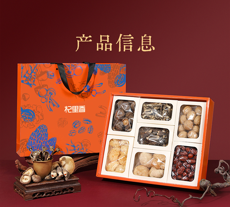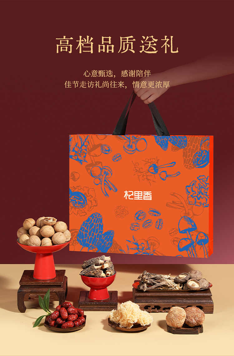 杞里香780g菌菇干货礼盒羊肚菌20g,纸皮核桃160g,猴头菇80g,鹿茸菇50g,金钱菇90g,小银耳80g,灰枣300g送礼礼盒中秋年货礼盒