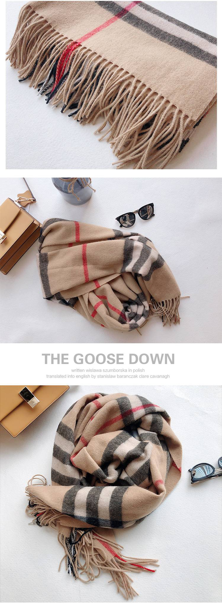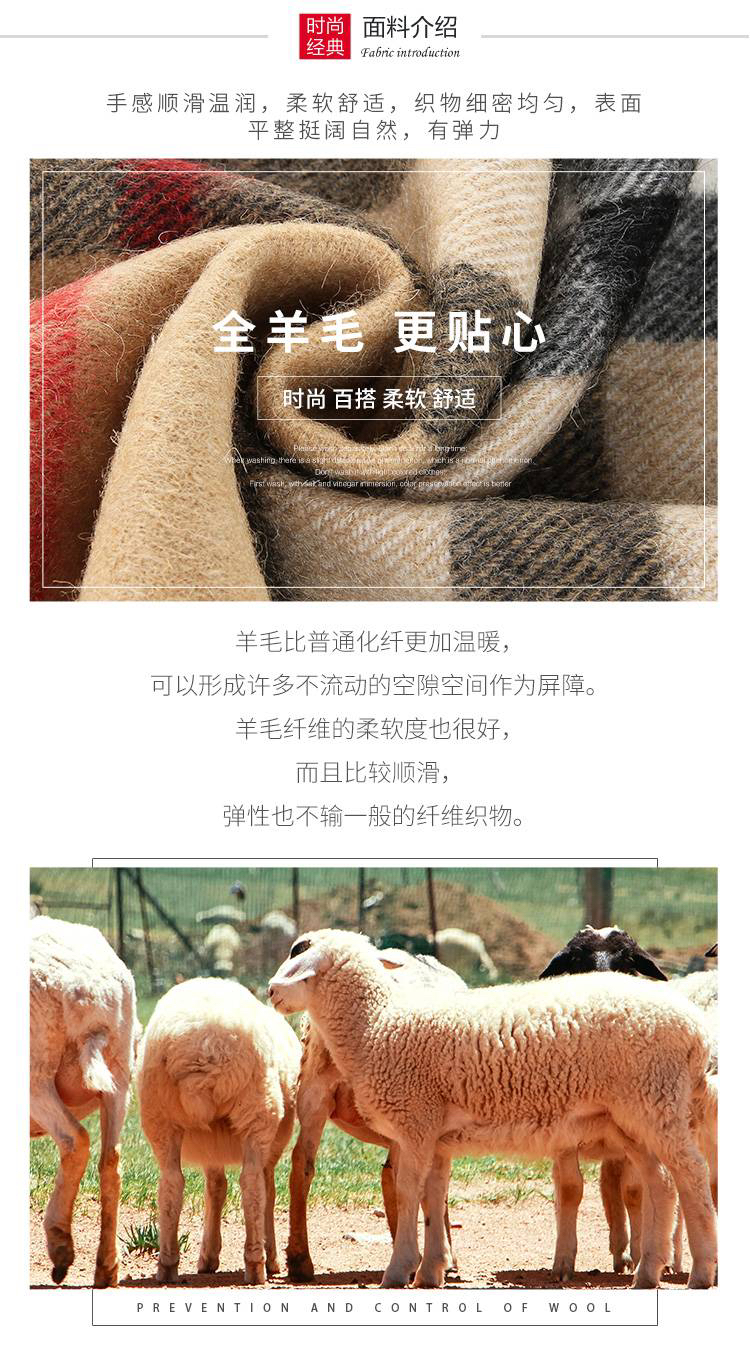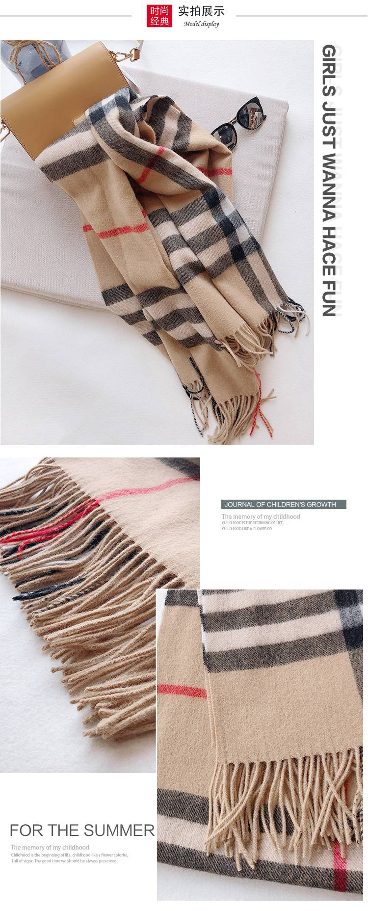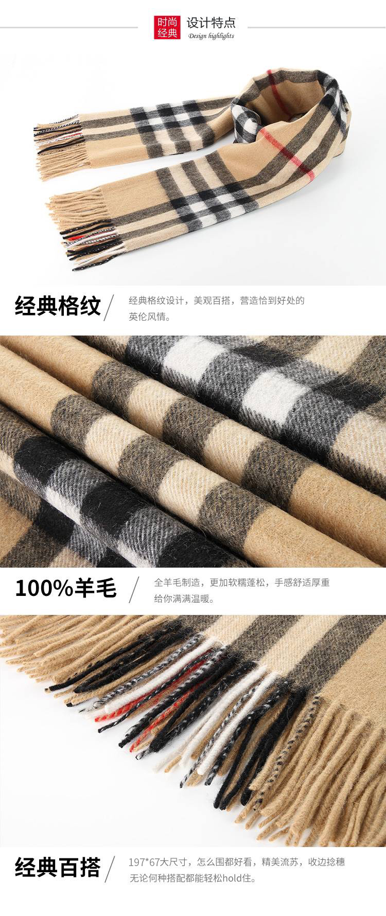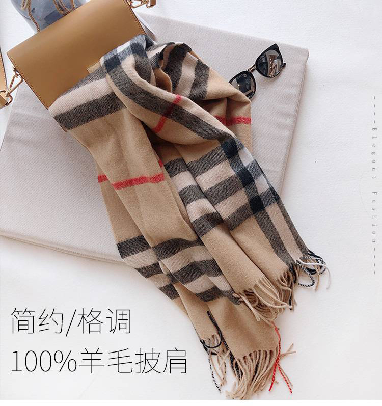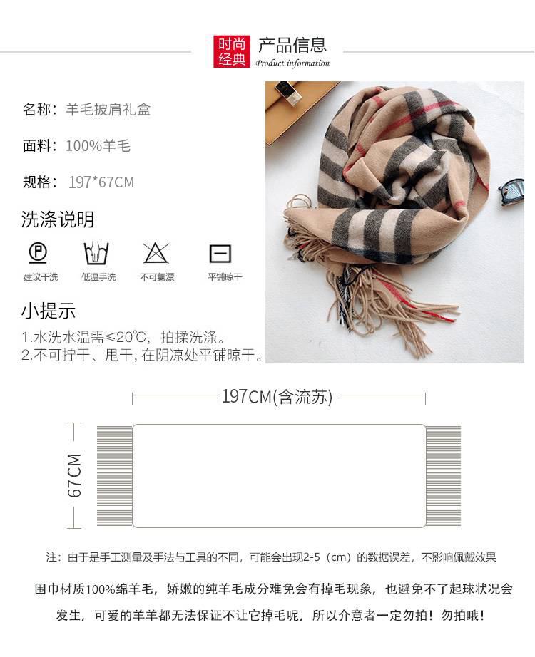 日本100%绵羊毛大格子围巾披肩(礼盒装) 驼色格子 197*67cm