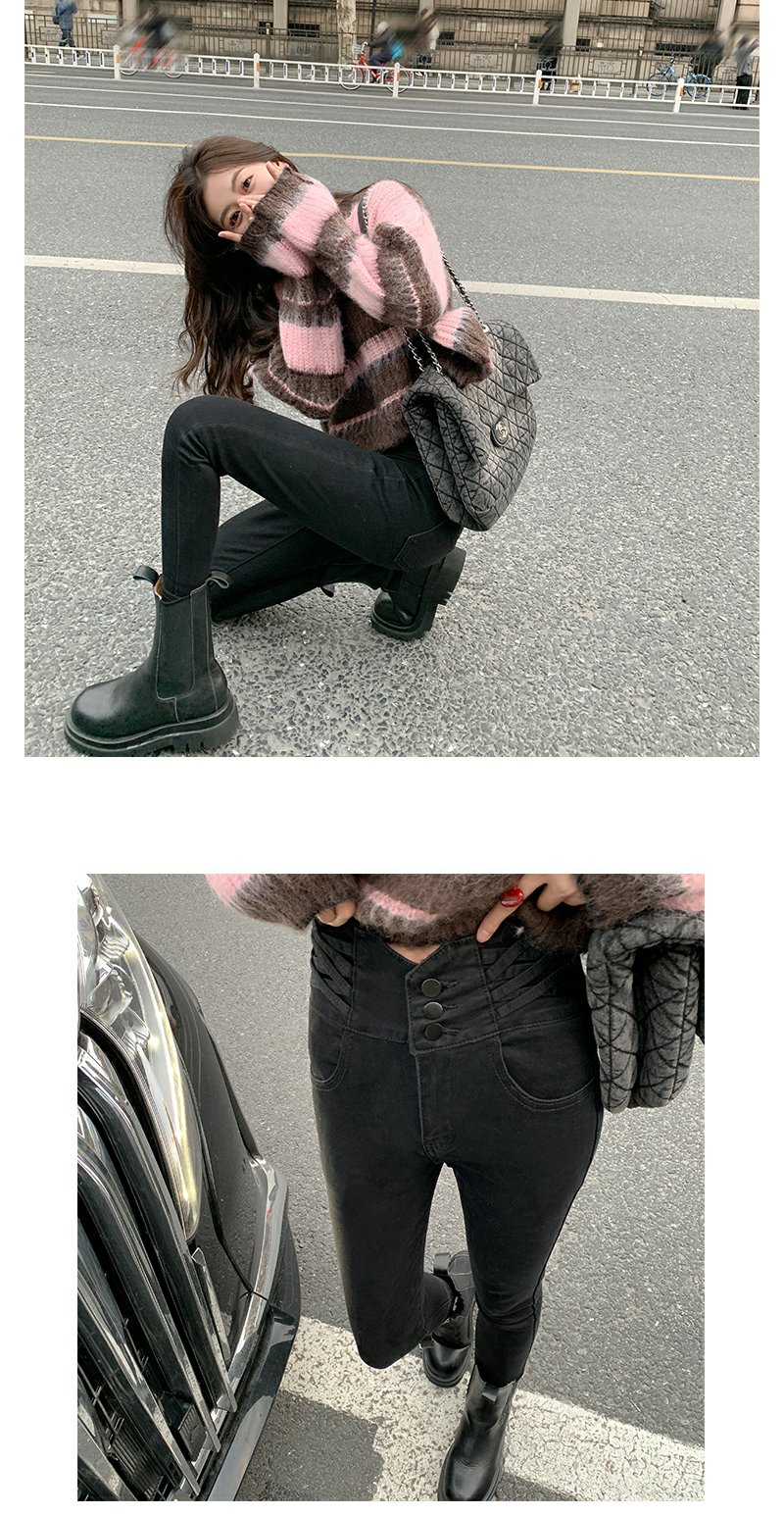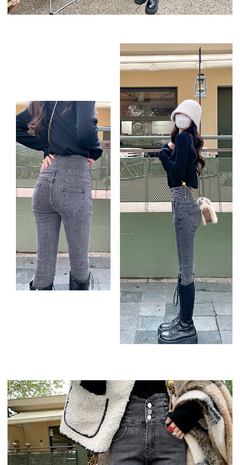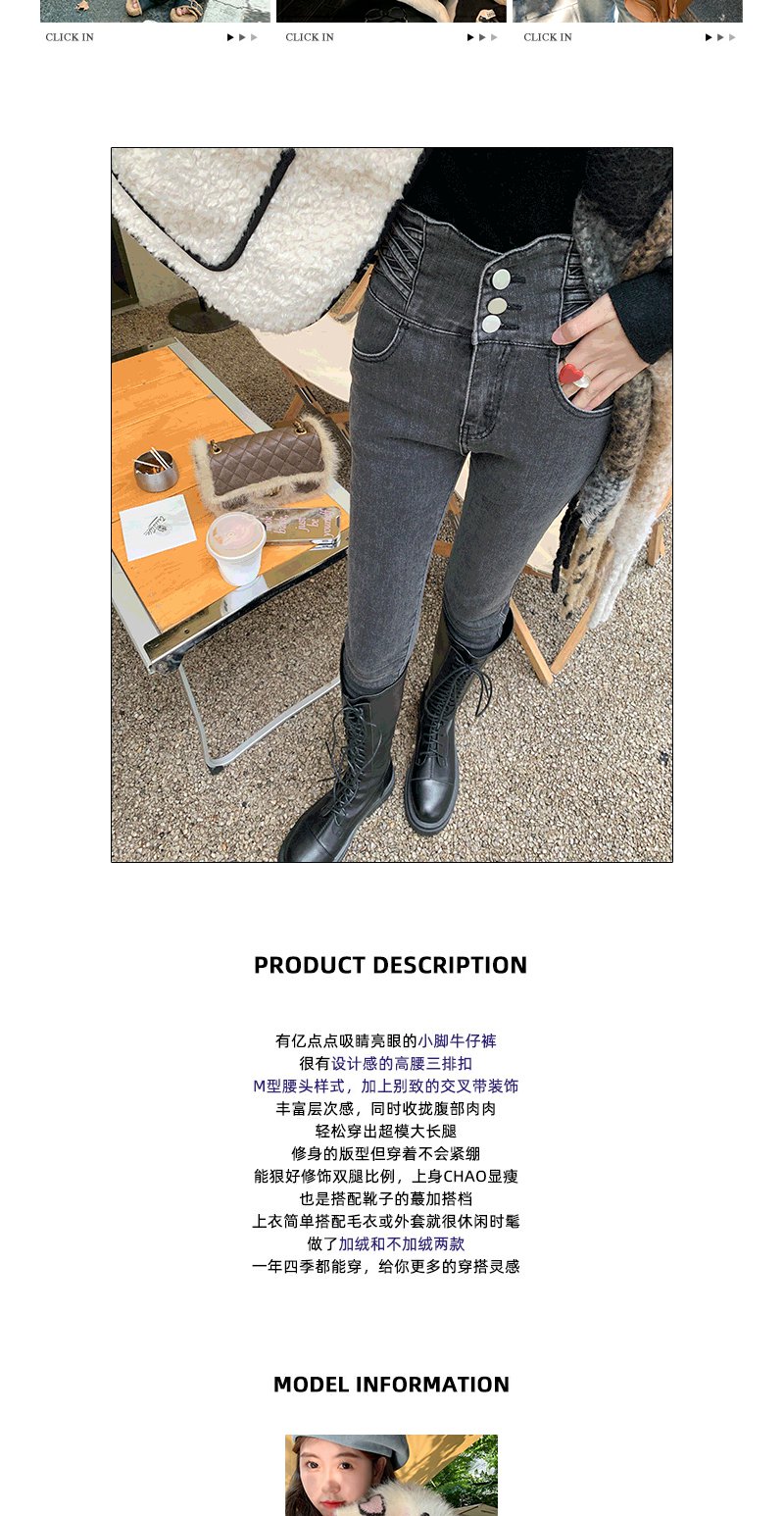 曾小咸女装加绒牛仔裤女春秋季新款高腰设计感修身小脚裤烟管长裤