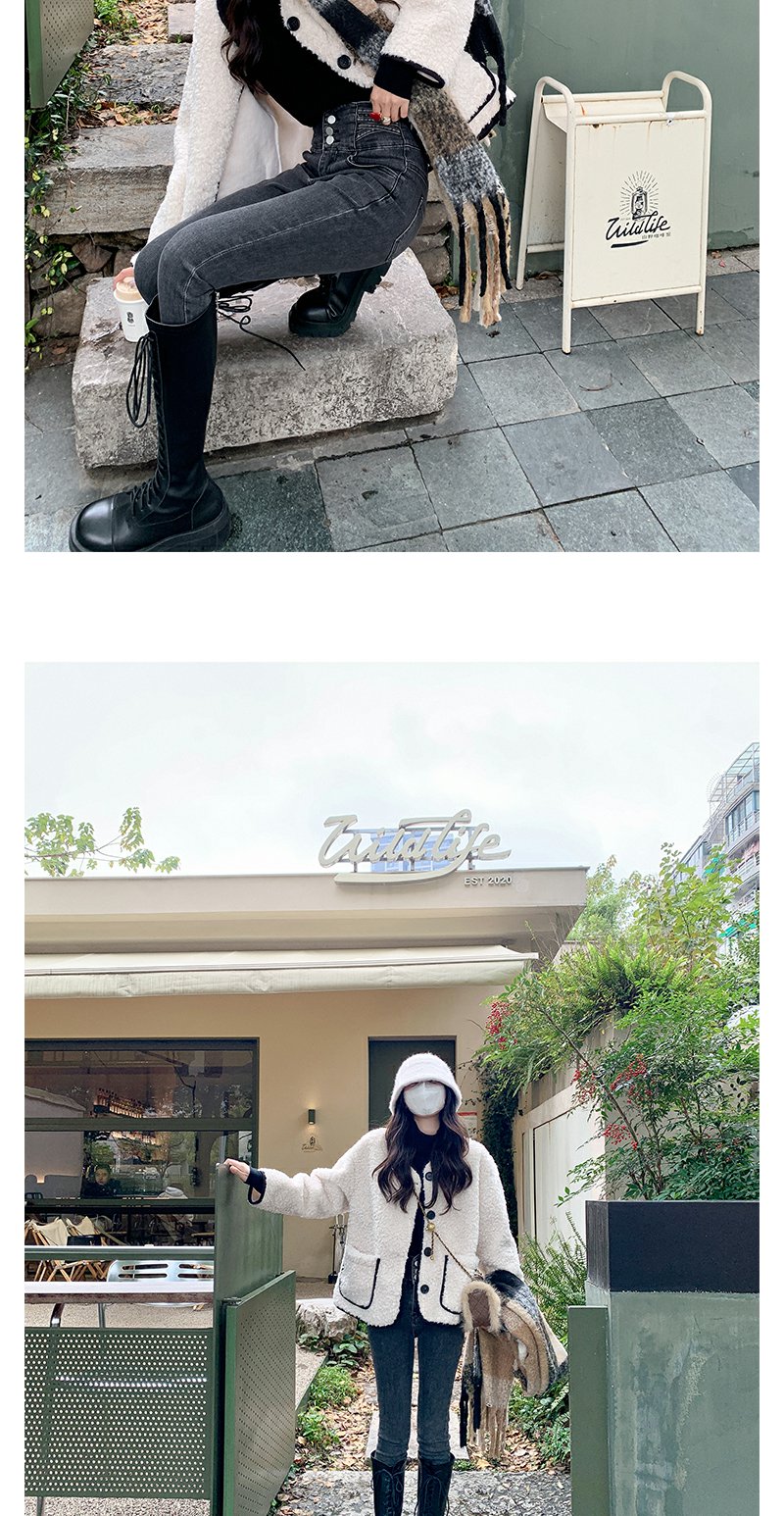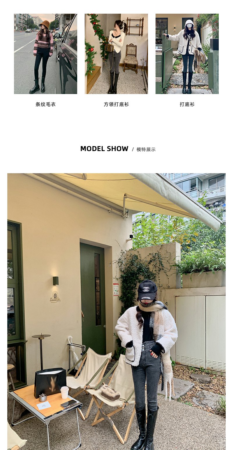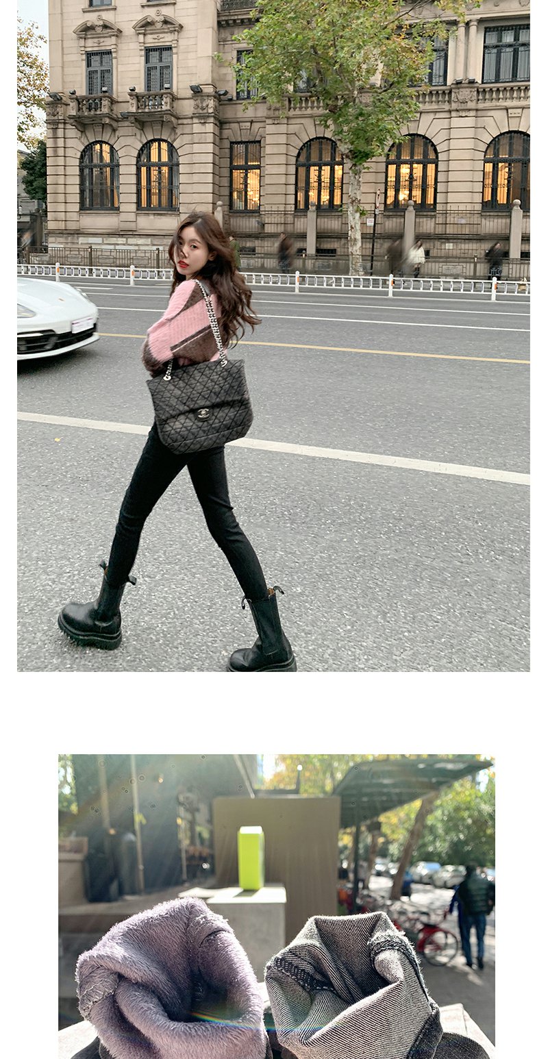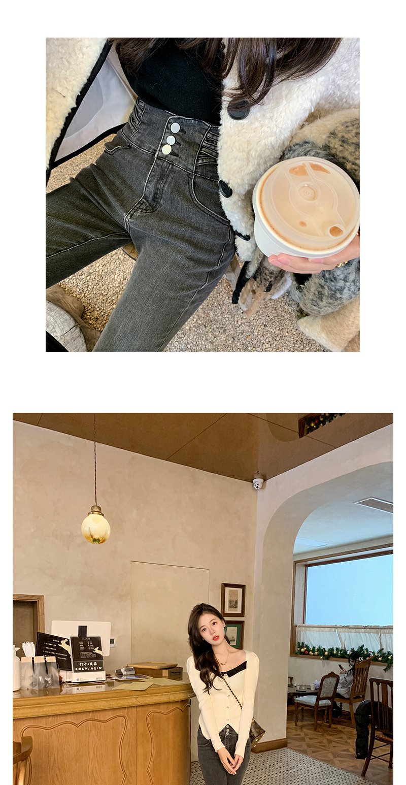 曾小咸女装加绒牛仔裤女春秋季新款高腰设计感修身小脚裤烟管长裤