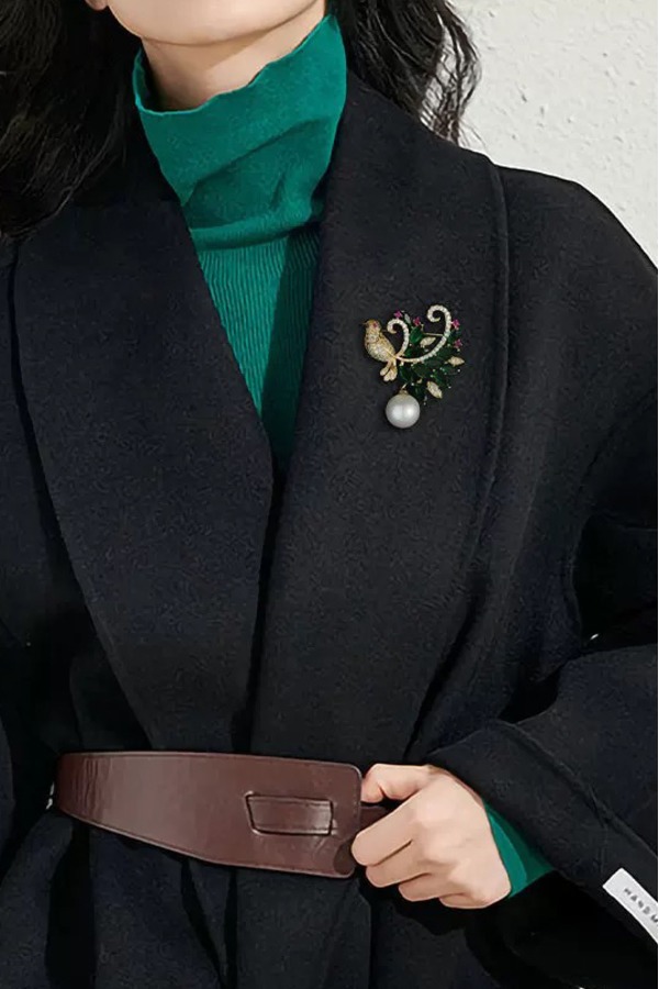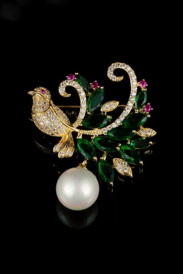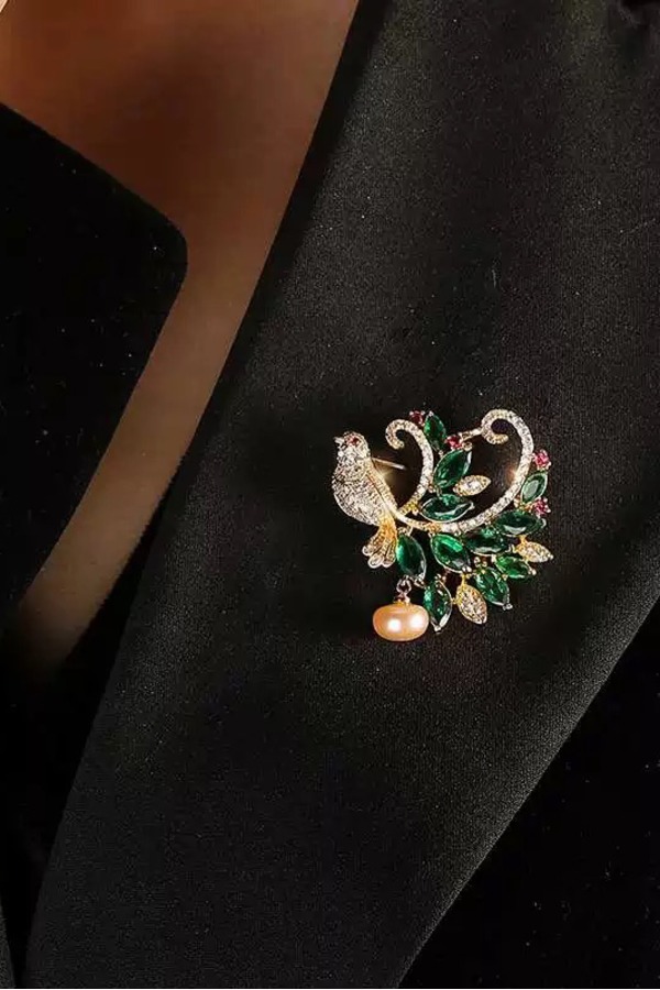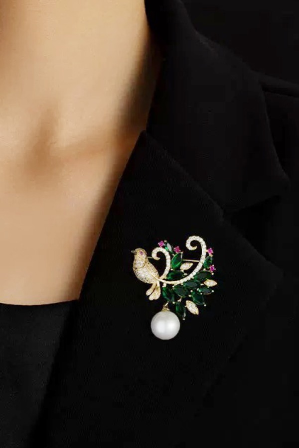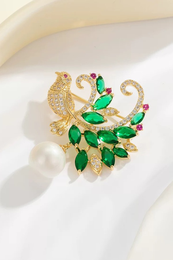 ESTACIA 贵气绿色锆石小鸟造型优雅胸针 21758
