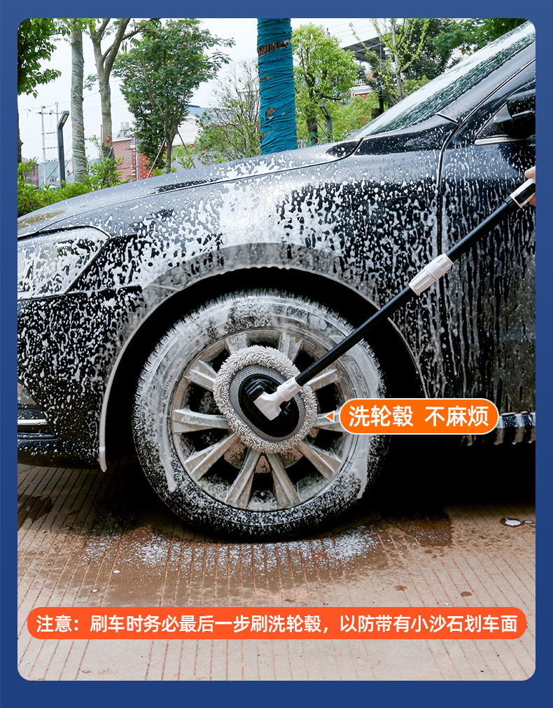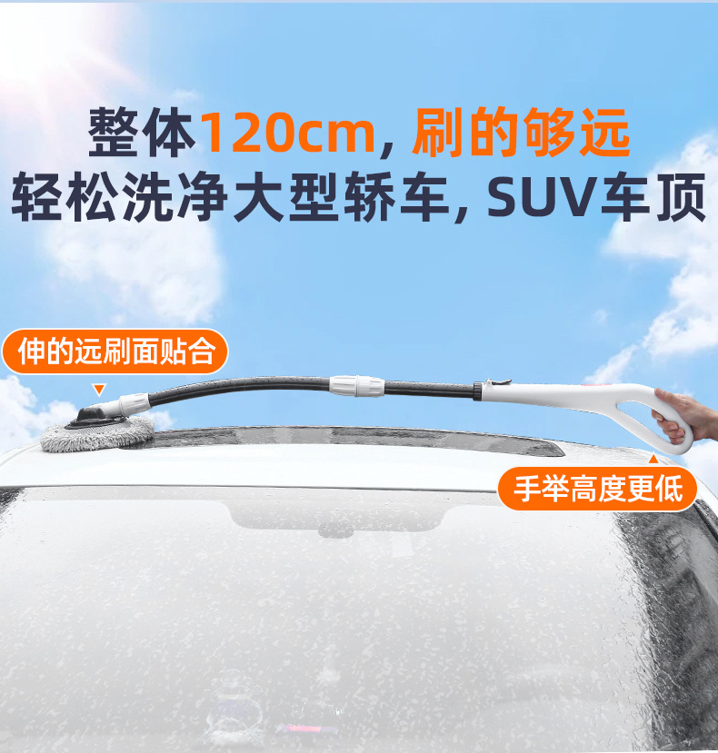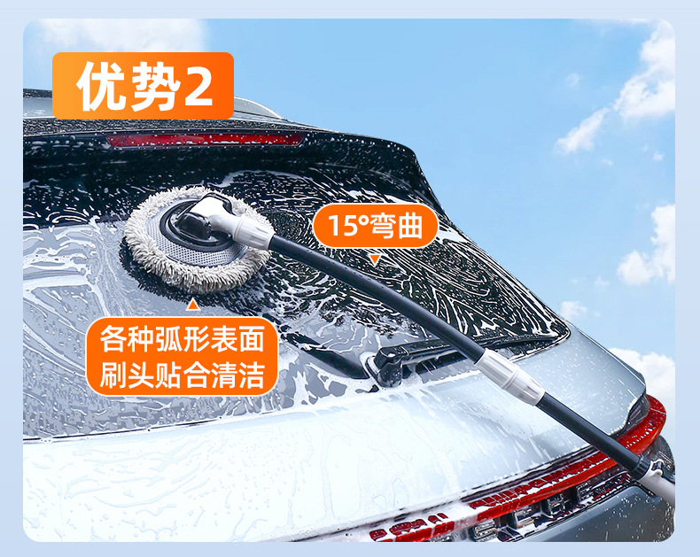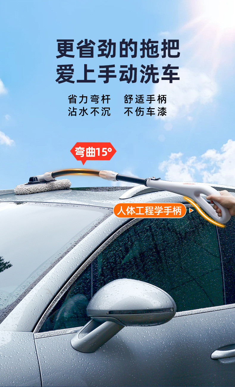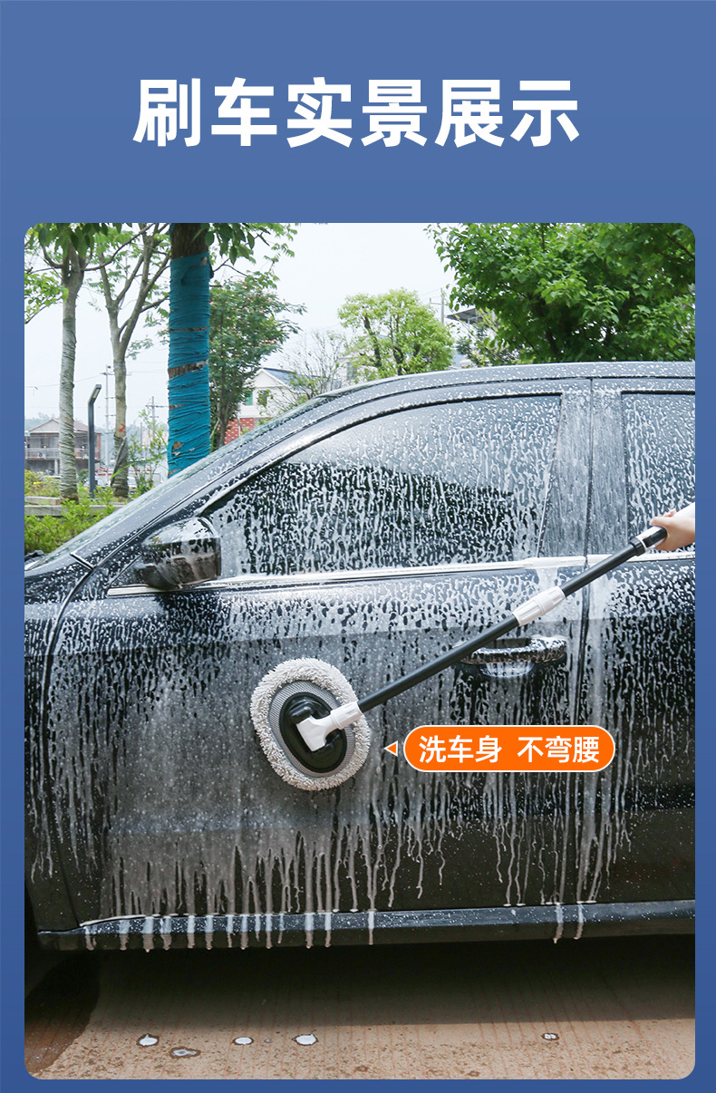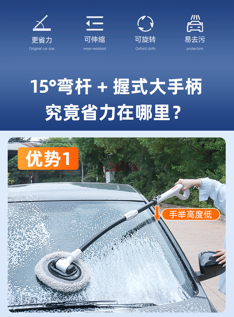 「赠替换擦头!弯杆大手柄」汽车清洁工具用品洗车专用拖把省力可伸缩拆卸刷车刷子