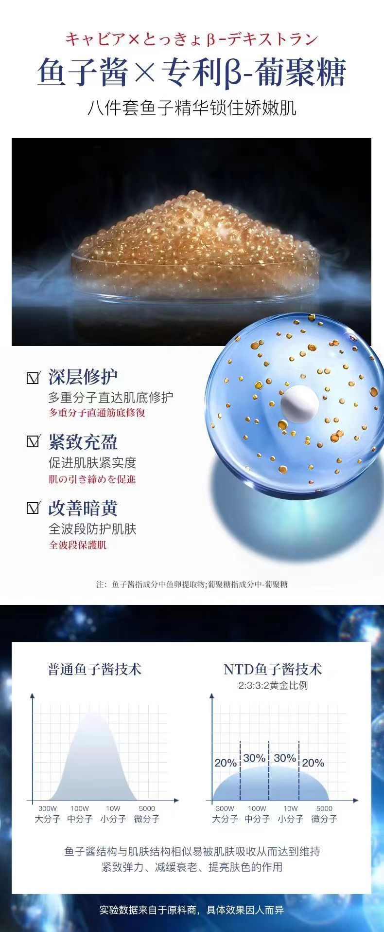 美好盛年集市活动特供-日本NTD鱼子酱葡聚糖奢养菁华水乳套装补水保湿修护水乳液8件套