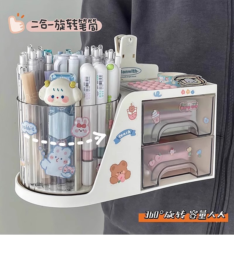 「二合一旋转笔筒」桌面大容量旋转笔筒学生创意书桌学生收纳整理盒办公室高级置物架