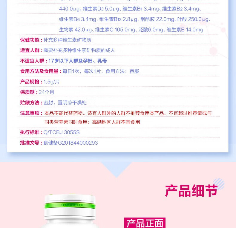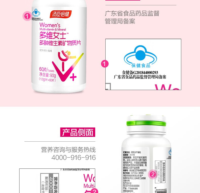 汤臣倍健多维女士多种维生素矿物质片复合维生素女士含维生素C维E维b叶酸 女士多维共120片
