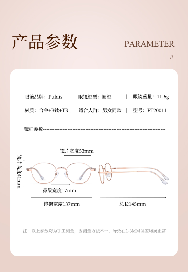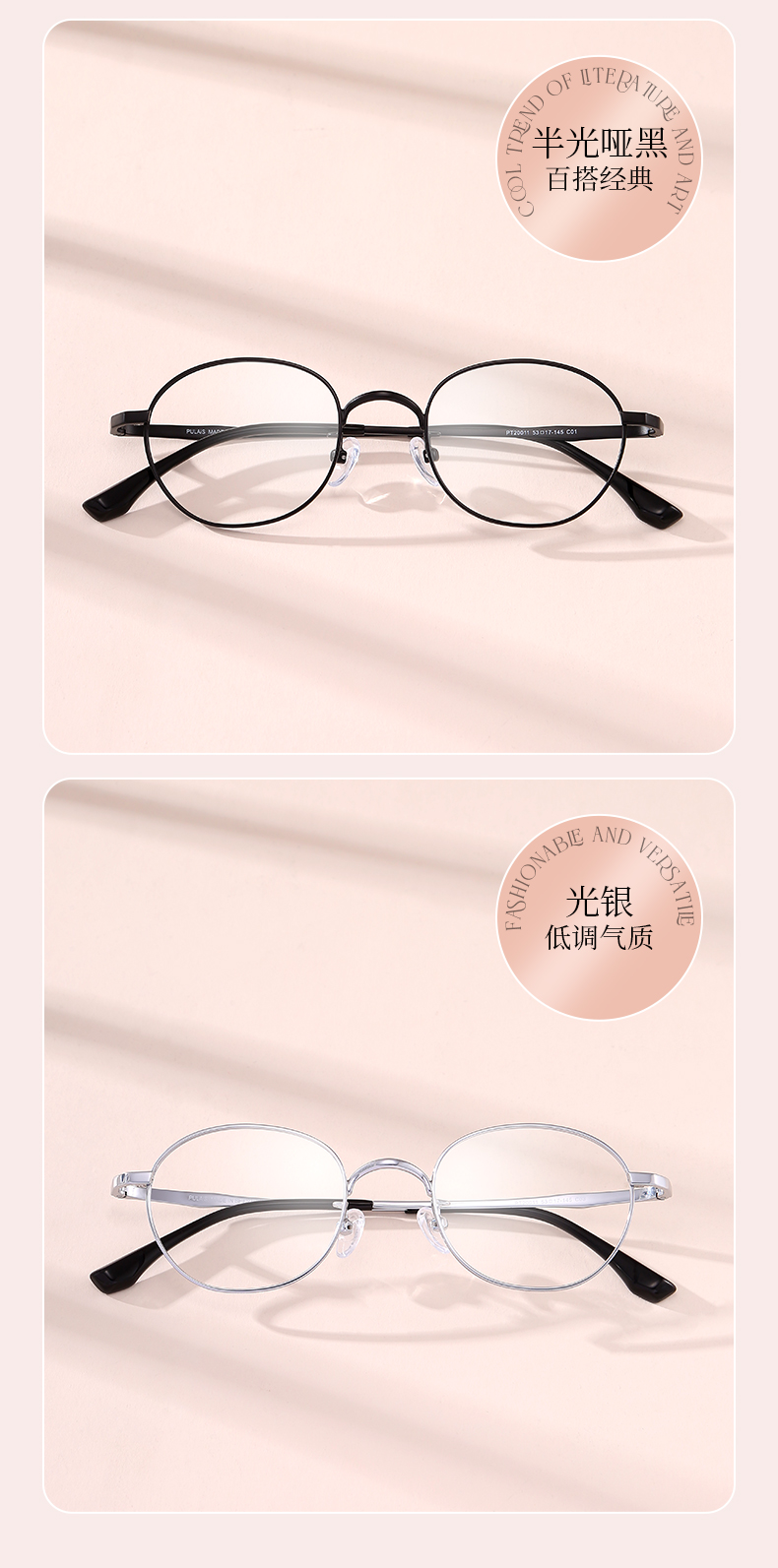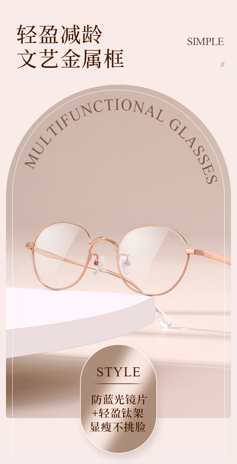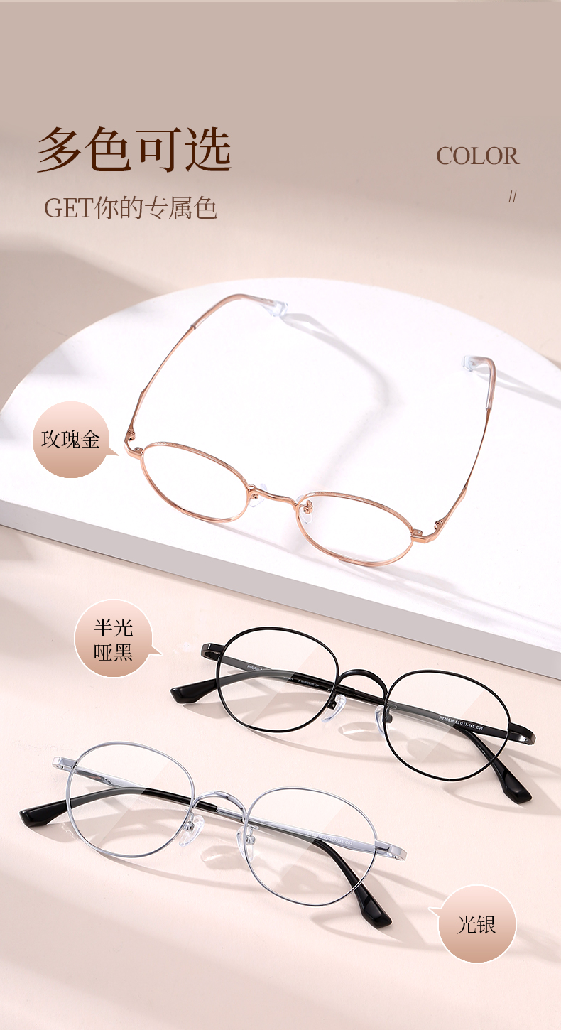 普莱斯PM20011 文艺金属小圆框 轻盈减龄 合金+B钛 男女同款 三色可选
