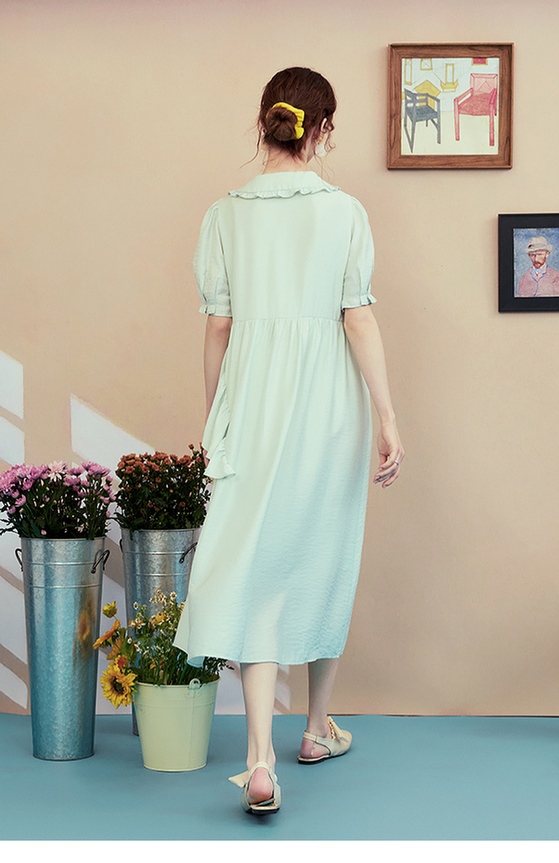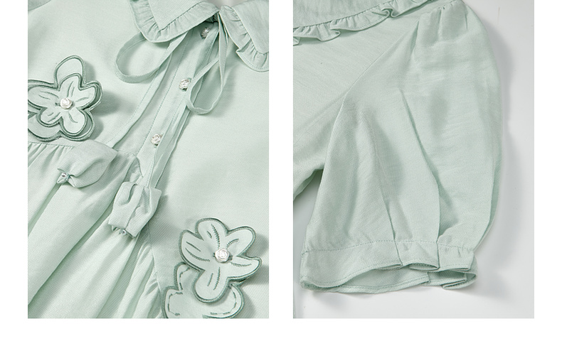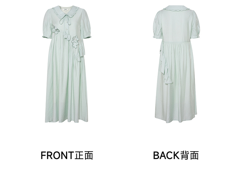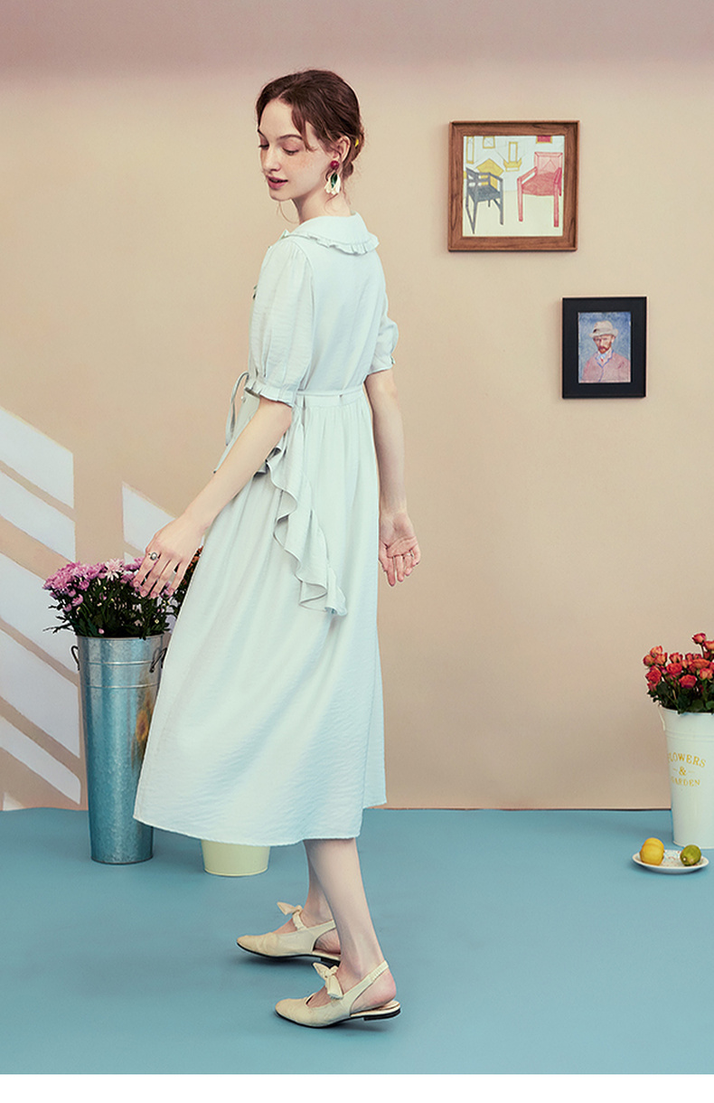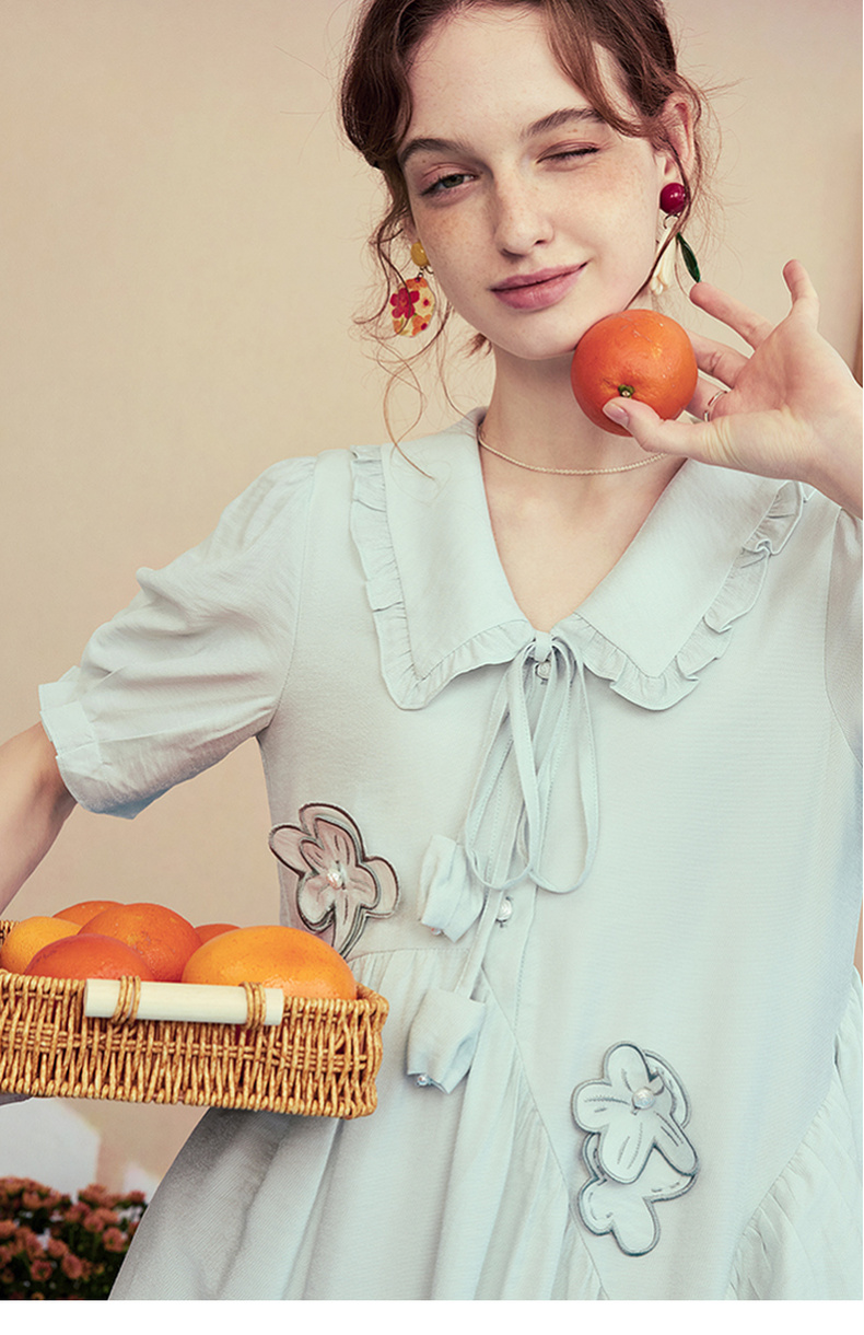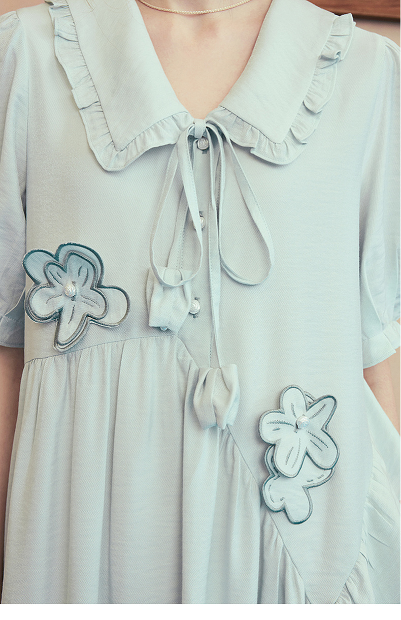 两三事 林下初行 2025春季新款甜美立体花朵绑带翻领连衣裙