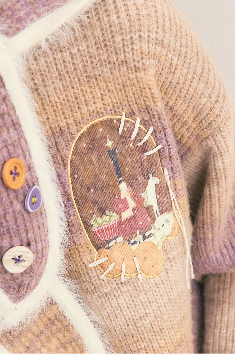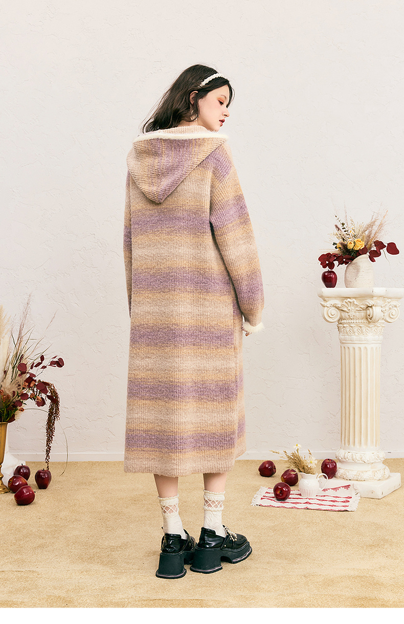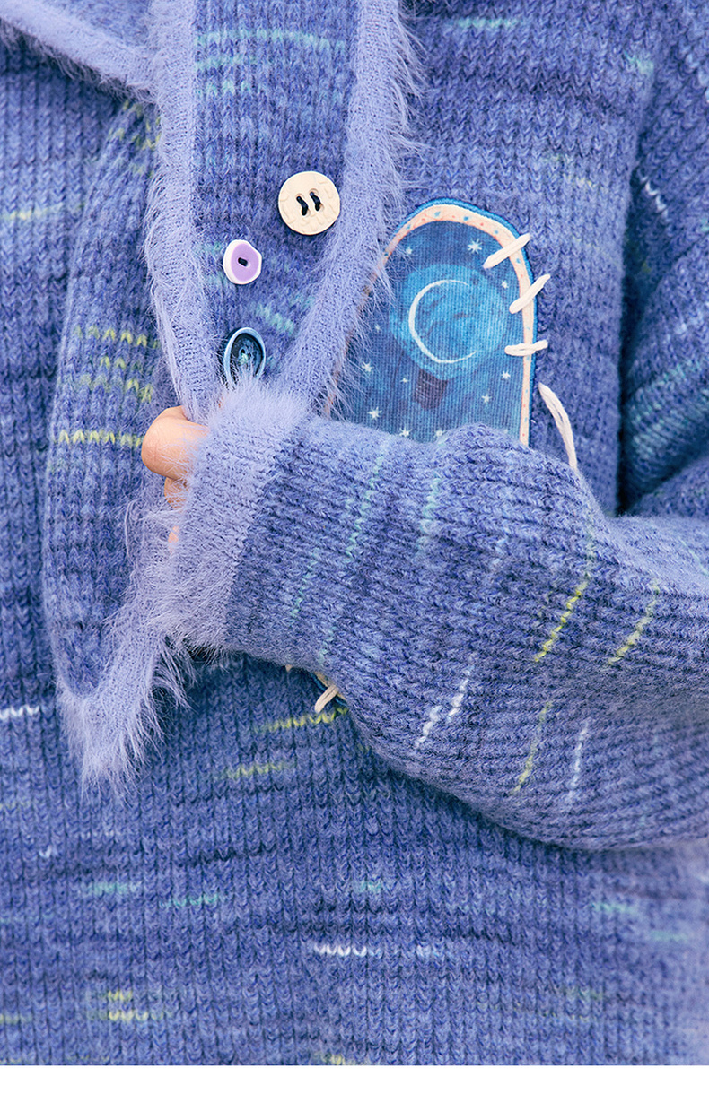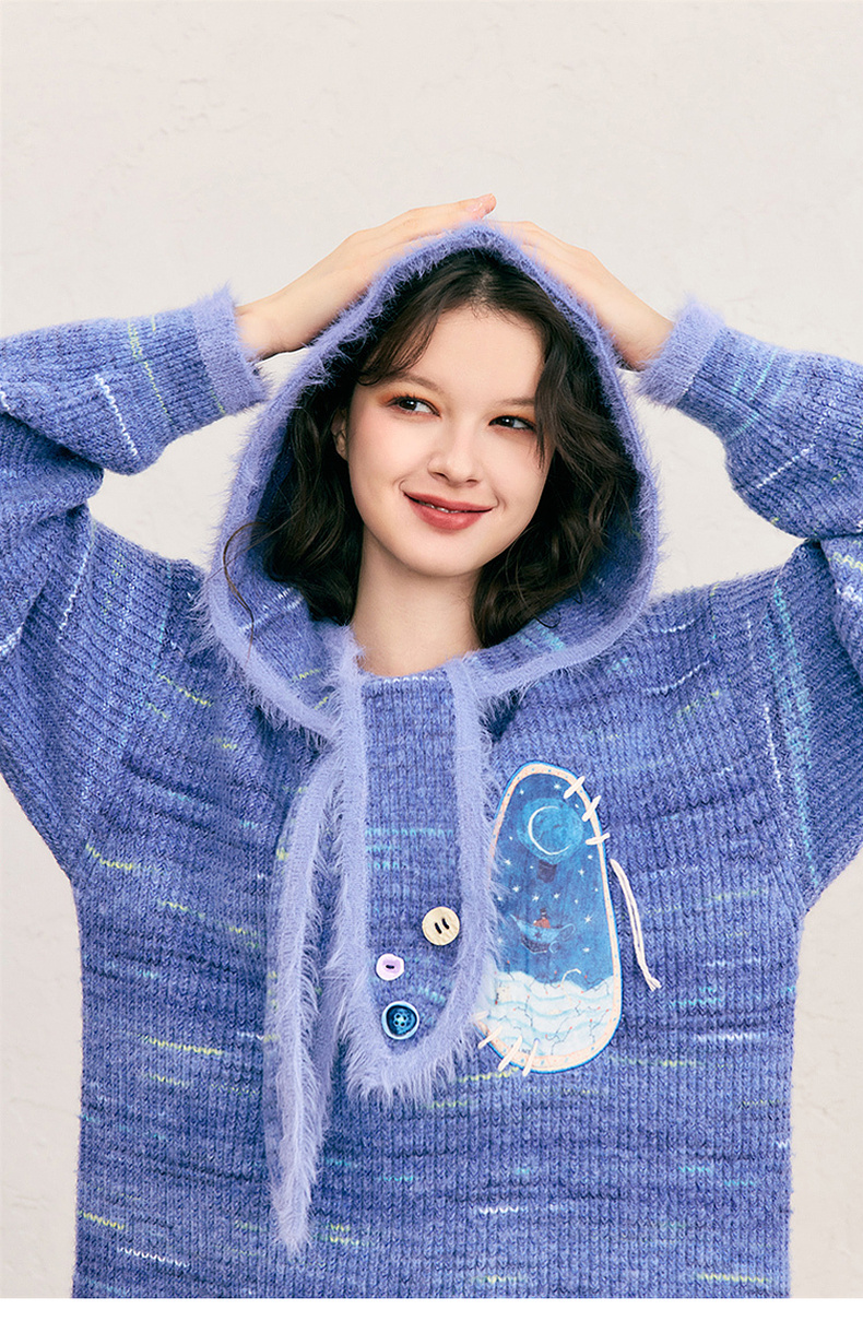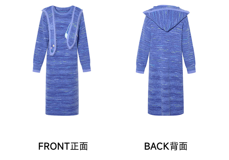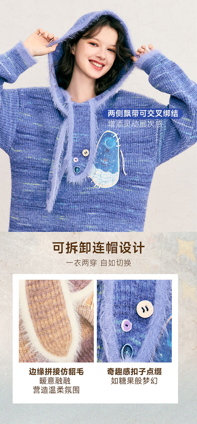 两三事糖果梦乡2024冬新款趣味贴布绣可拆帽子渐变色毛衣裙连衣裙